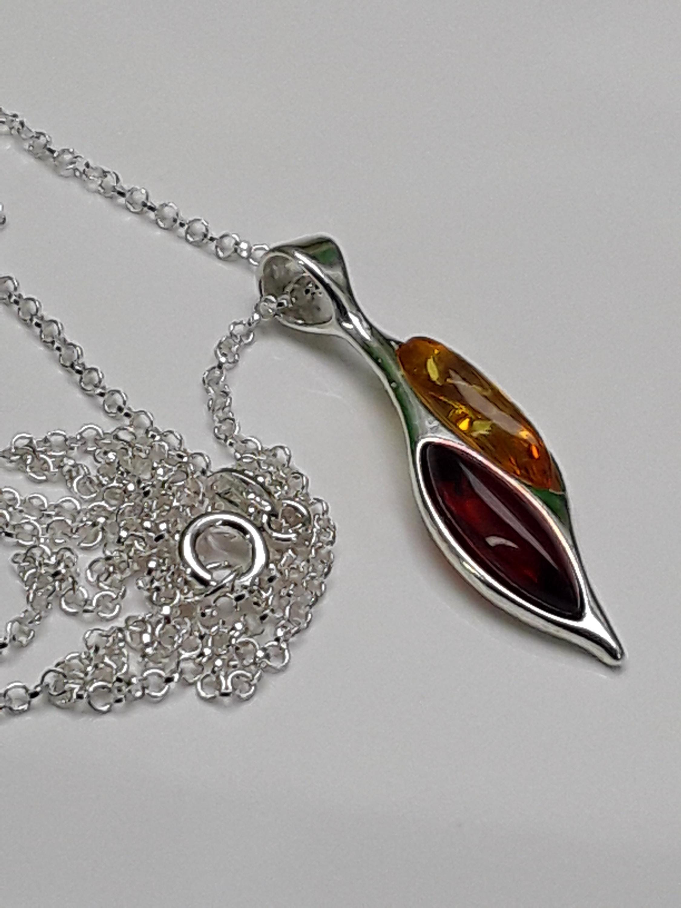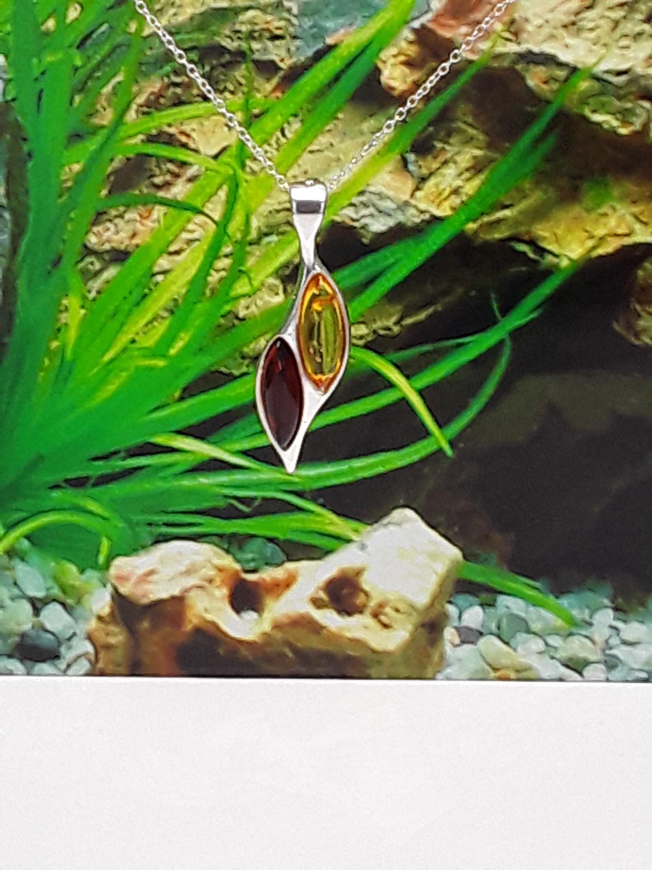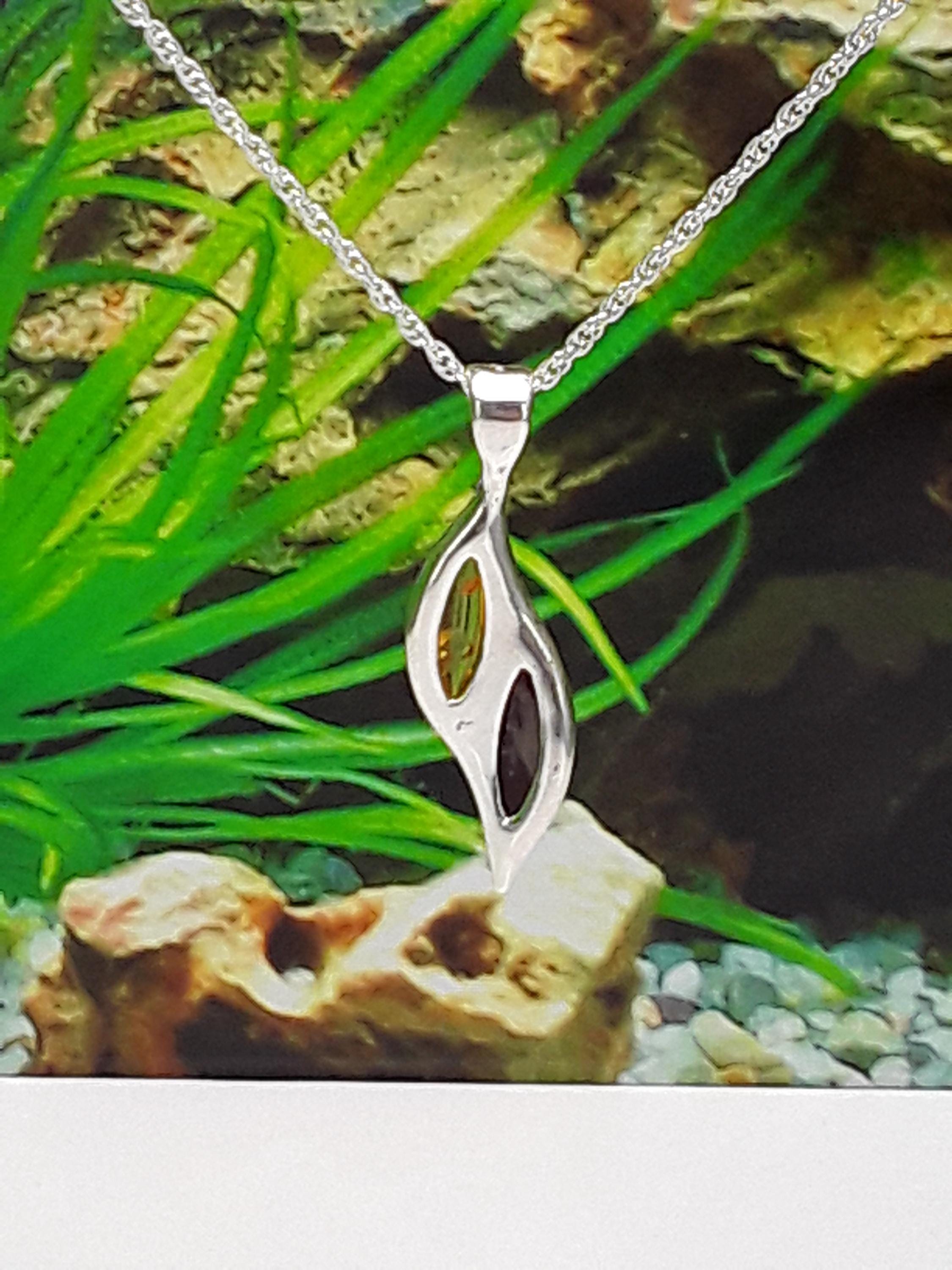 Amber Solid Sterling Silver Pendant and chain (chain options available) - Hallmarked 925