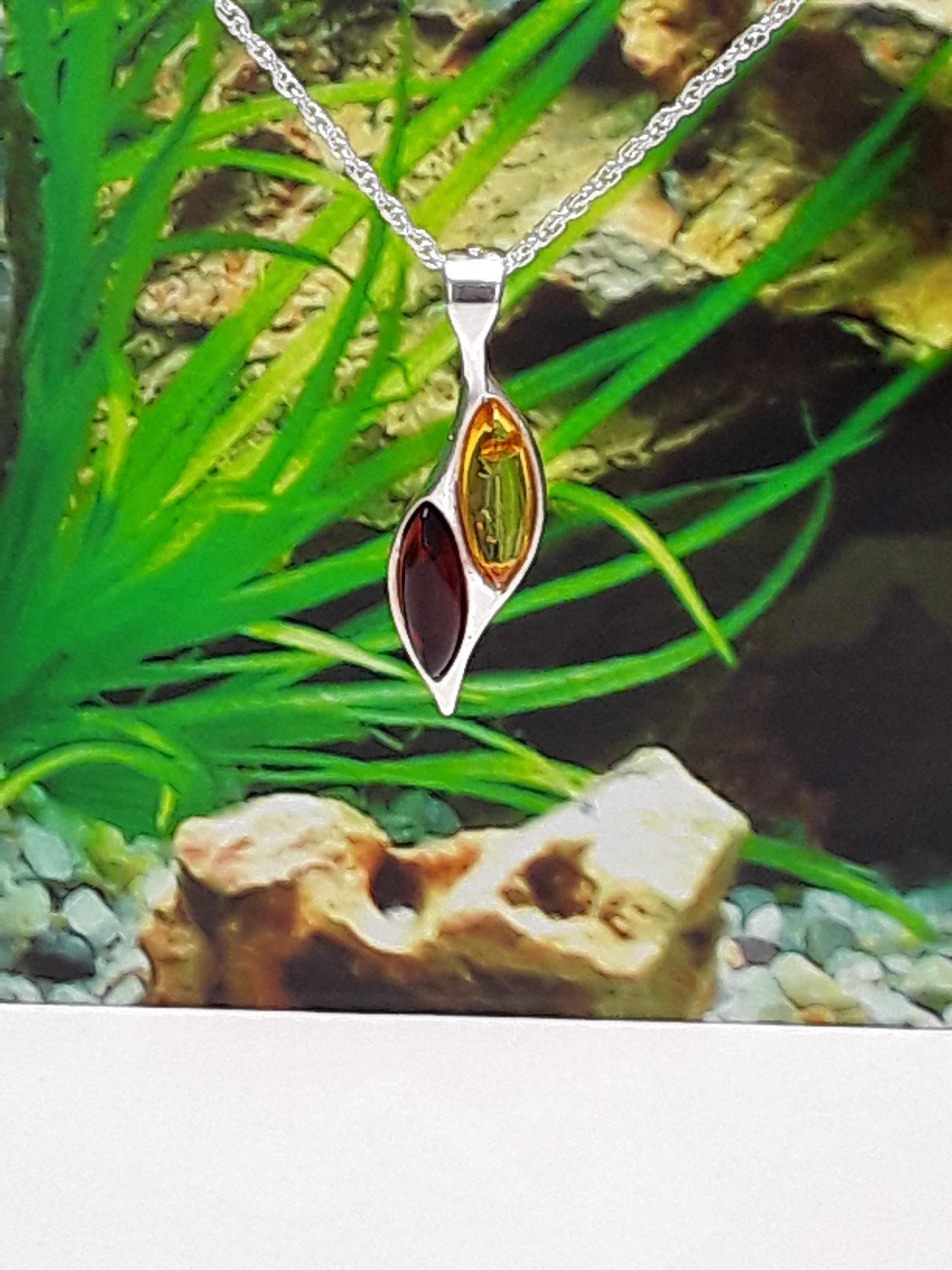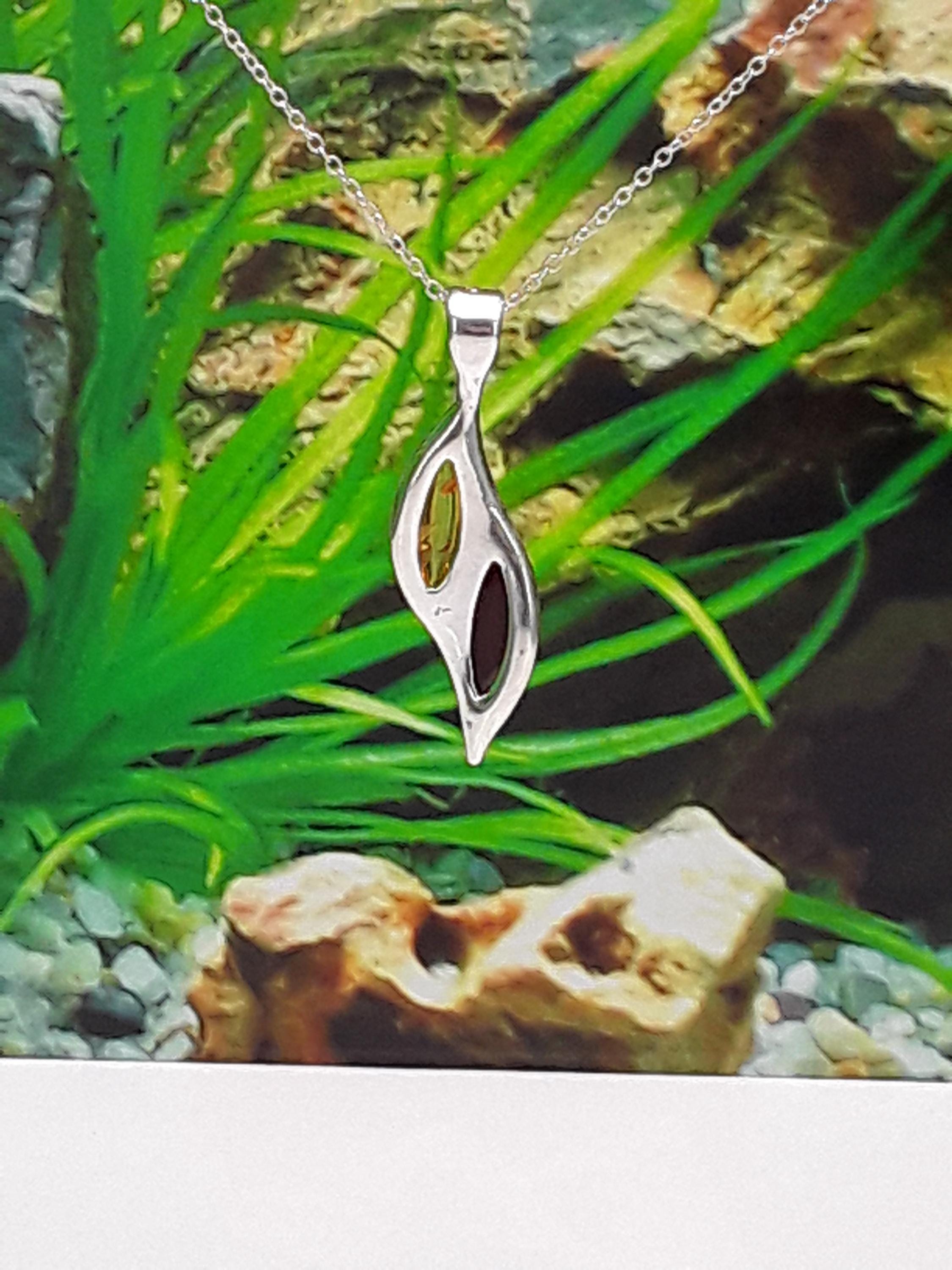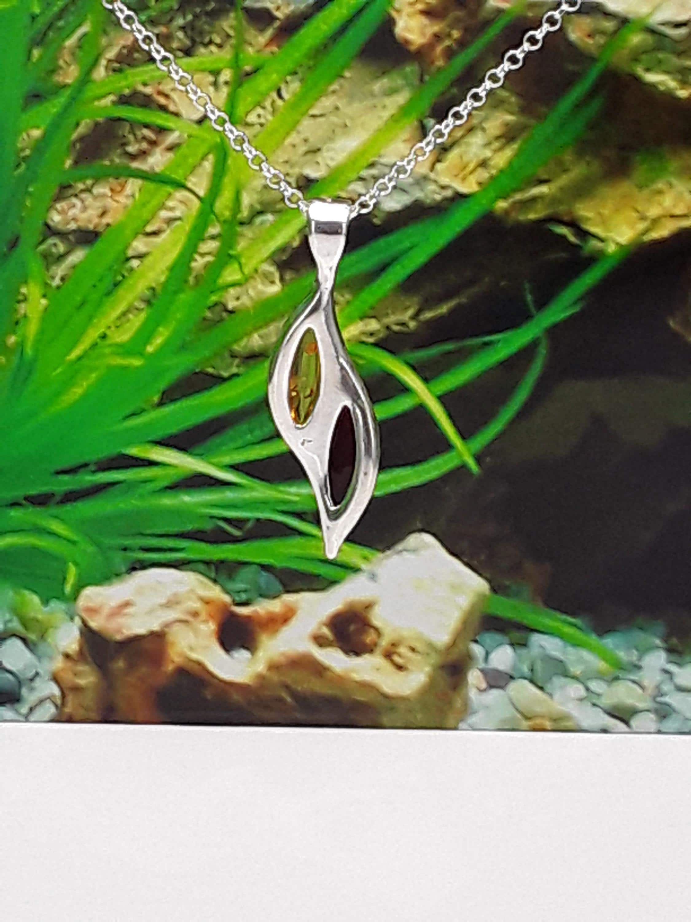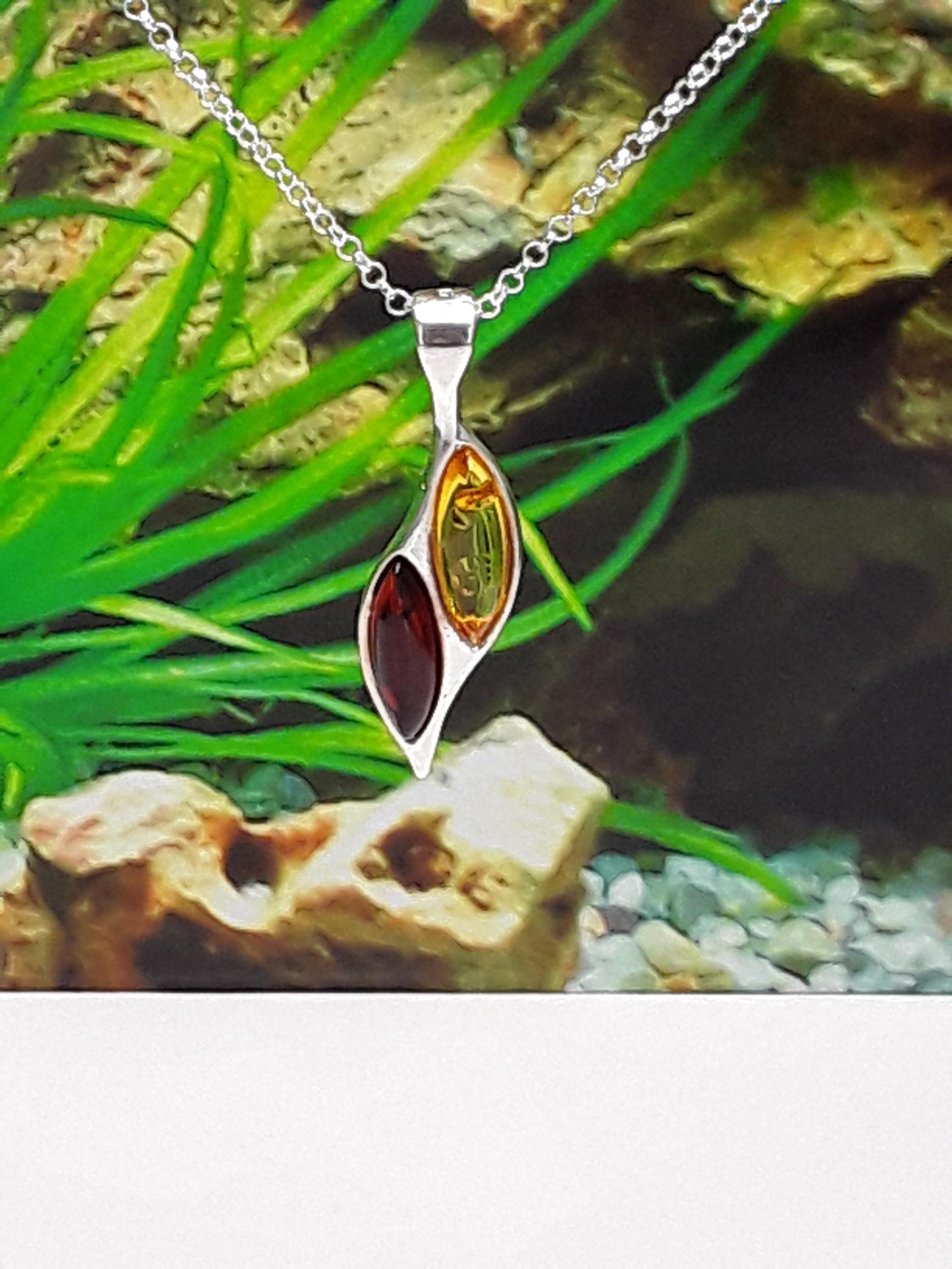 Amber Solid Sterling Silver Pendant and chain (chain options available) - Hallmarked 925