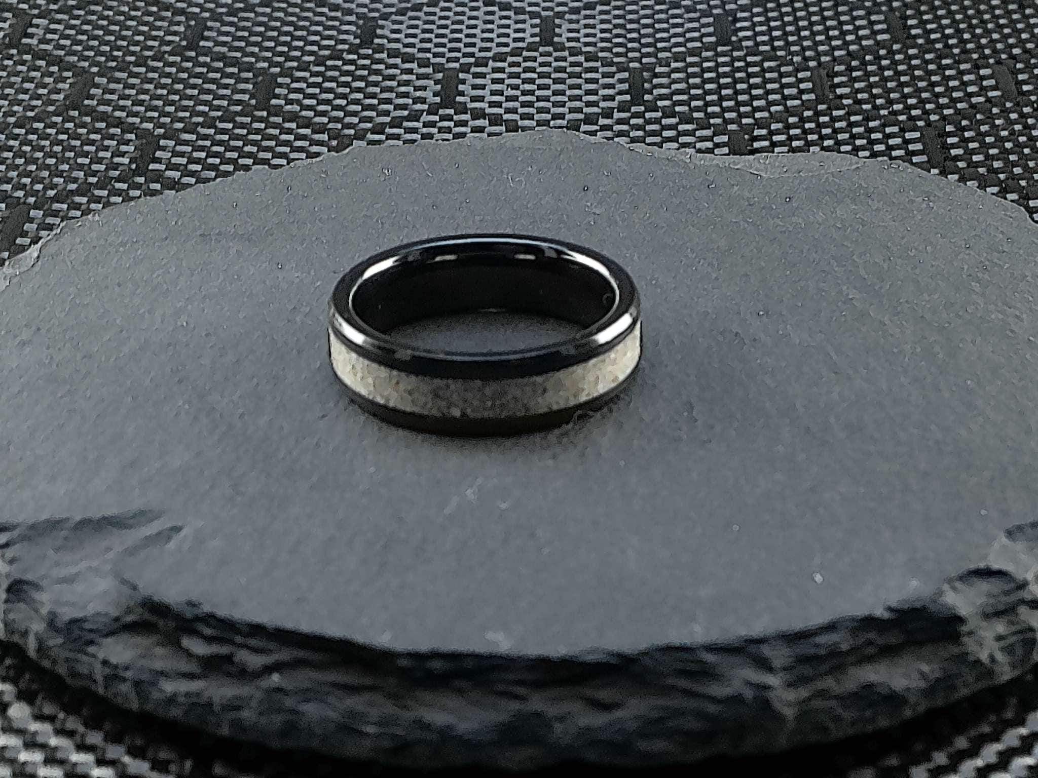 This genuine Black Ceramic ring inlaid with 100% Natural Beach Sand from the world famous MOHO beach, Sint Maarten, Caribbean or send your own beach sand for me to make your custom beach sand ring.