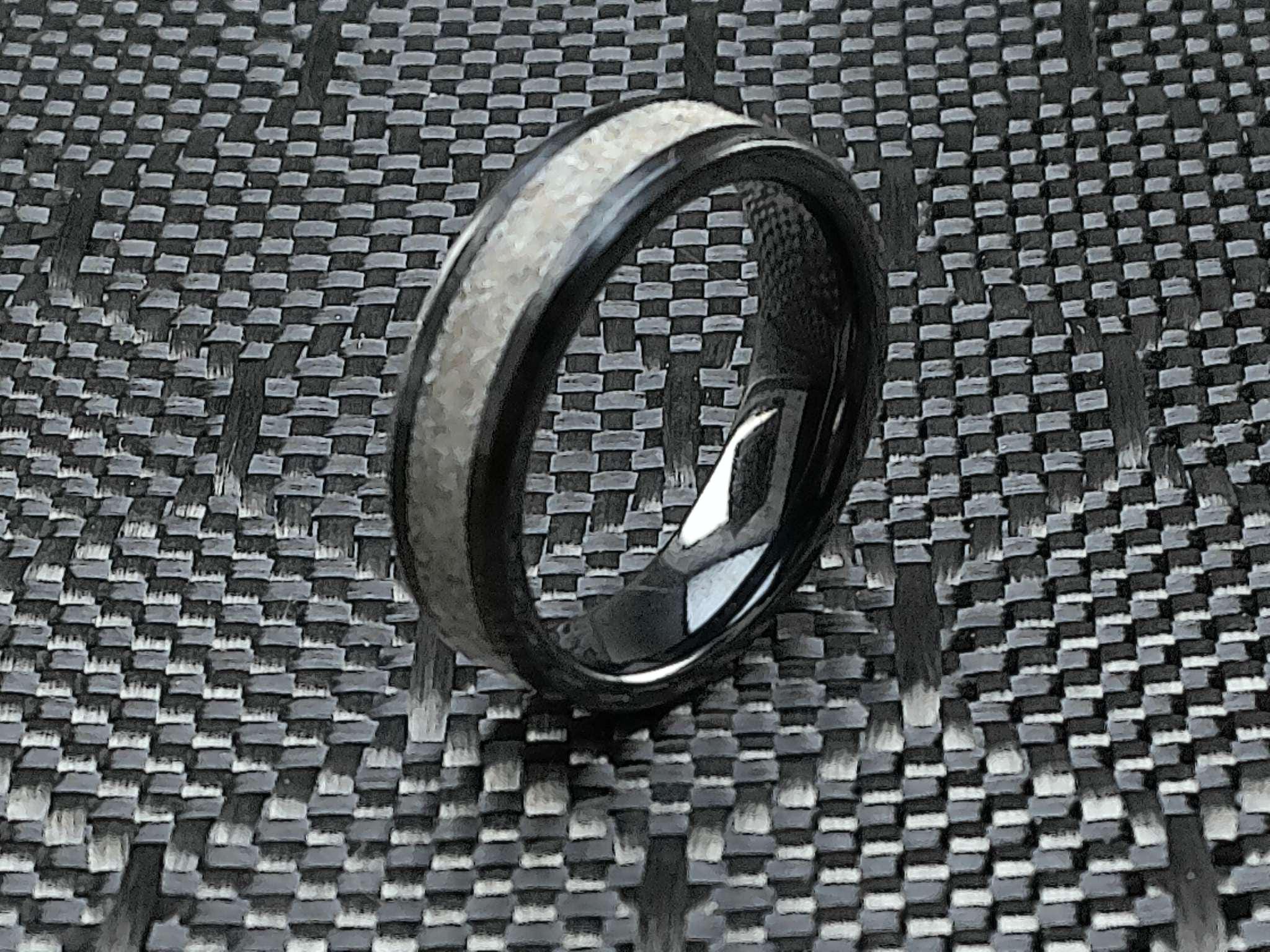 Natural beach Sand Inlaid Black Ceramic Wedding Band available Band 4 mm, 6 mm or 8 mm Wide Ring. Sand from the world famous MOHO beach, Sint Maarten, Caribbean (the beach that's in the flight path of Princess Juliana International Airport).