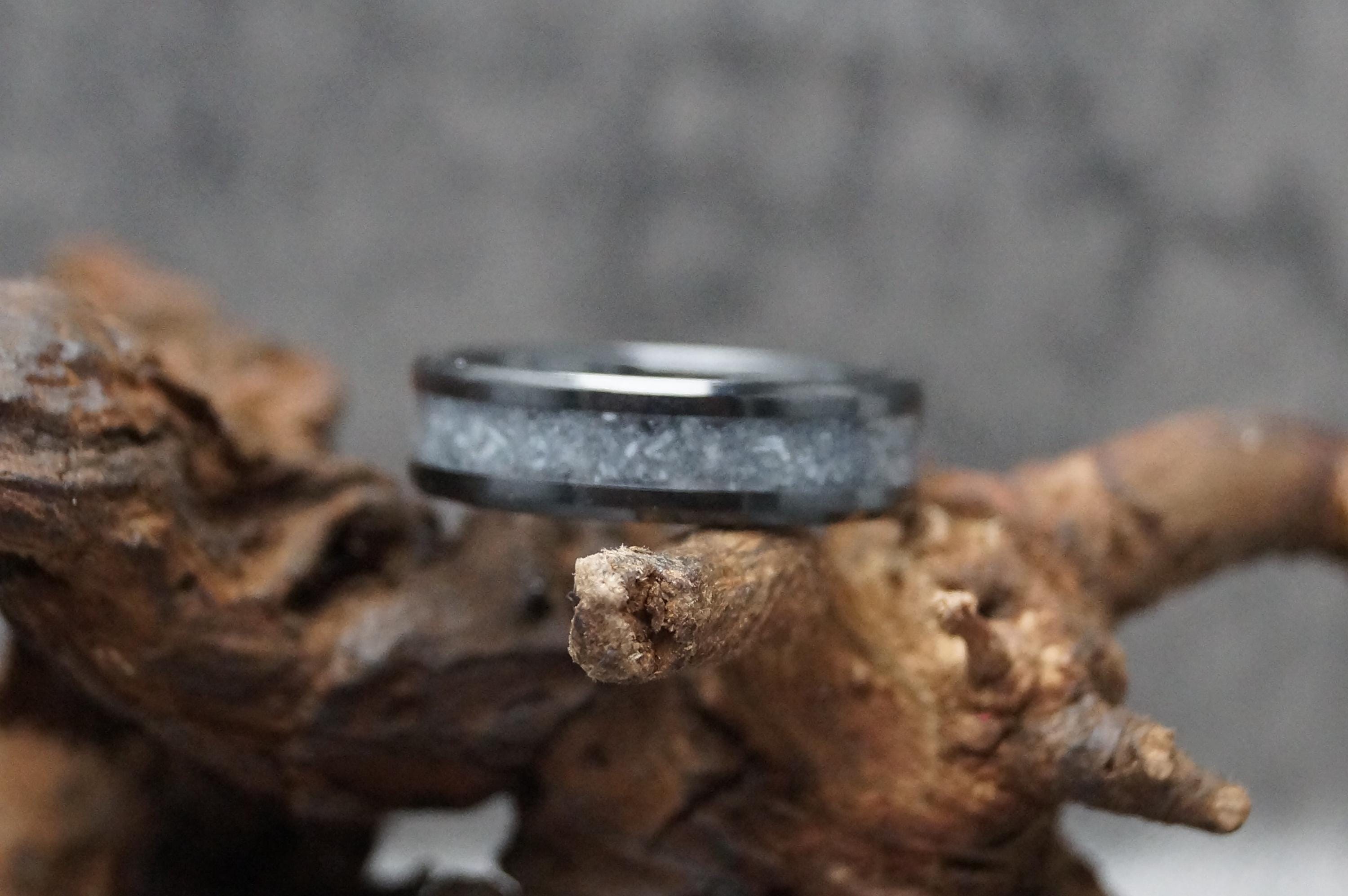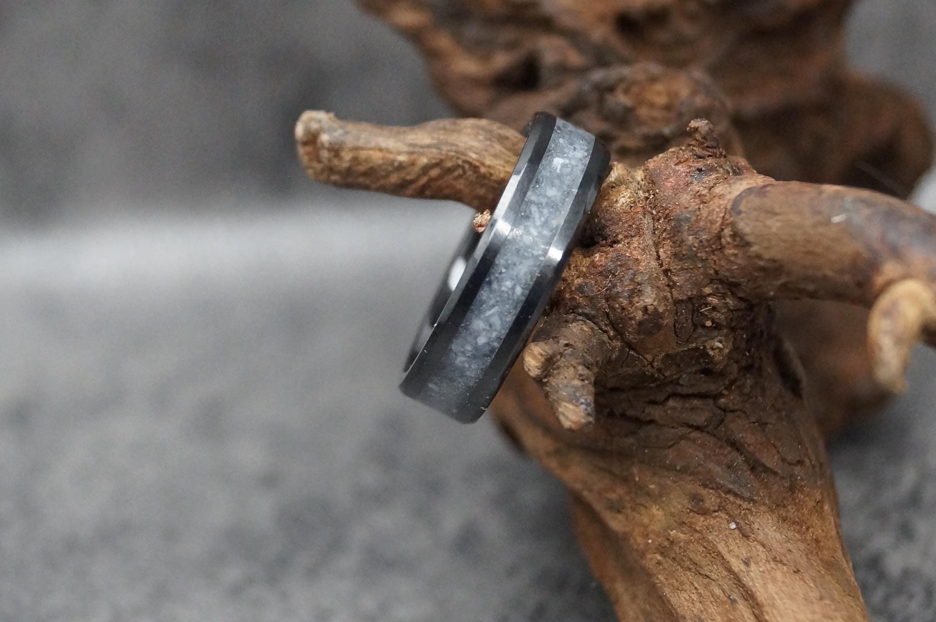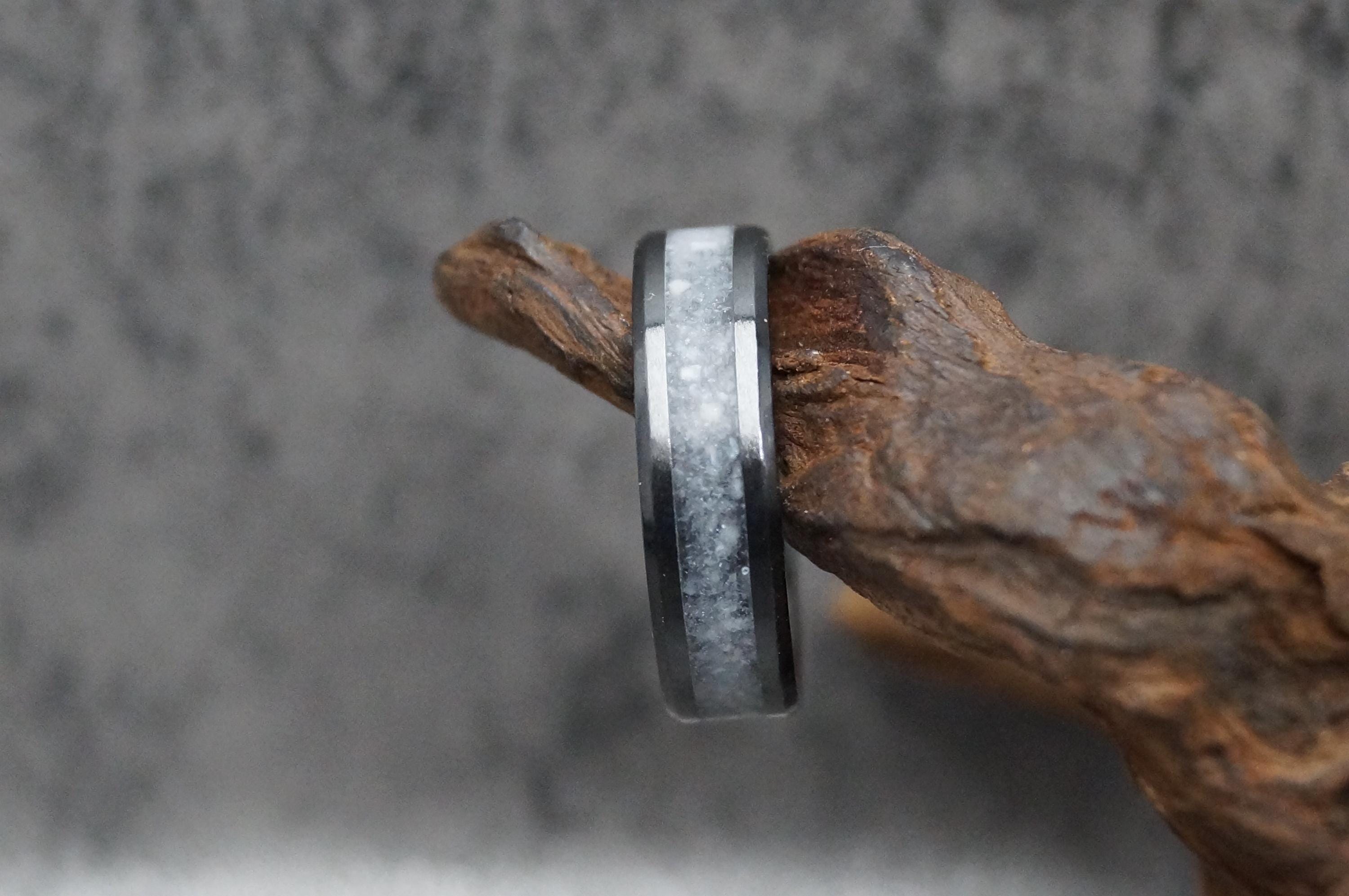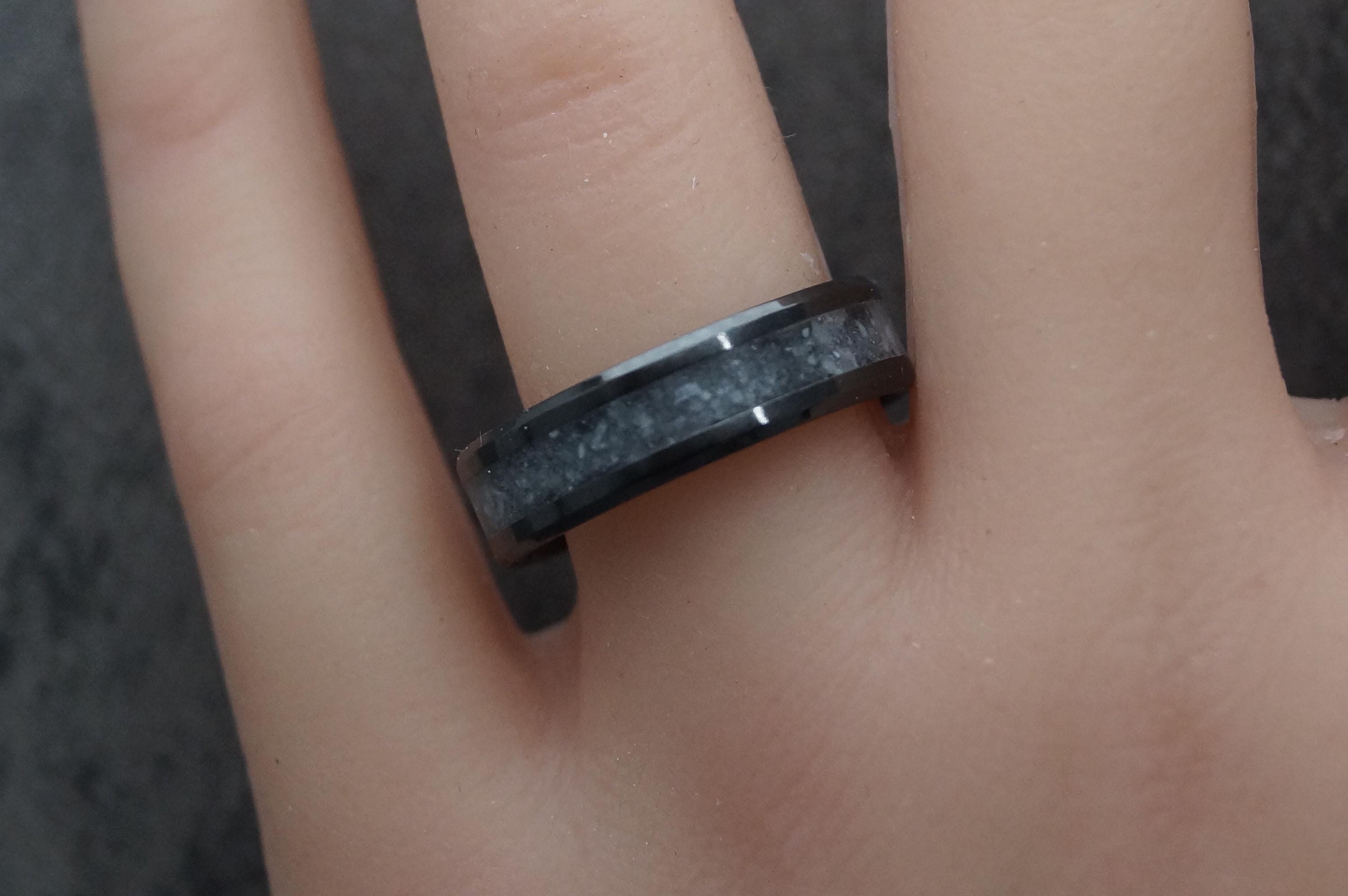 White Moonstone Black Ceramic Ring - Black Ceramic wedding band - available 4 mm, 6 mm or 8 mm wide ring - every ring unique