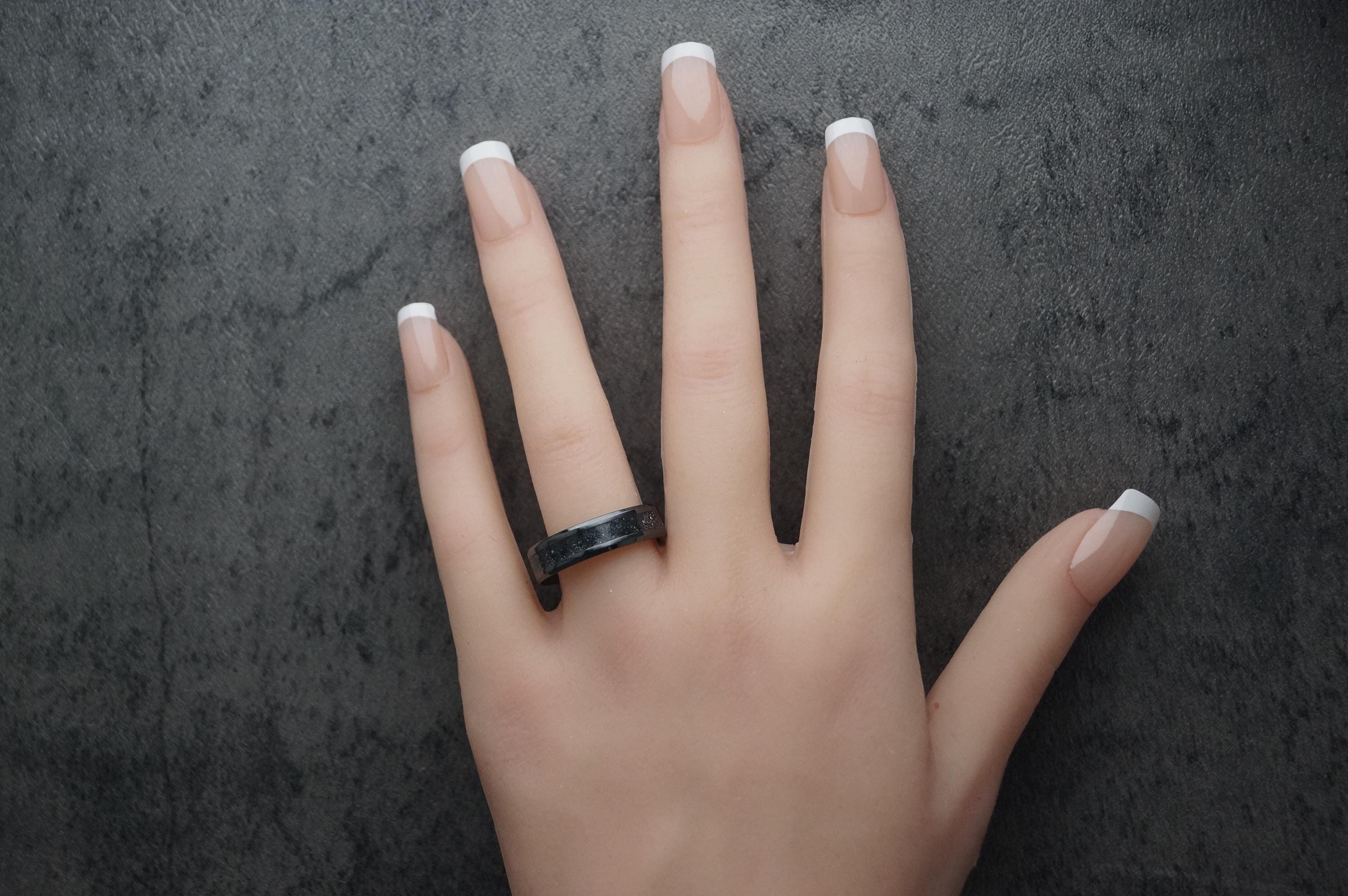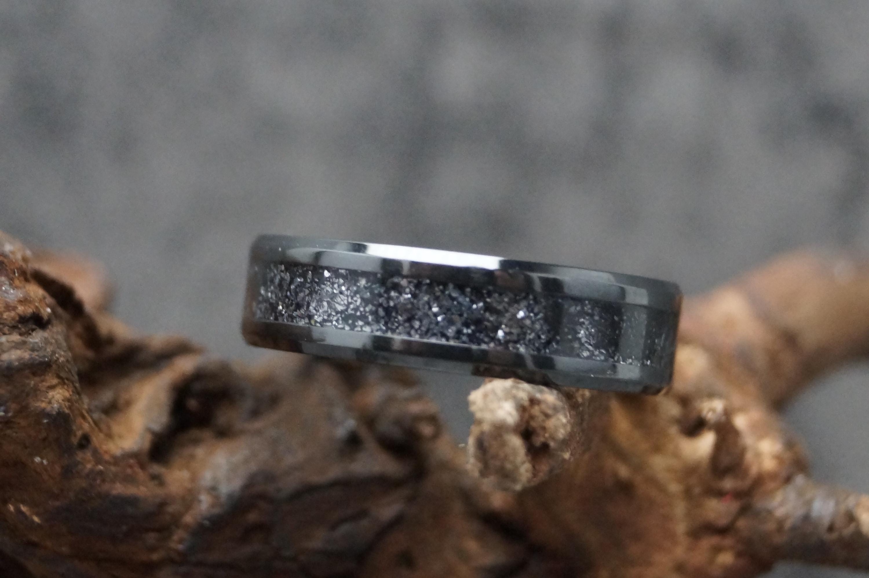 This genuine Black Ceramic ring inlaid with 100% genuine Galena