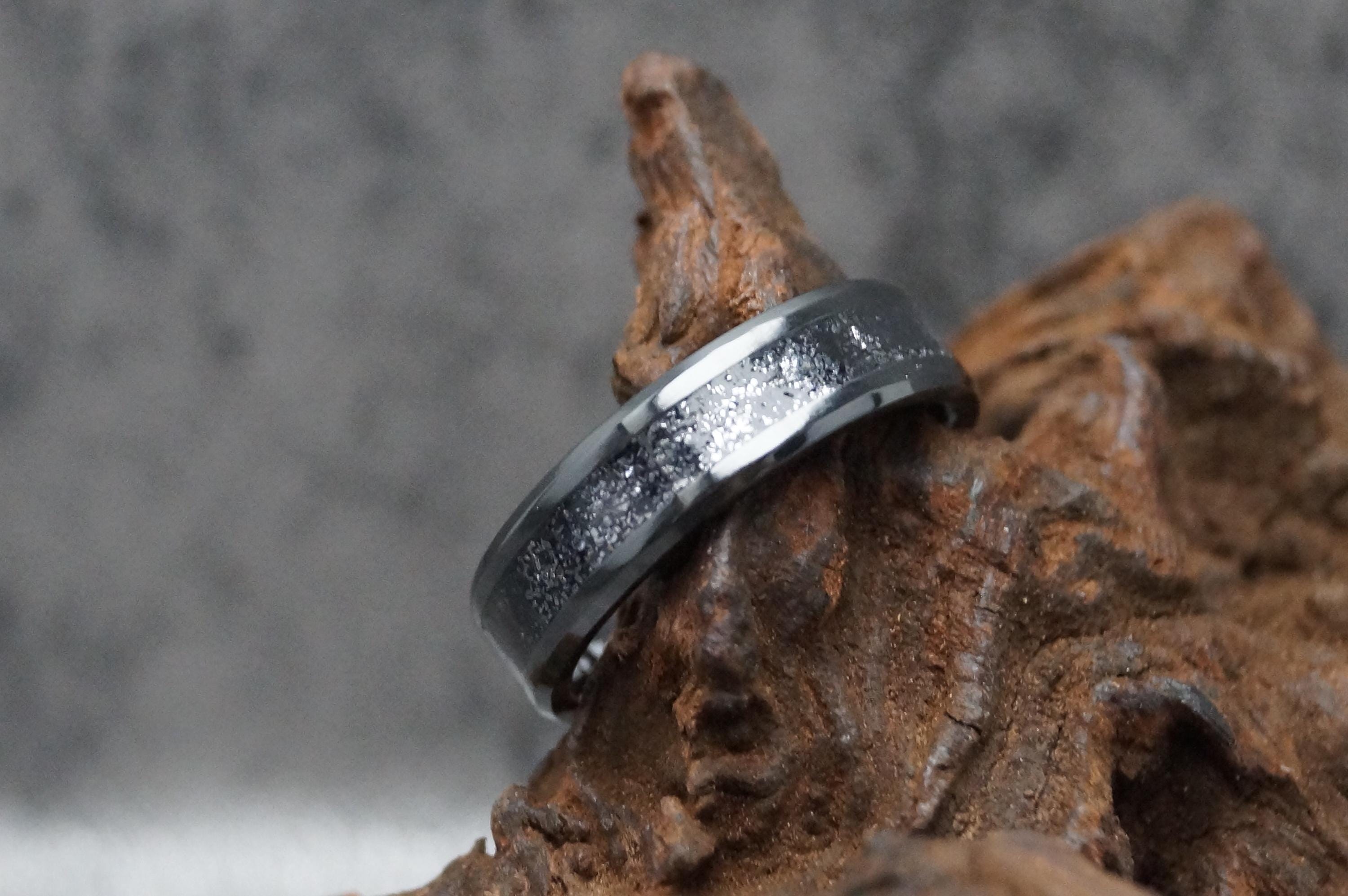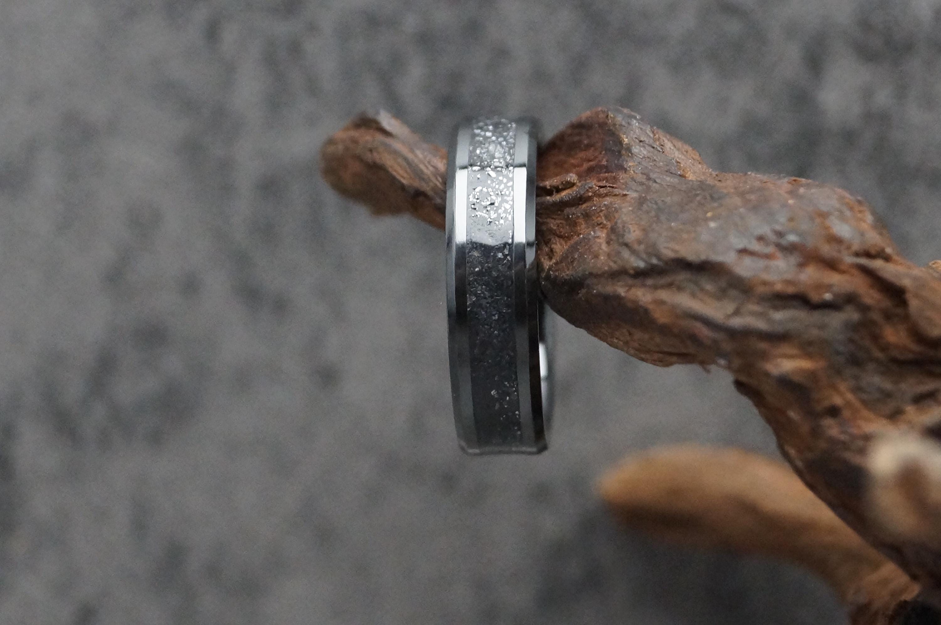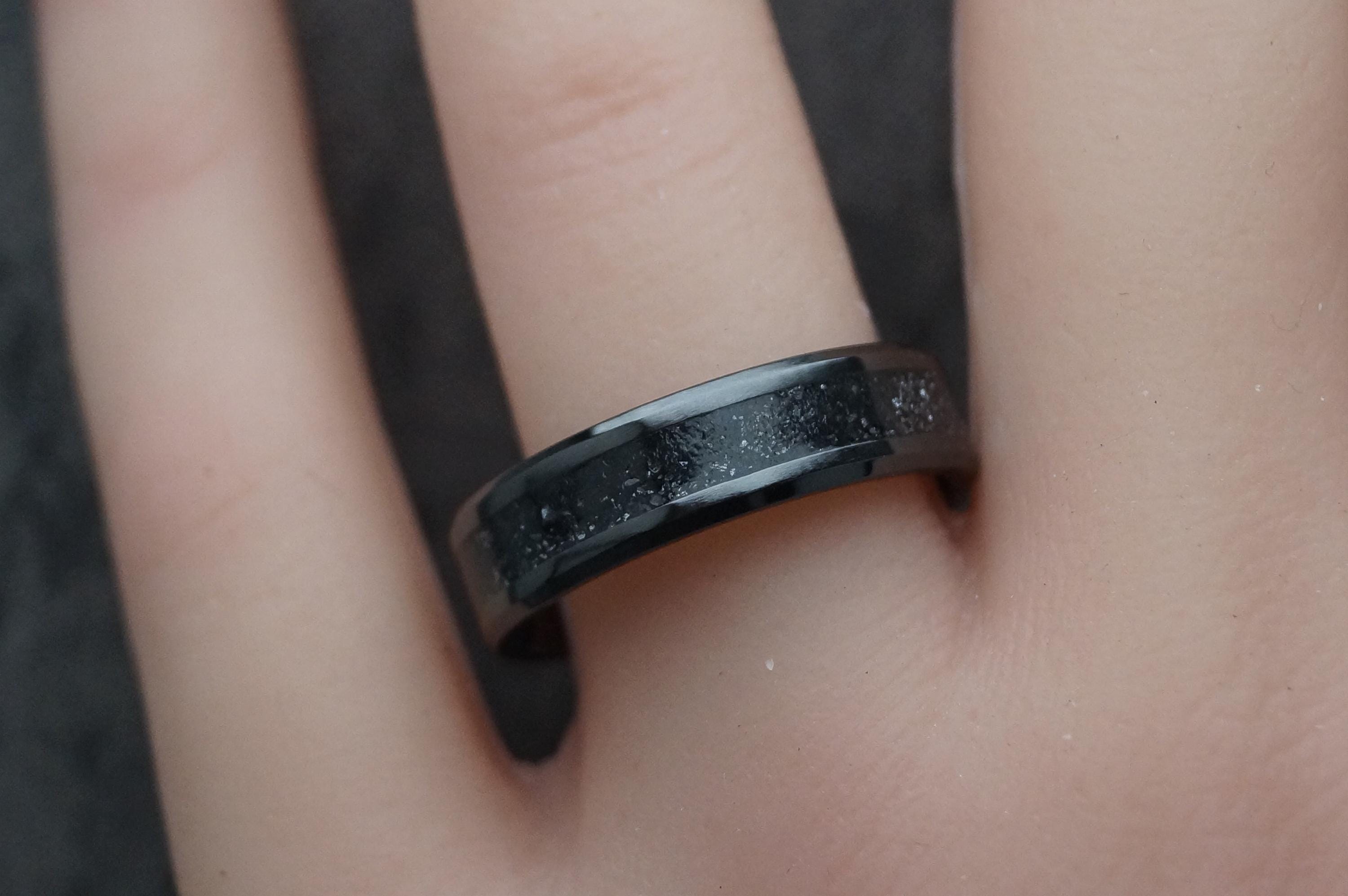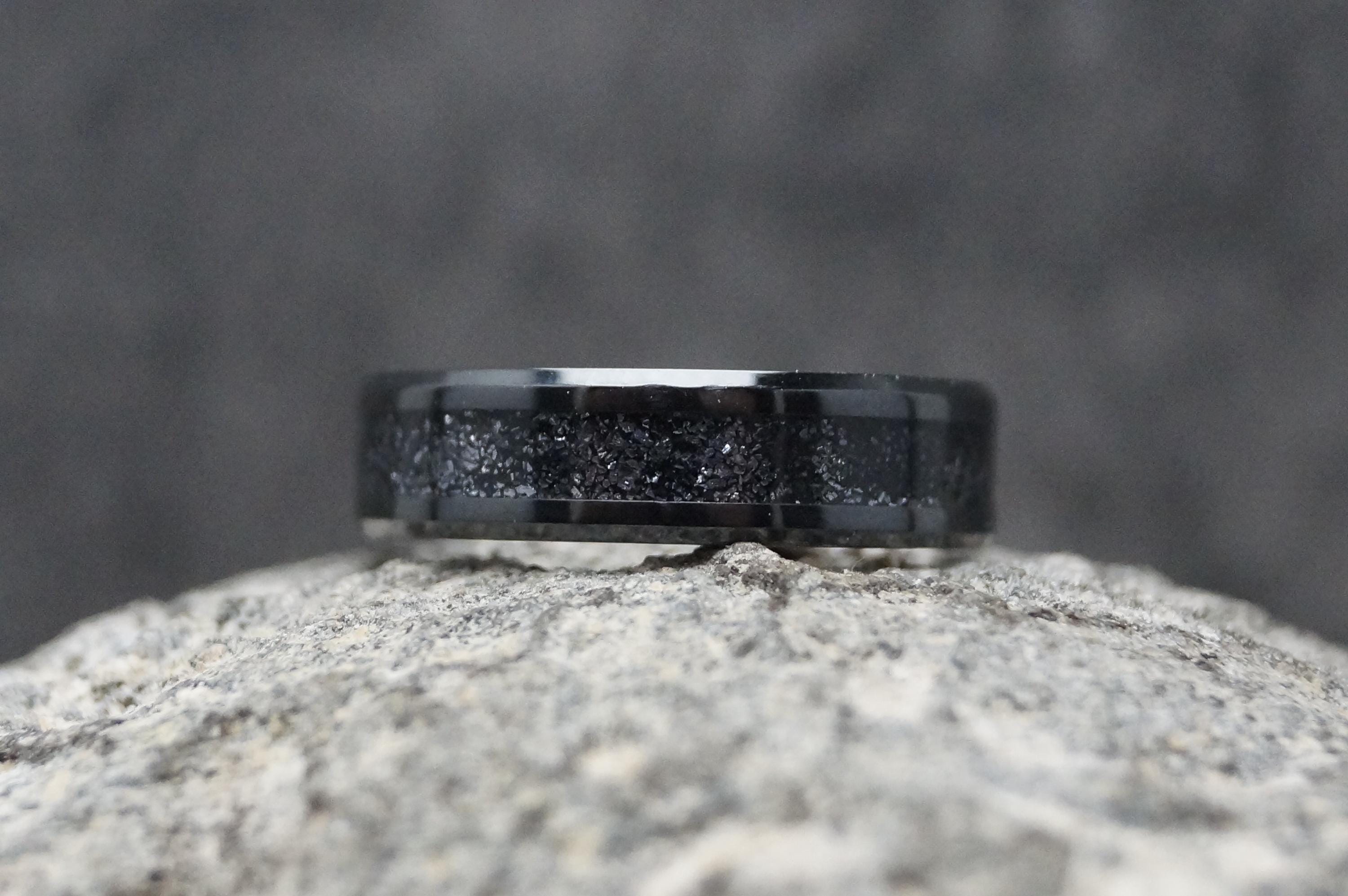 Galena Inlay Black Ceramic Wedding Band available 4 mm, 6 mm or 8 mm wide - Unique ring