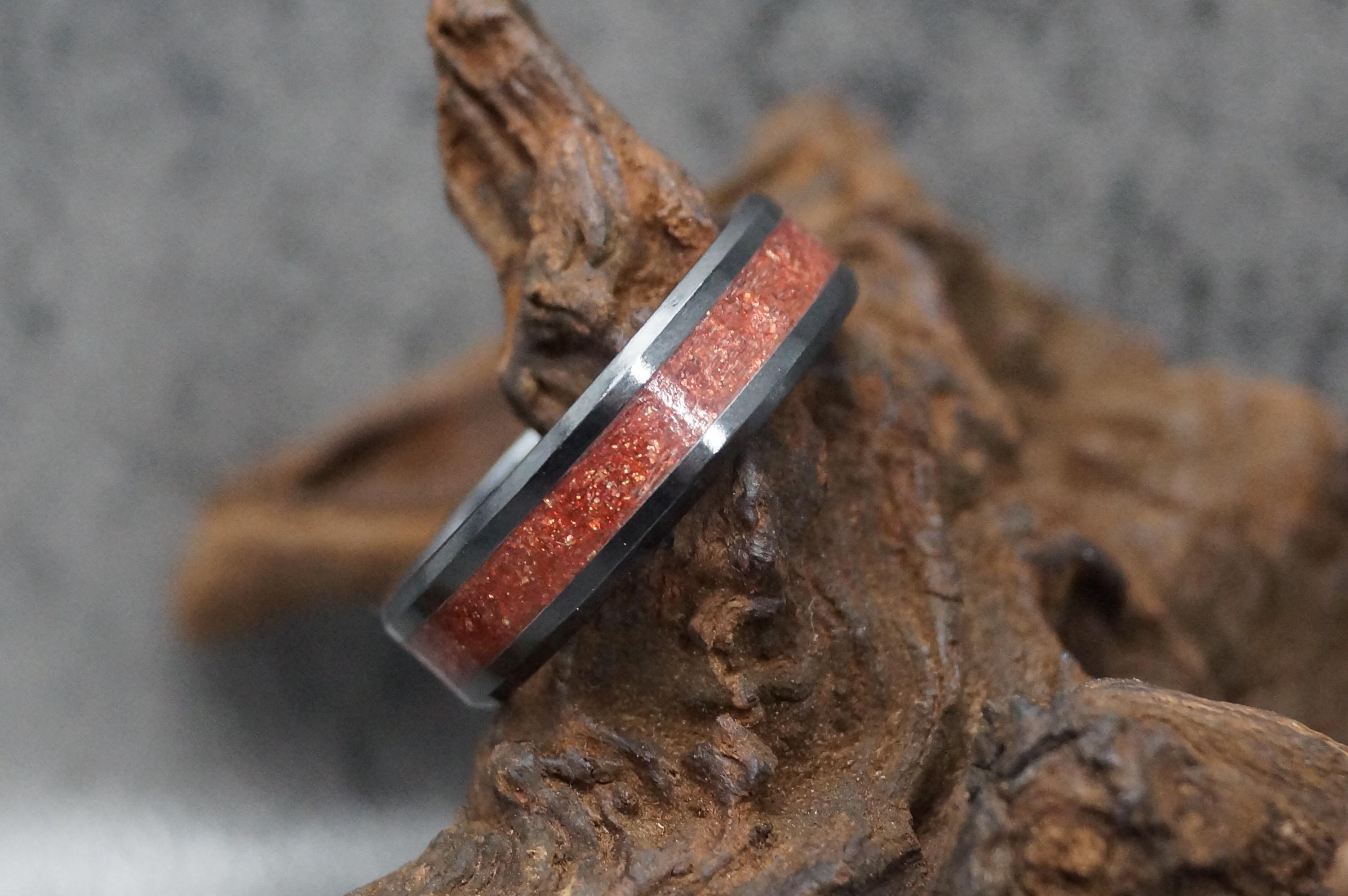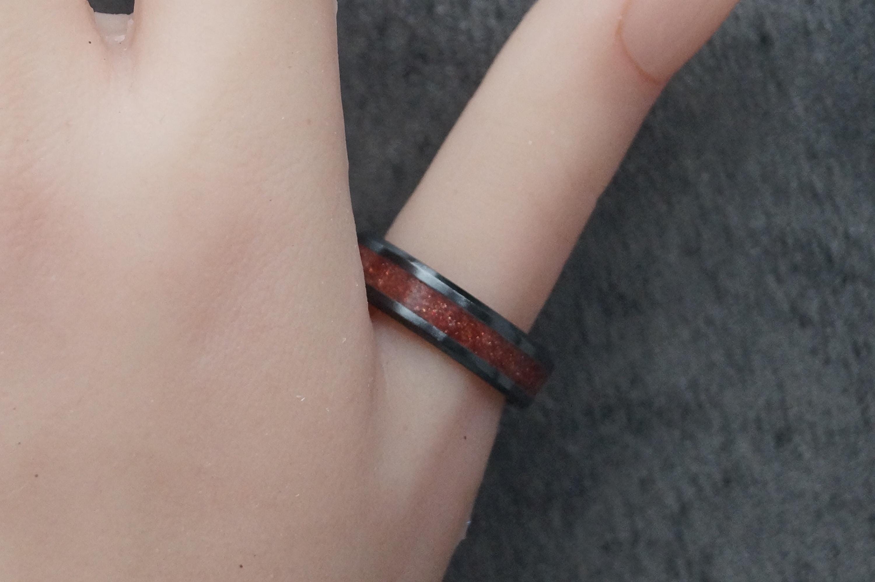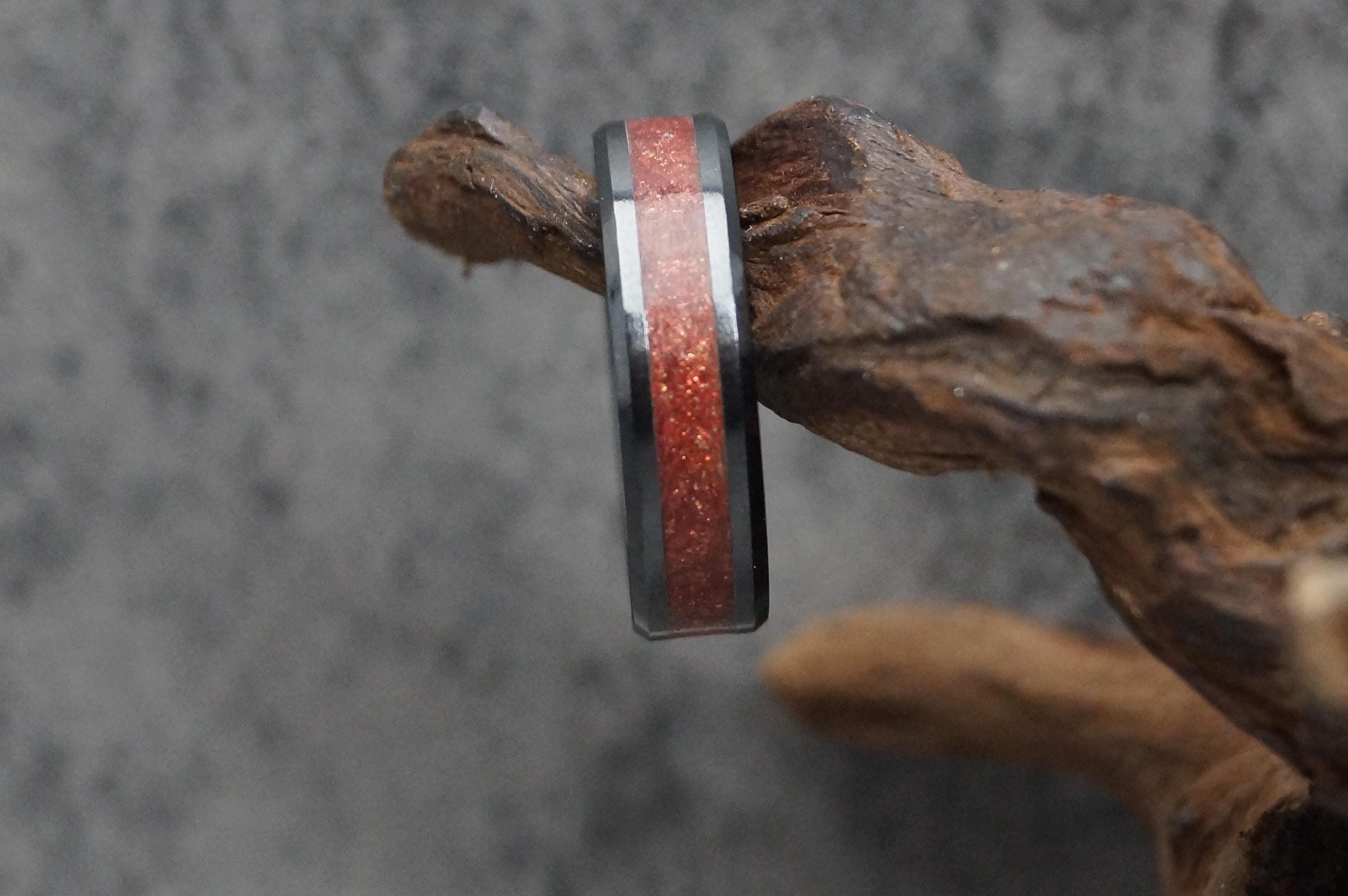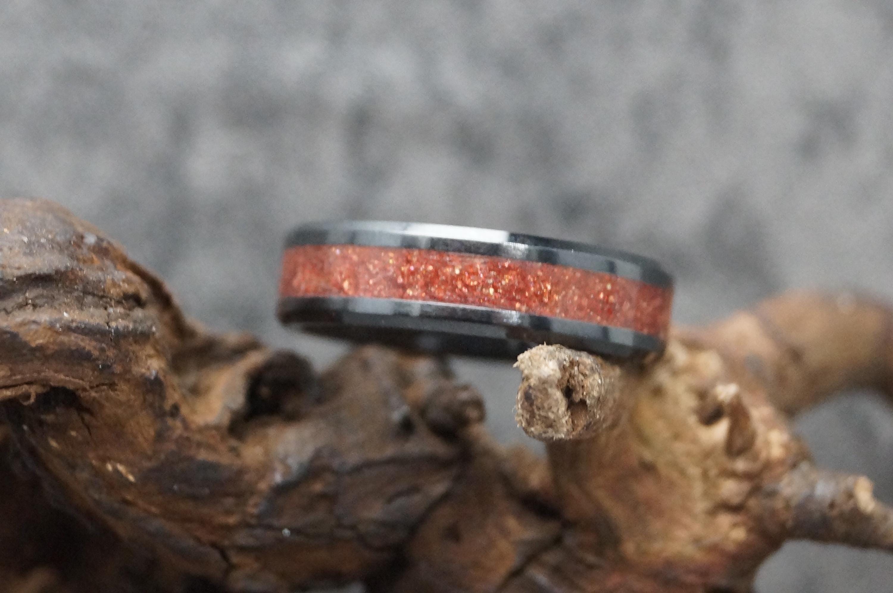 Pet Ashes Ring / Pet Fur Ring with 'On Mars' Eco-Glitter Black Ceramic Band 4 mm, 6 mm or 8 mm wide ring