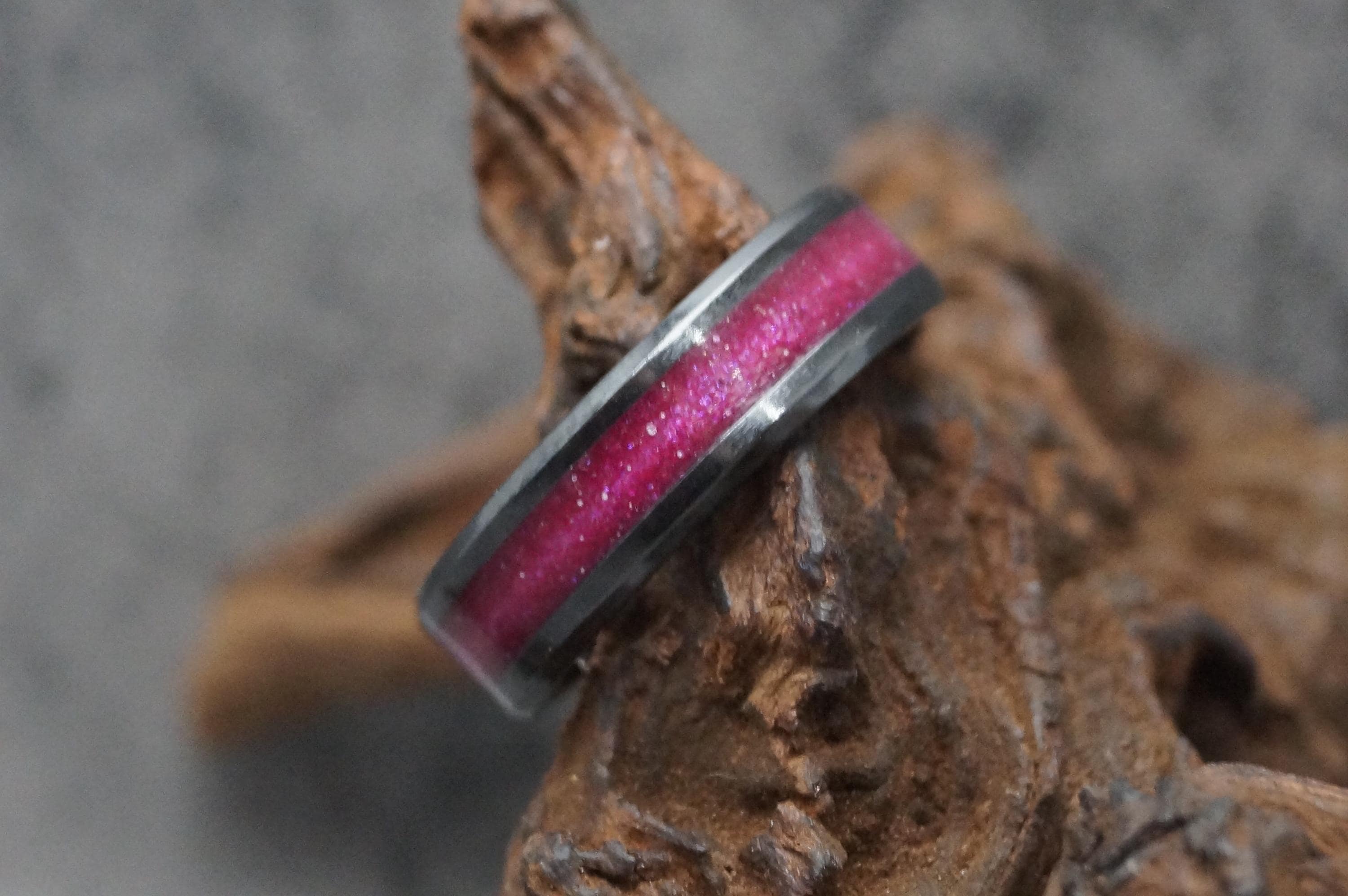 This ring would be inlaid with your pets ashes or pet fur from your cat, dog, pony or horse etc. mixed with Magenta eco-glitter.