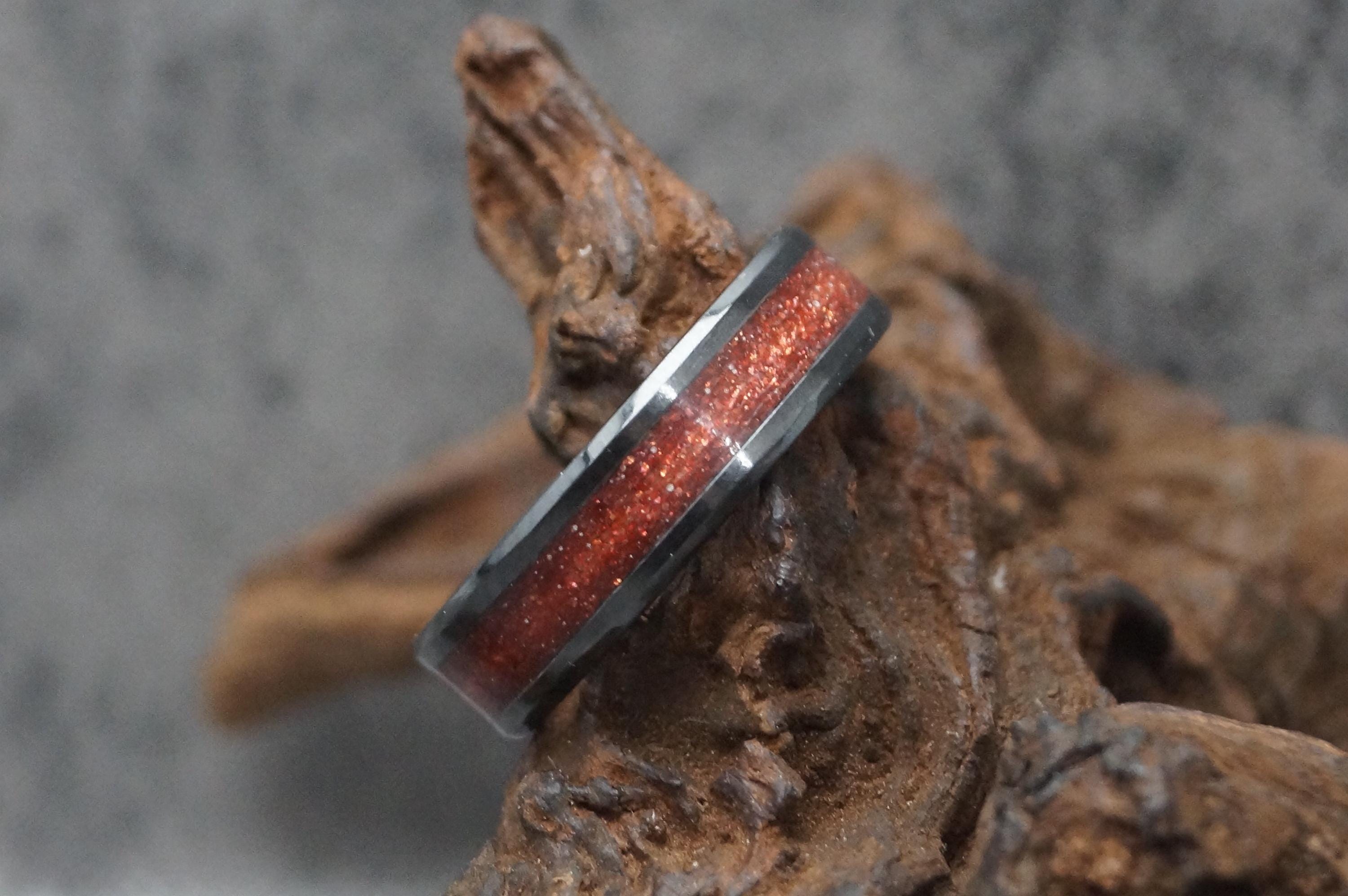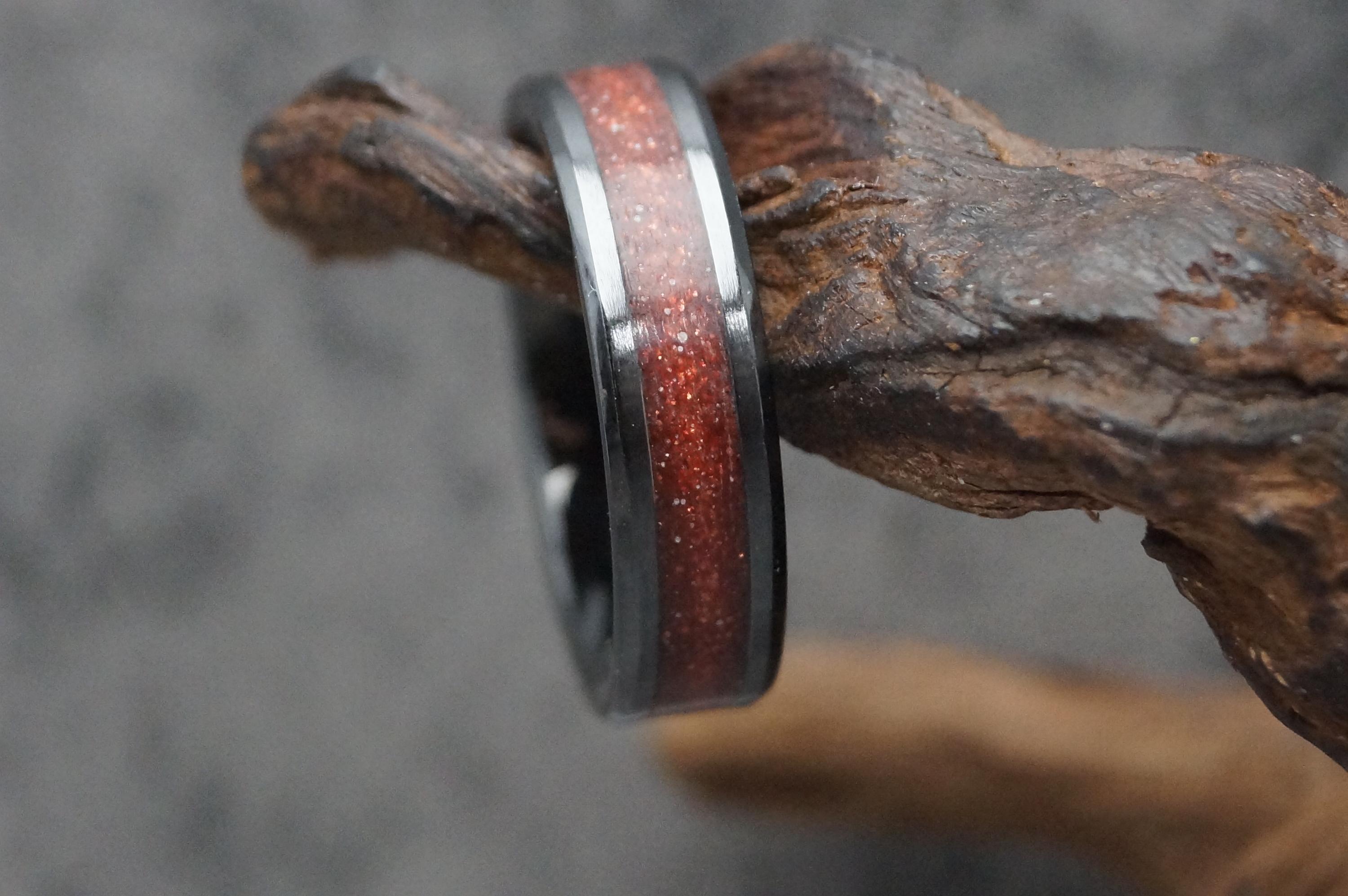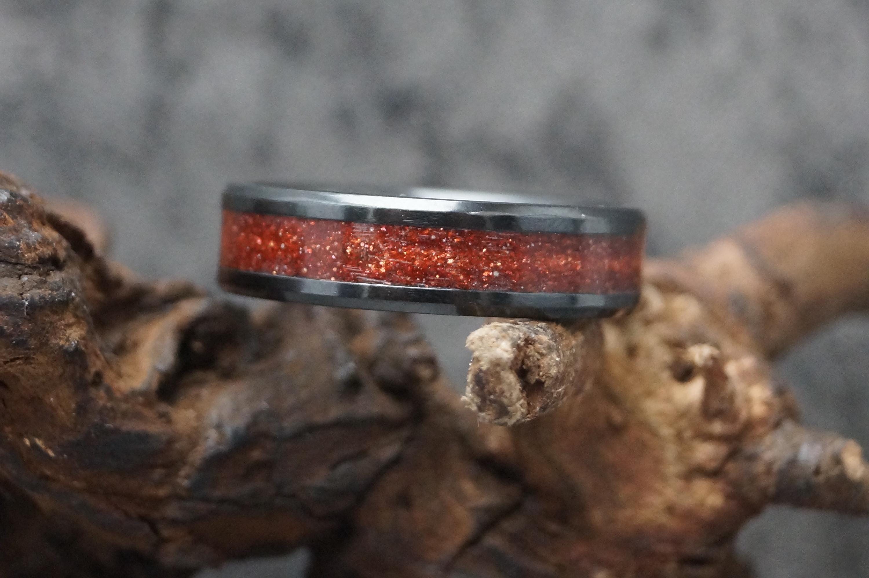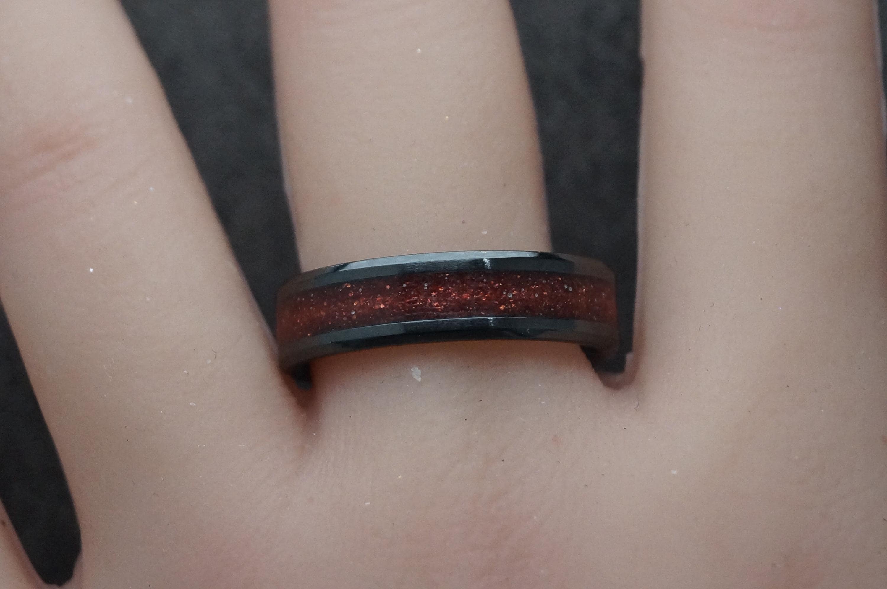 Pet Fur Ring or Pet Ashes Ring with Bronze Eco-Glitter Black Ceramic Band 4 mm, 6 mm or 8 mm wide ring