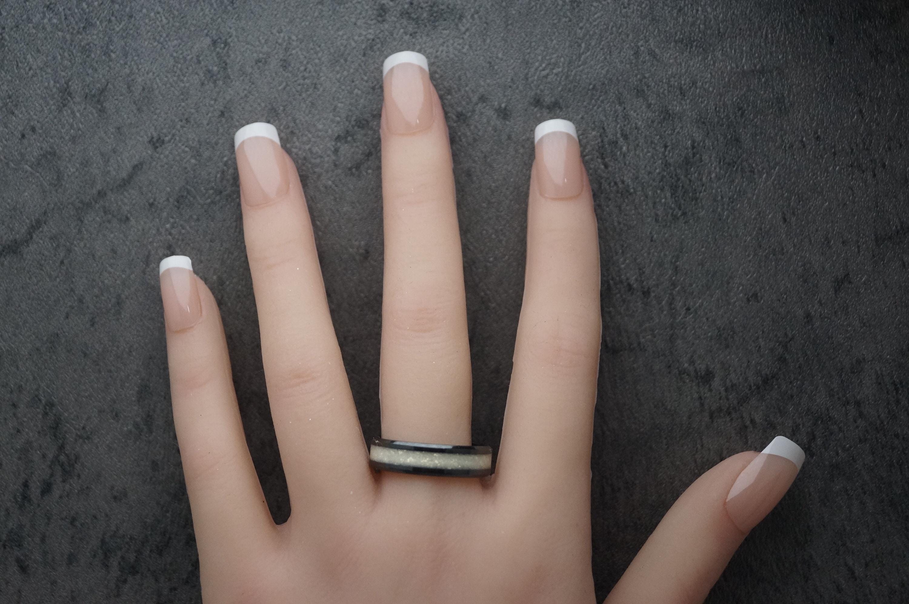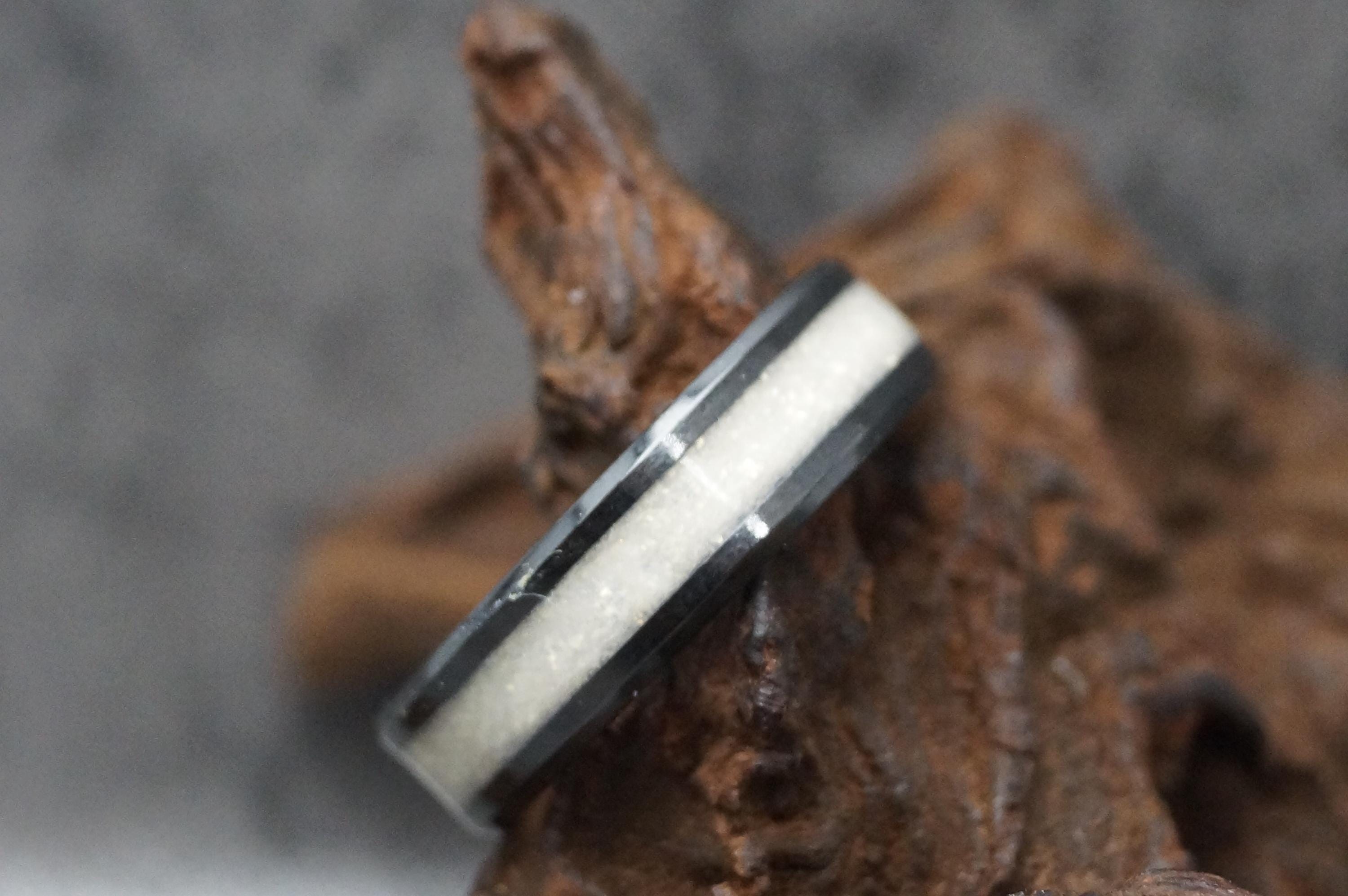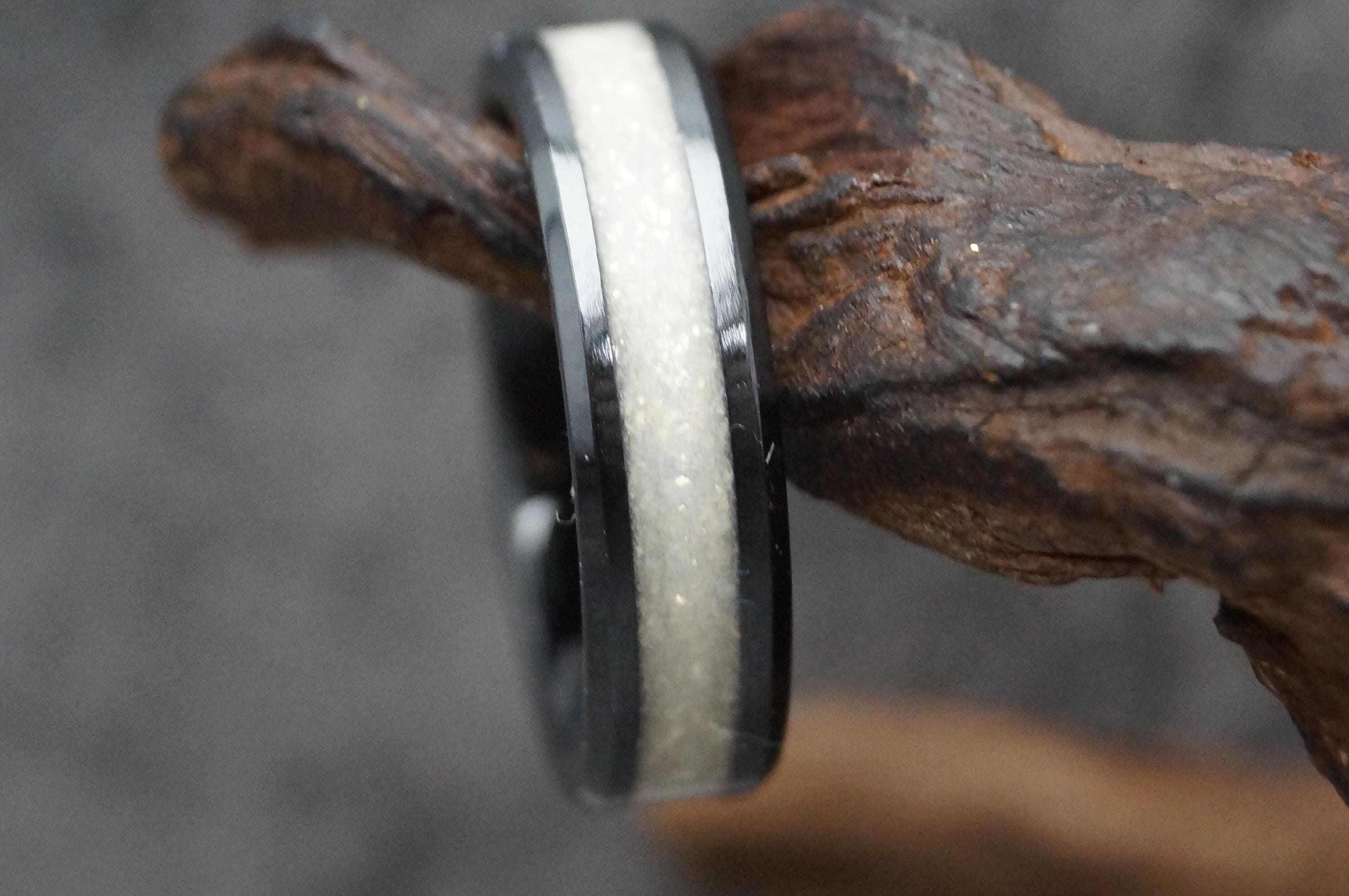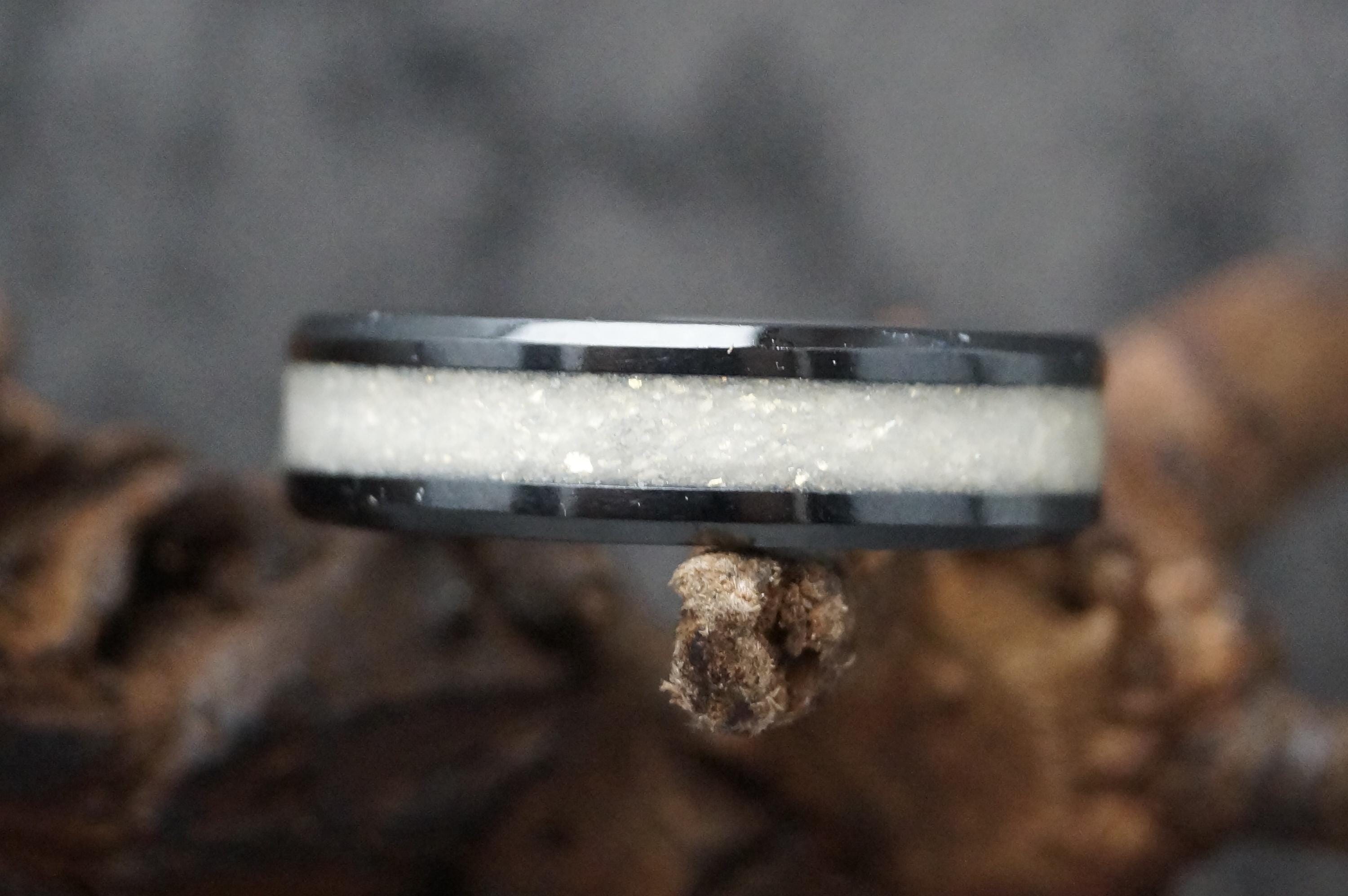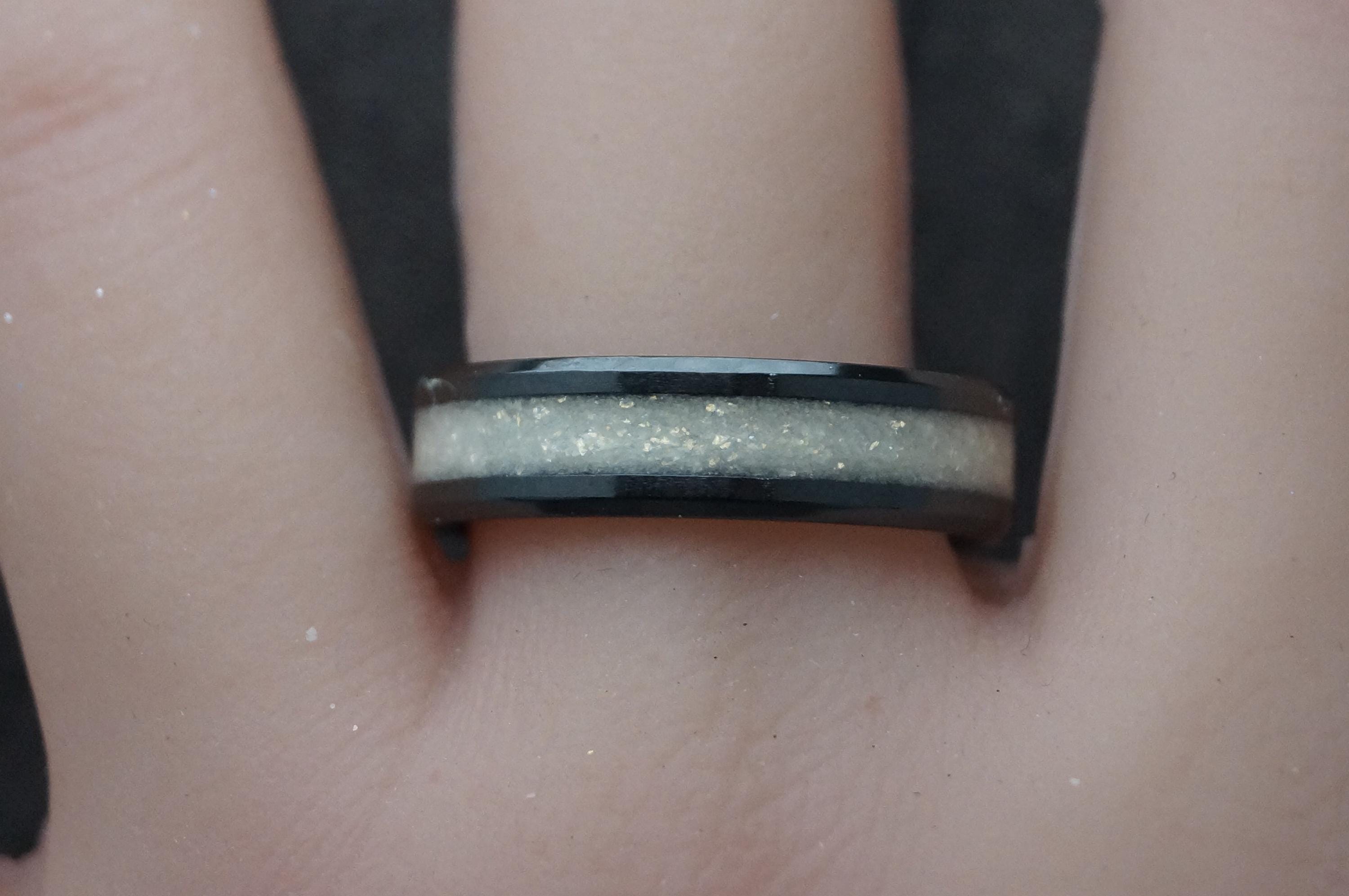 Pet Fur Ring or Pet Ashes Ring with Reflective Gold Eco-Glitter Black Ceramic Band 4 mm, 6 mm or 8 mm wide ring
