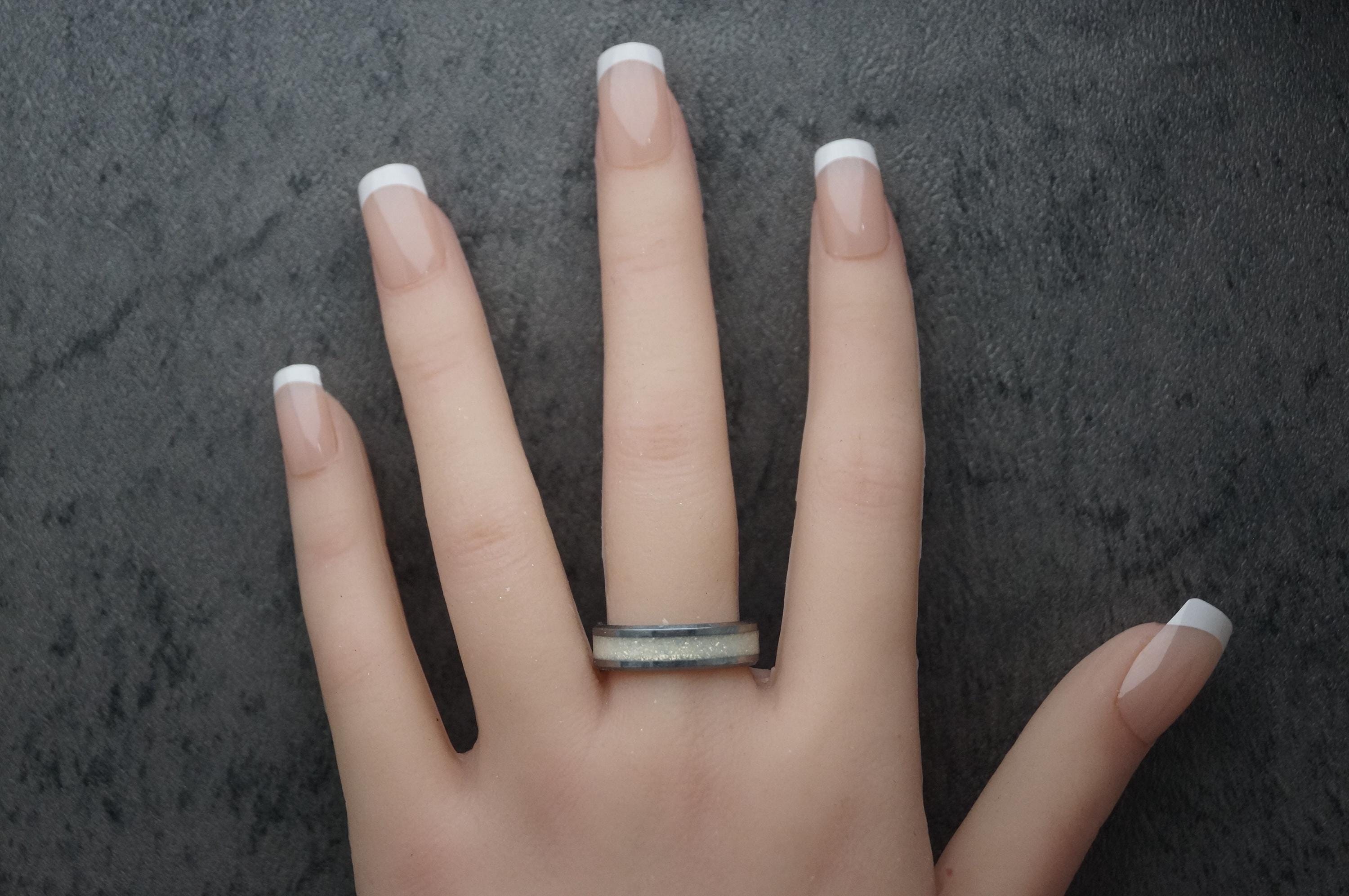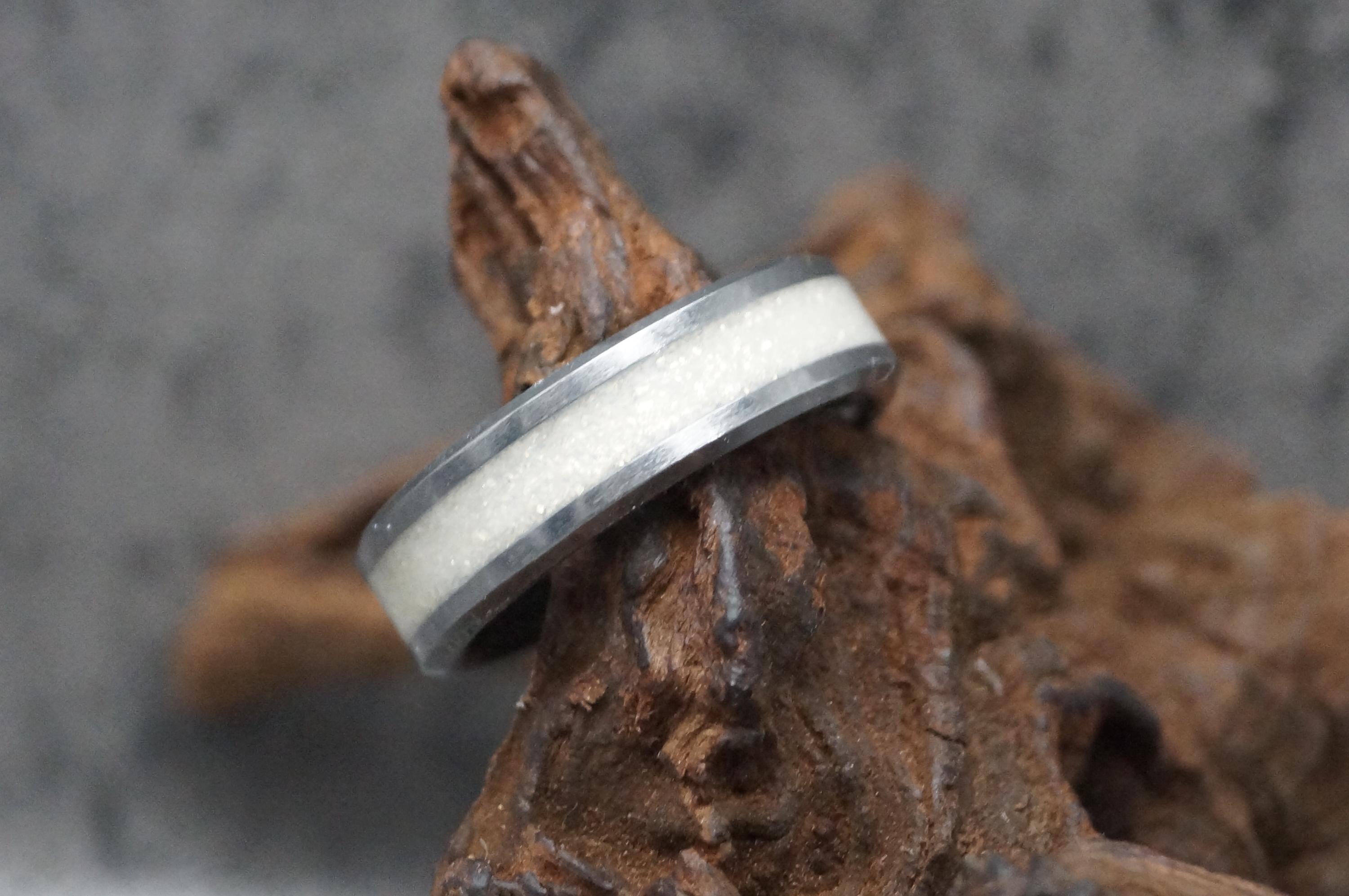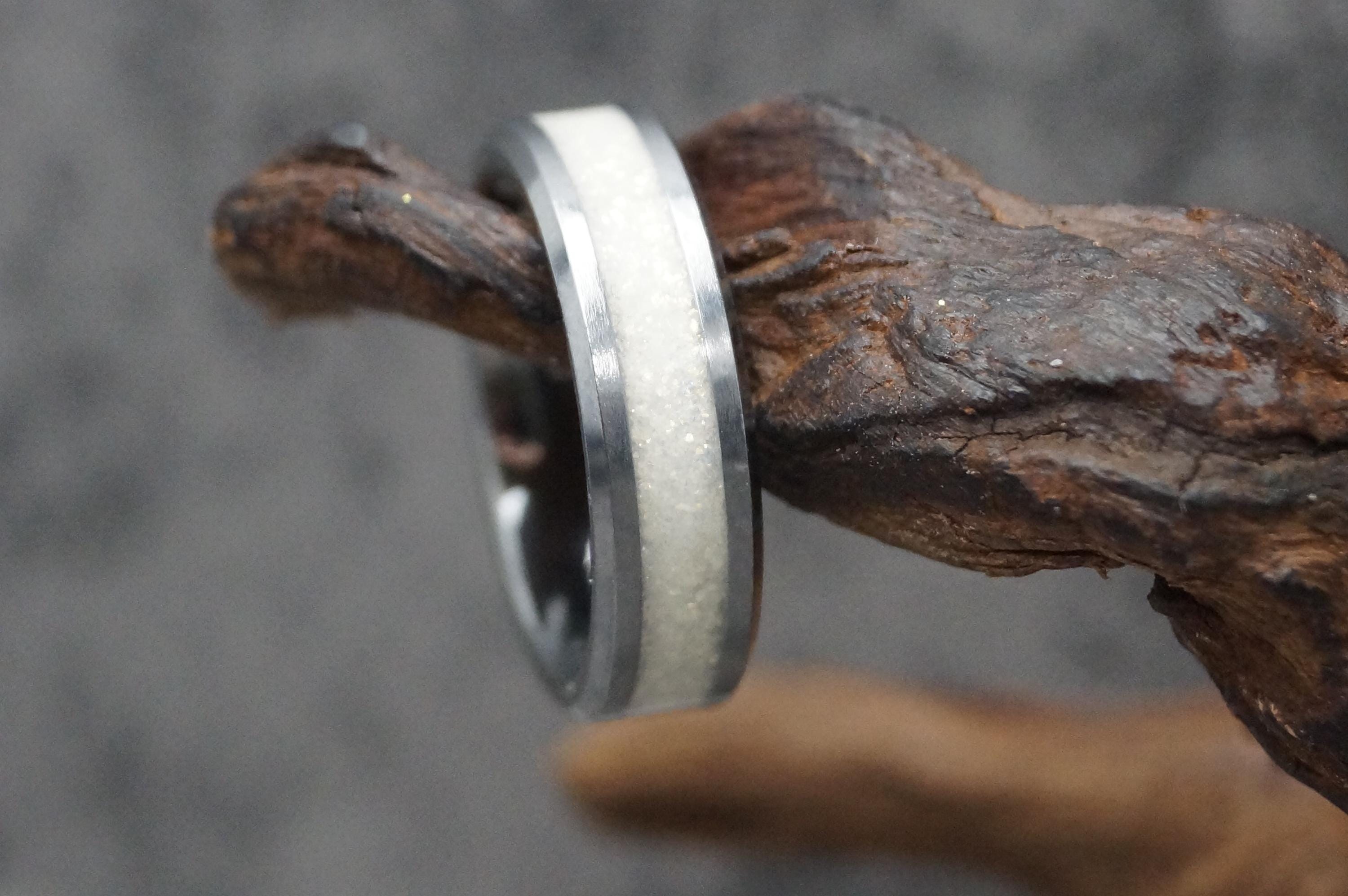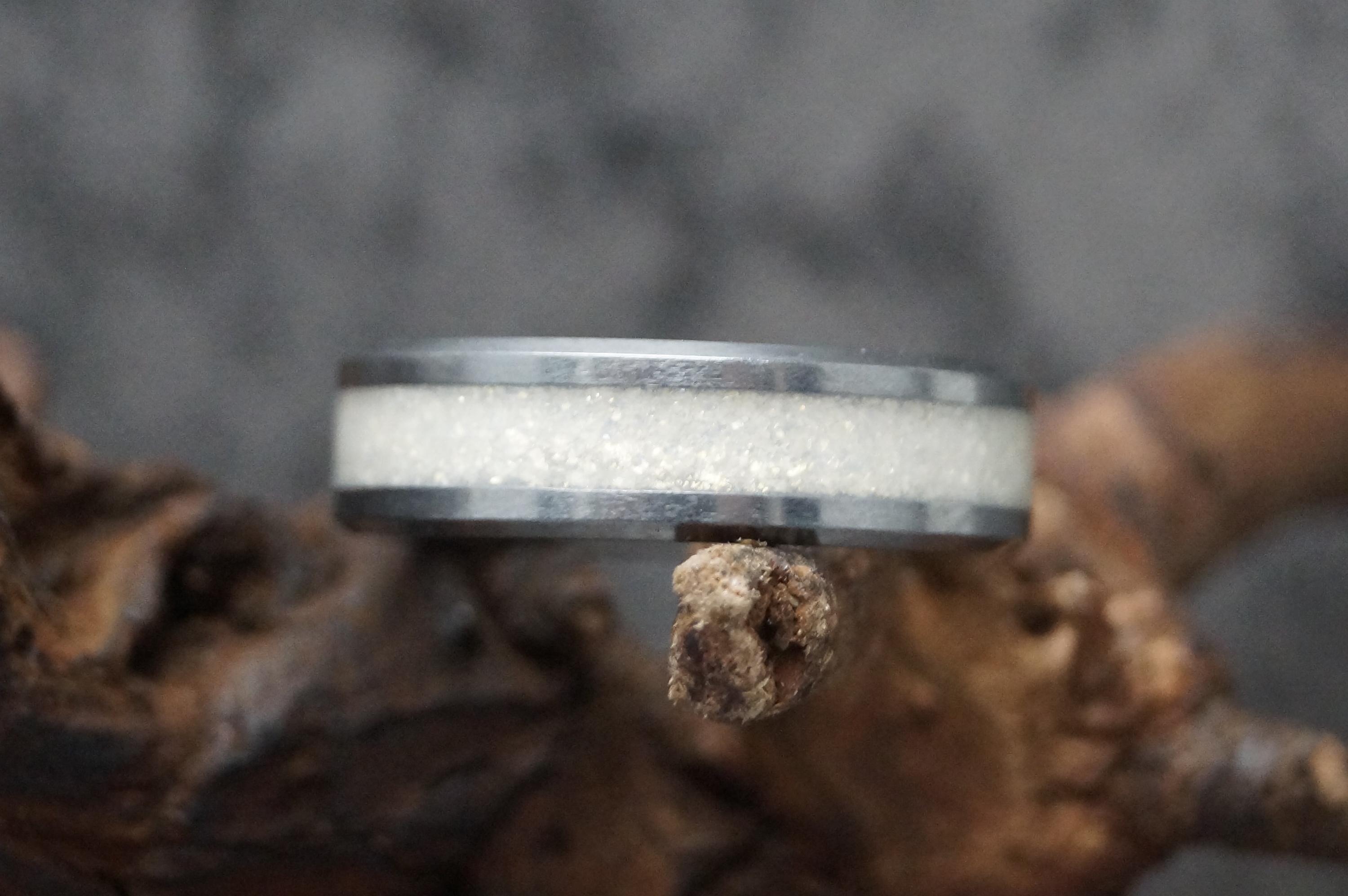 Tungsten ring inlaid with Reflective Gold eco-glitter and your Pet ashes, pet hair / fur from your Dog, Cat (fur and or whiskers), Pony hair or Horse hair etc.