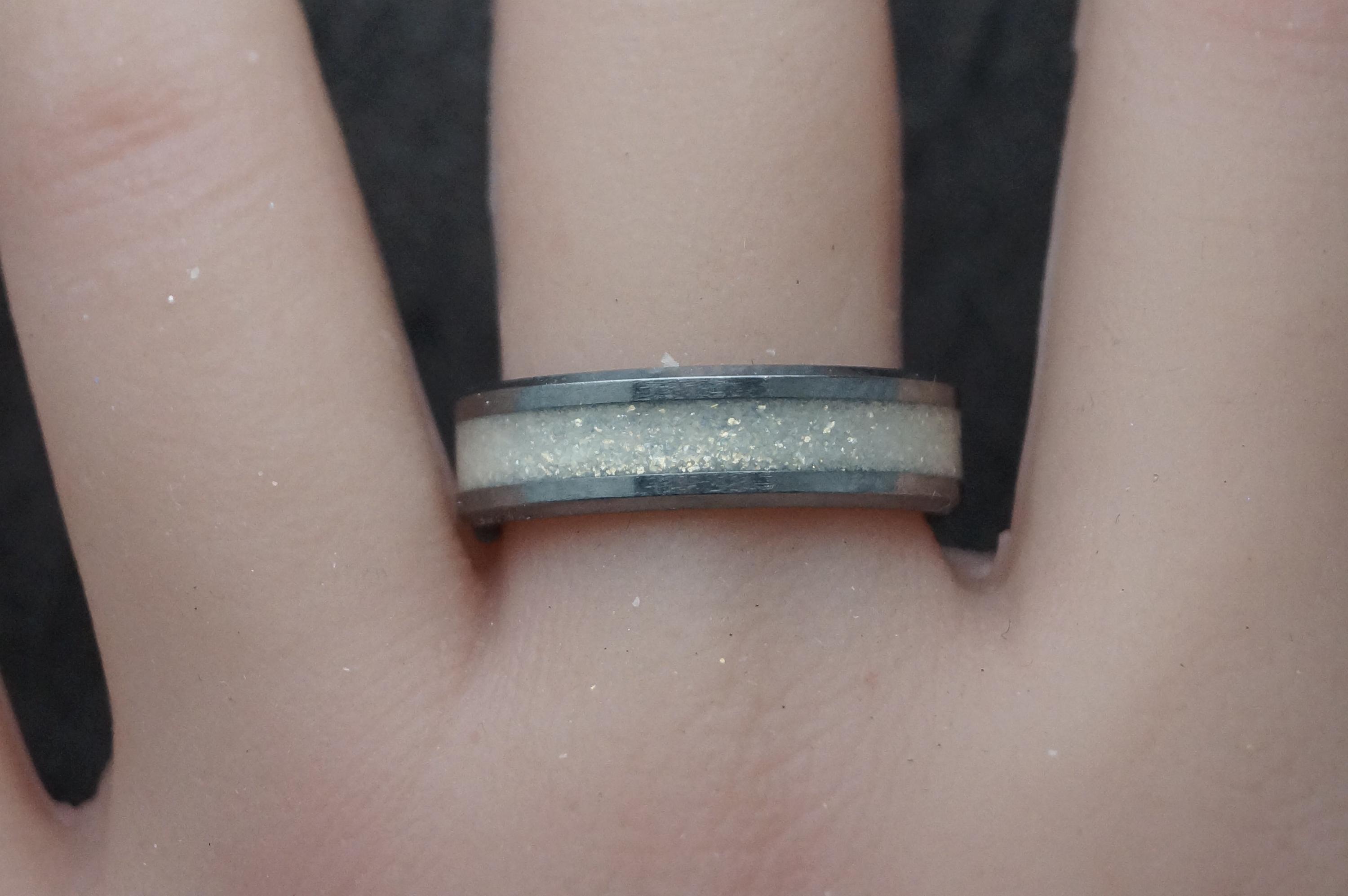 Pet Fur Ring or Pet Ashes Ring with Reflective Gold Eco-Glitter Tungsten Band available 4 mm, 6 mm or 8 mm wide ring.