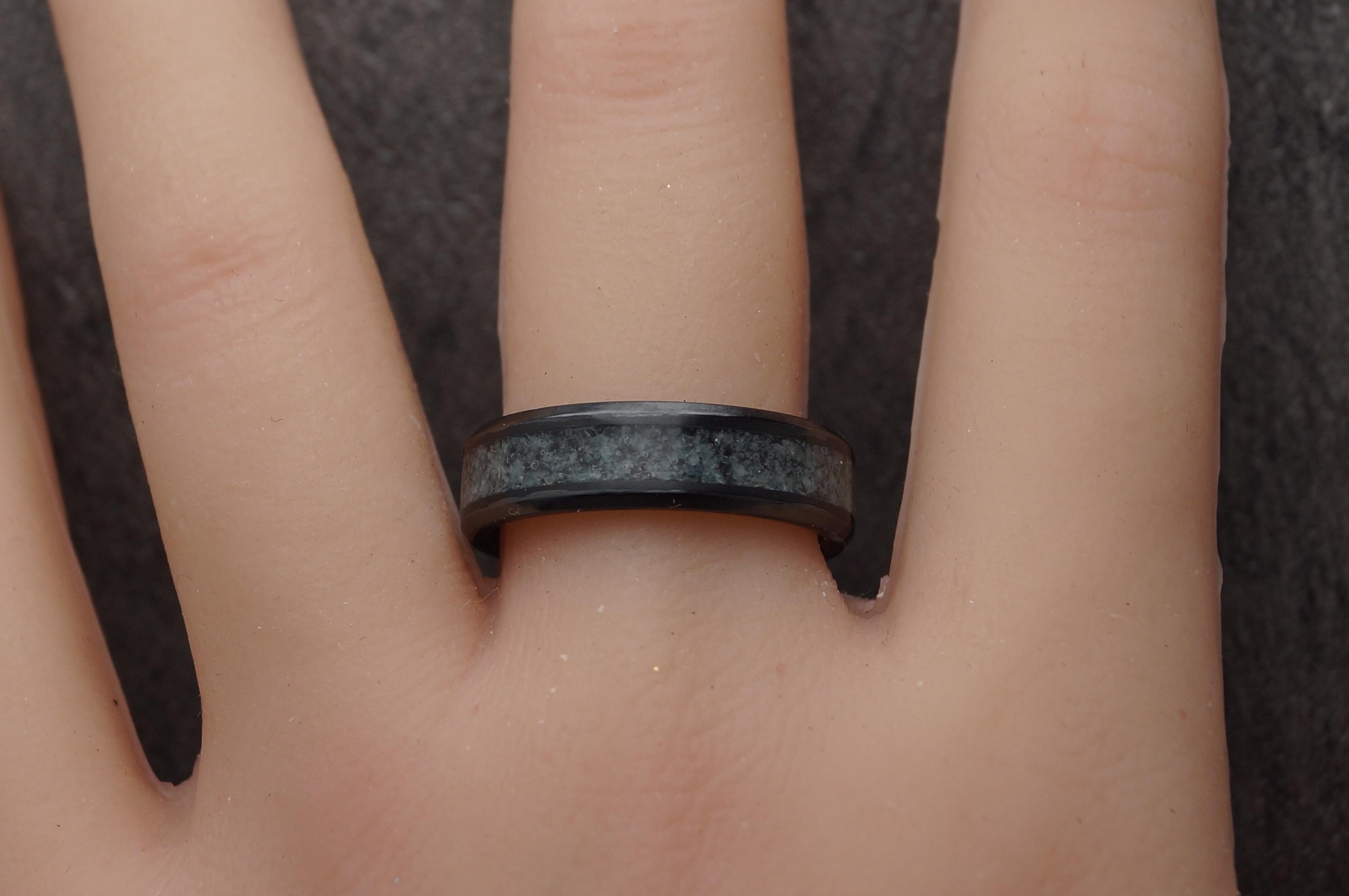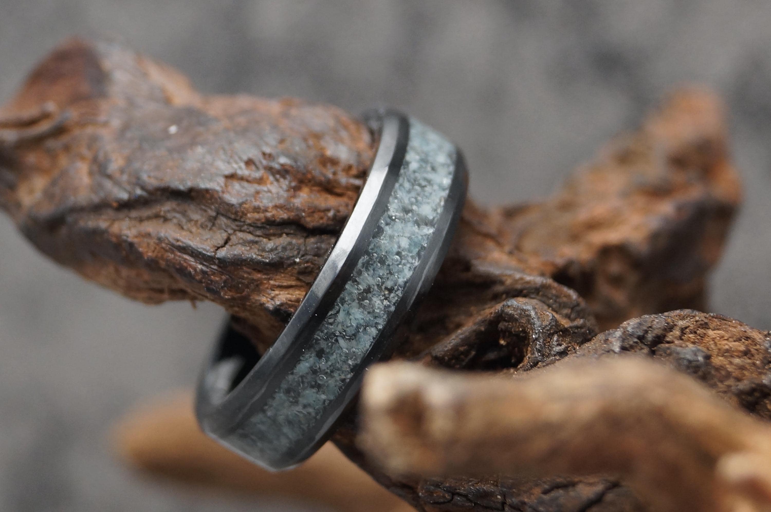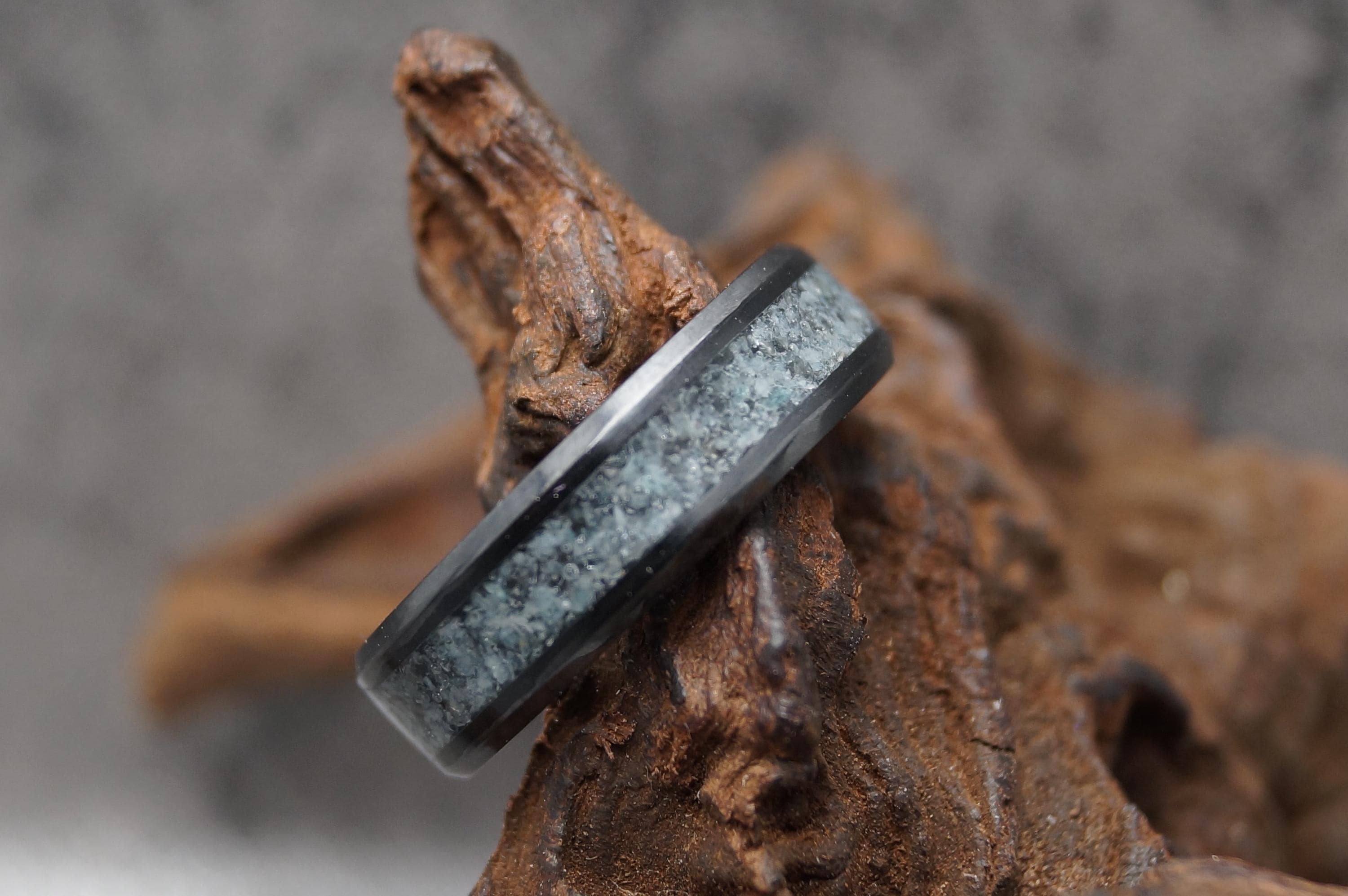 Amazonite inlay Black Ceramic Band available 4 mm, 6 mm or 8 mm wide