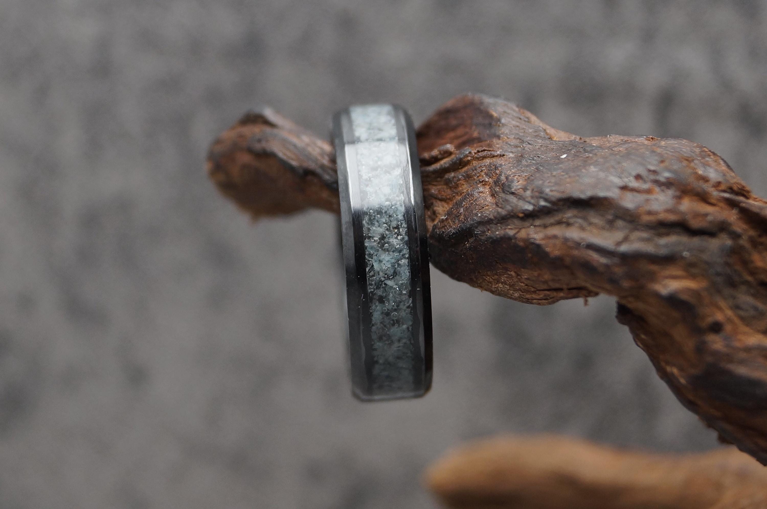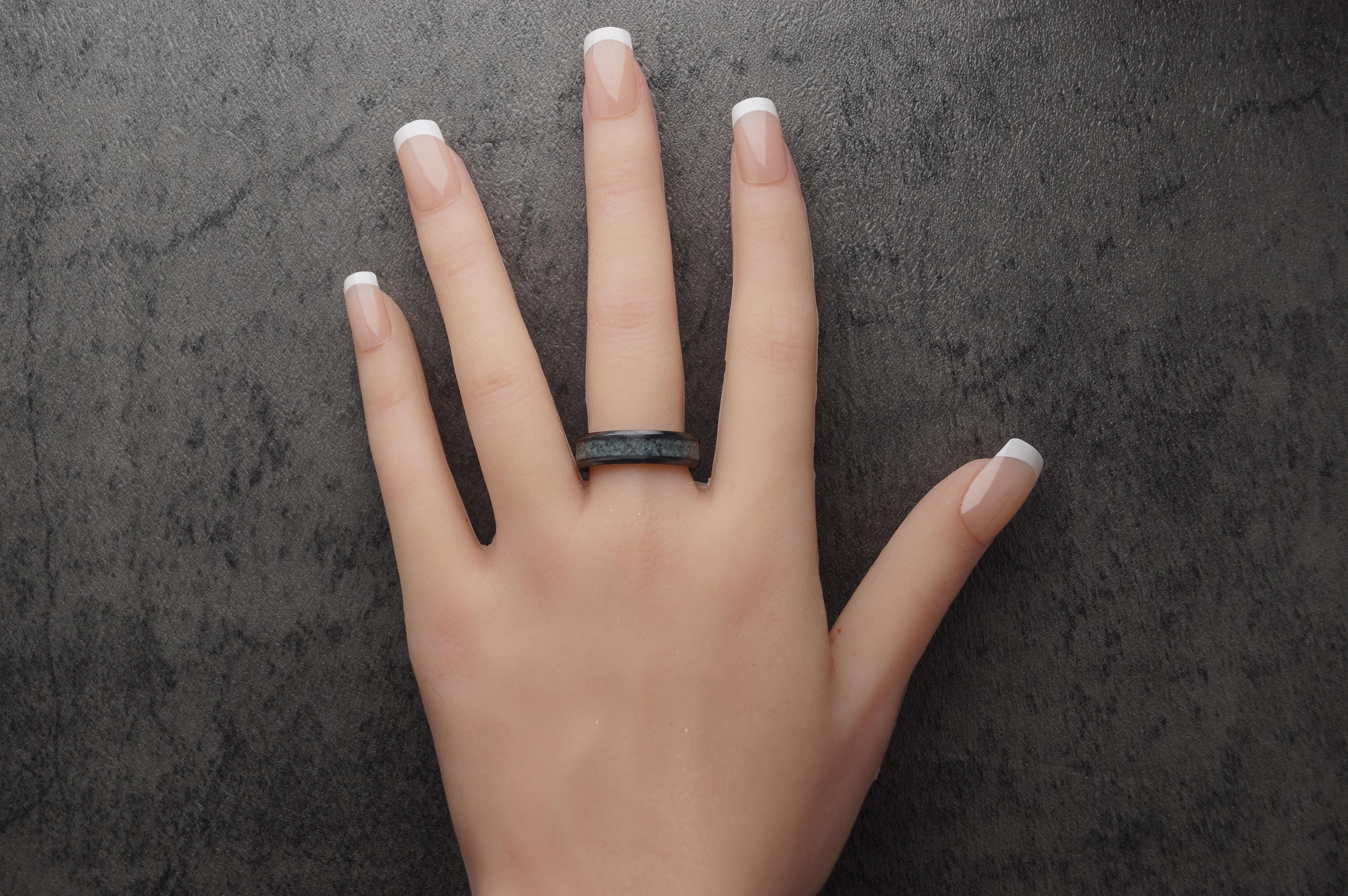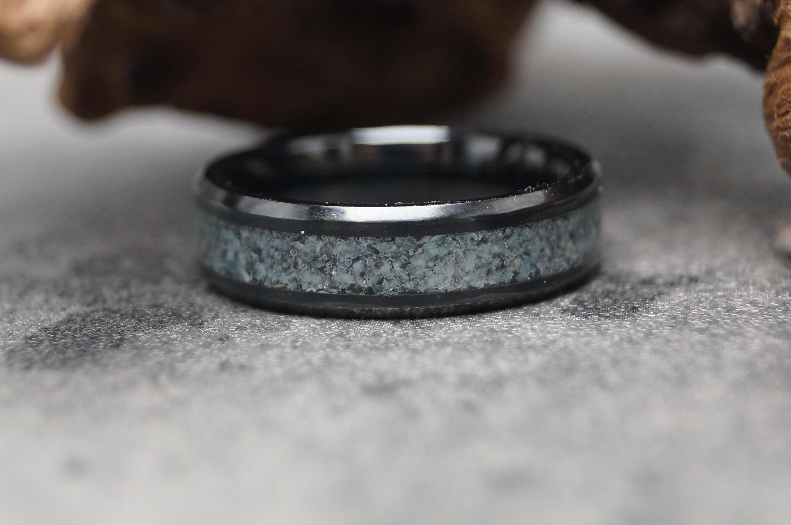 Amazonite inlay Black Ceramic Band available 4 mm, 6 mm or 8 mm wide