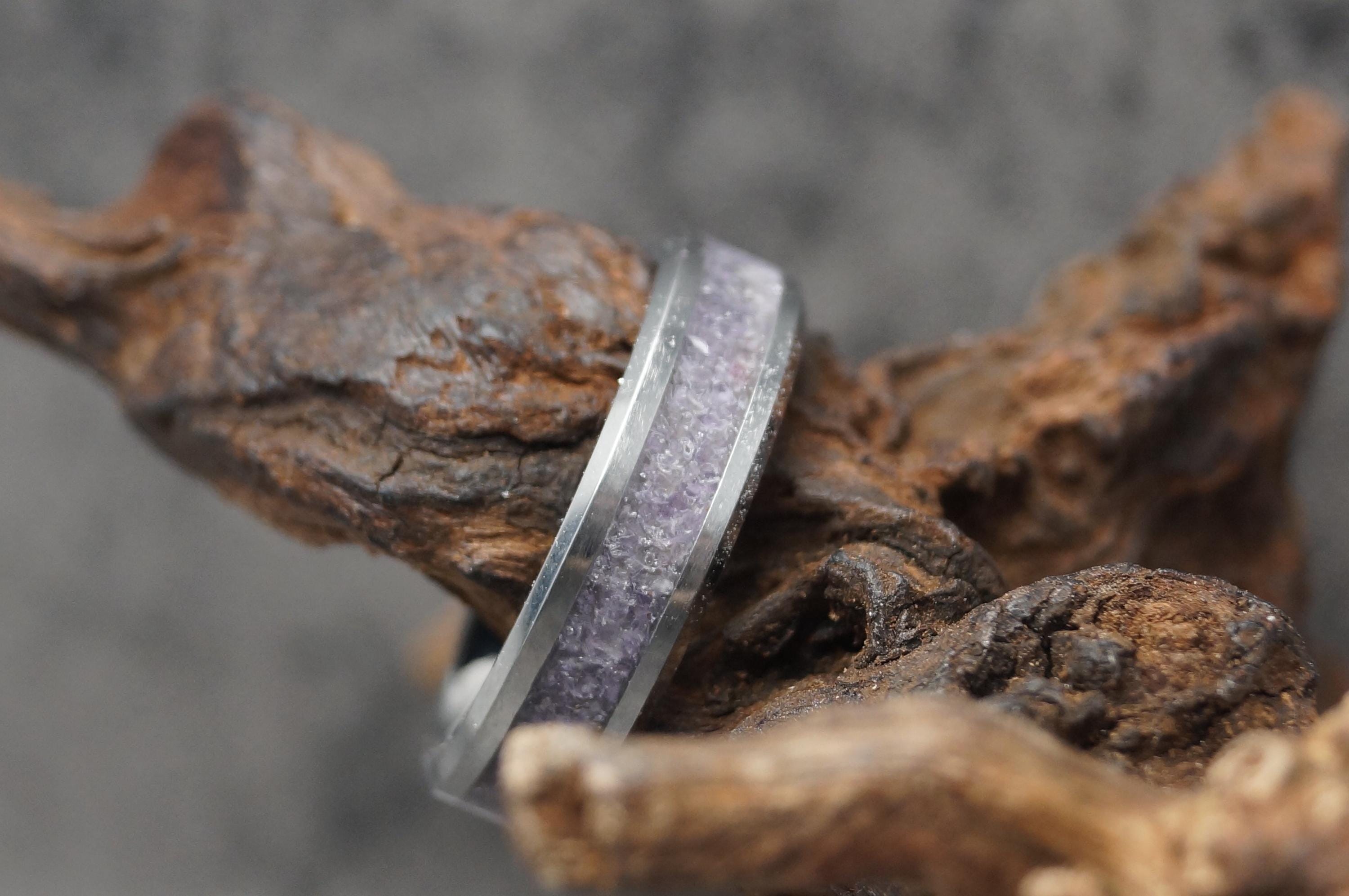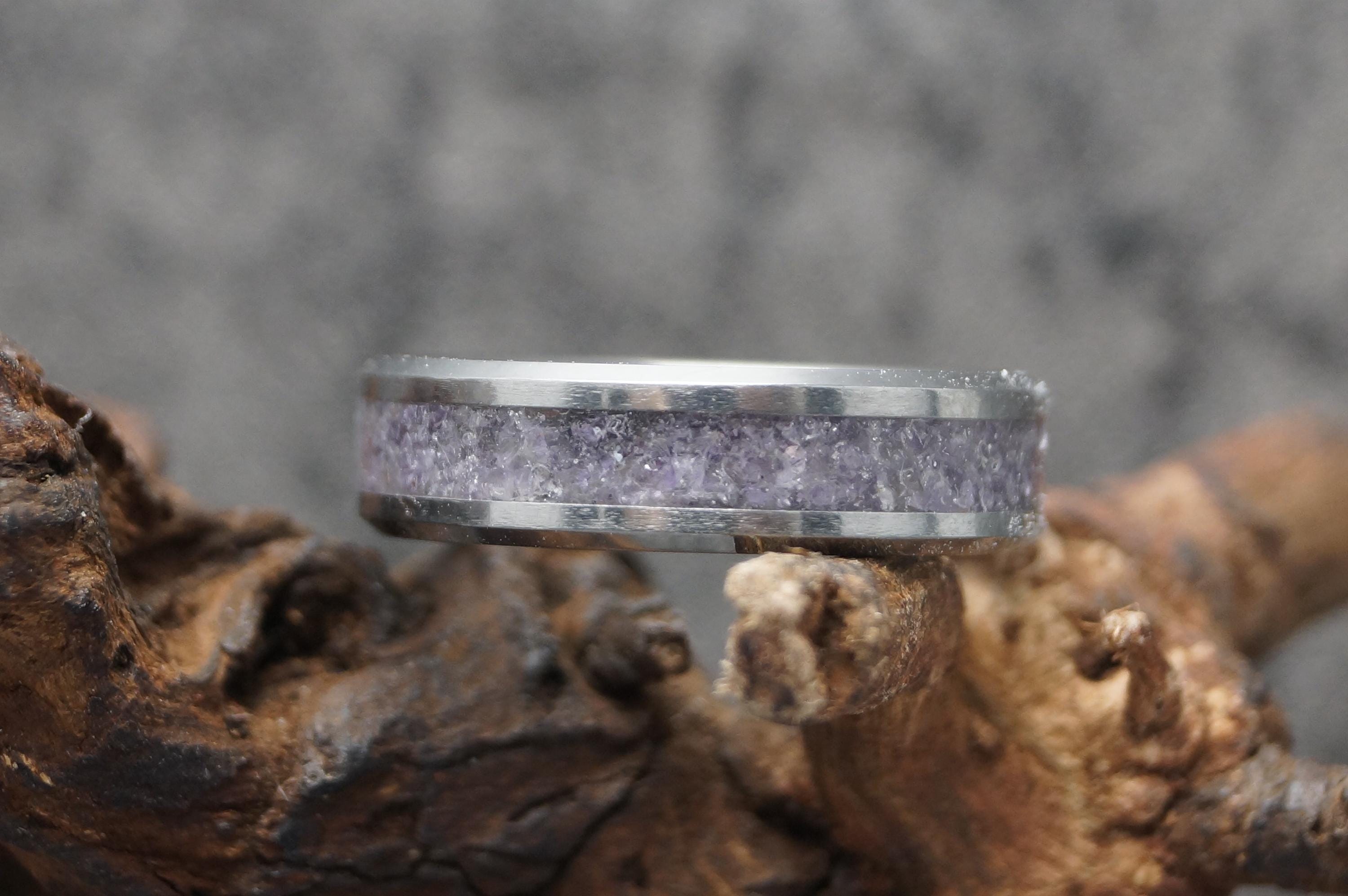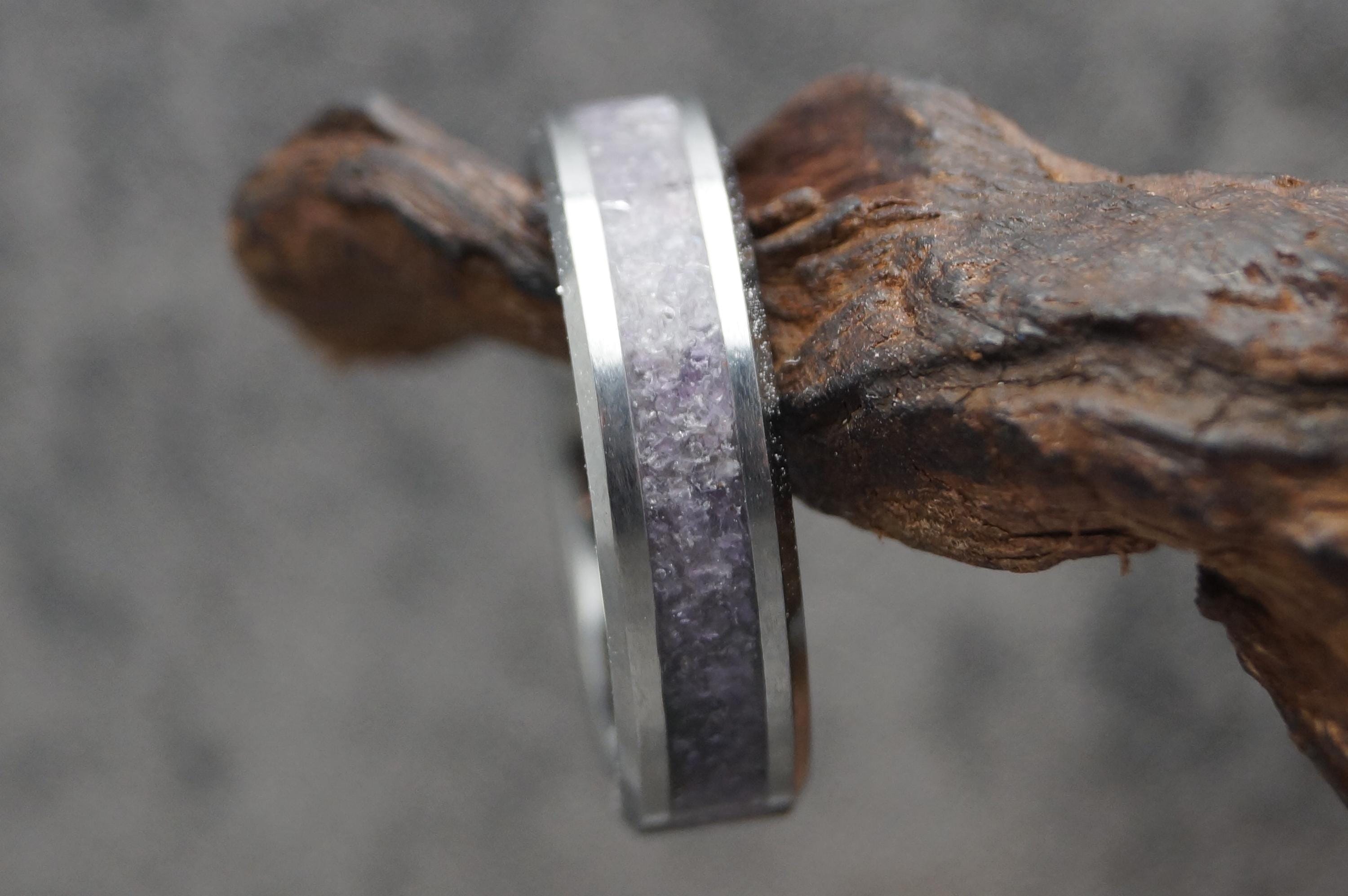 Amethyst Inlay Tungsten Carbide Band available 4 mm, 6 mm or 8 mm wide - Unique ring