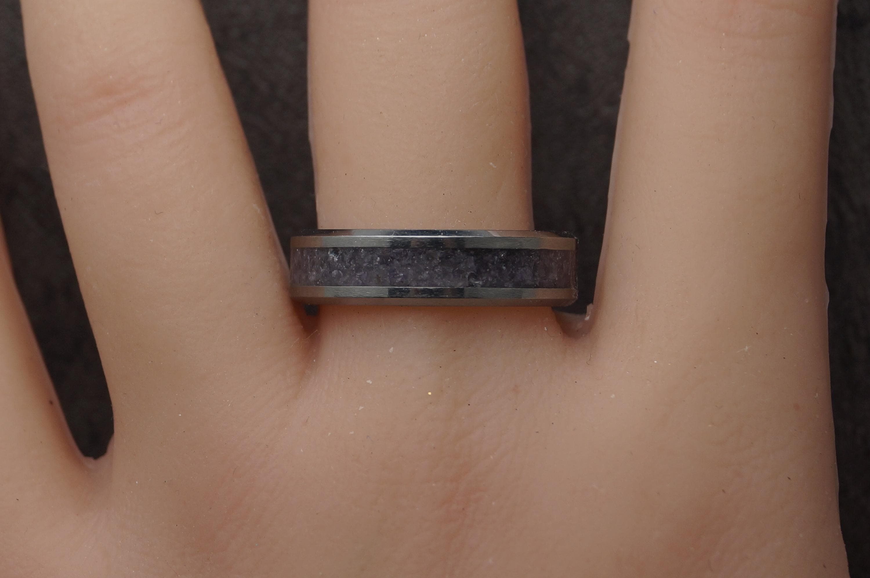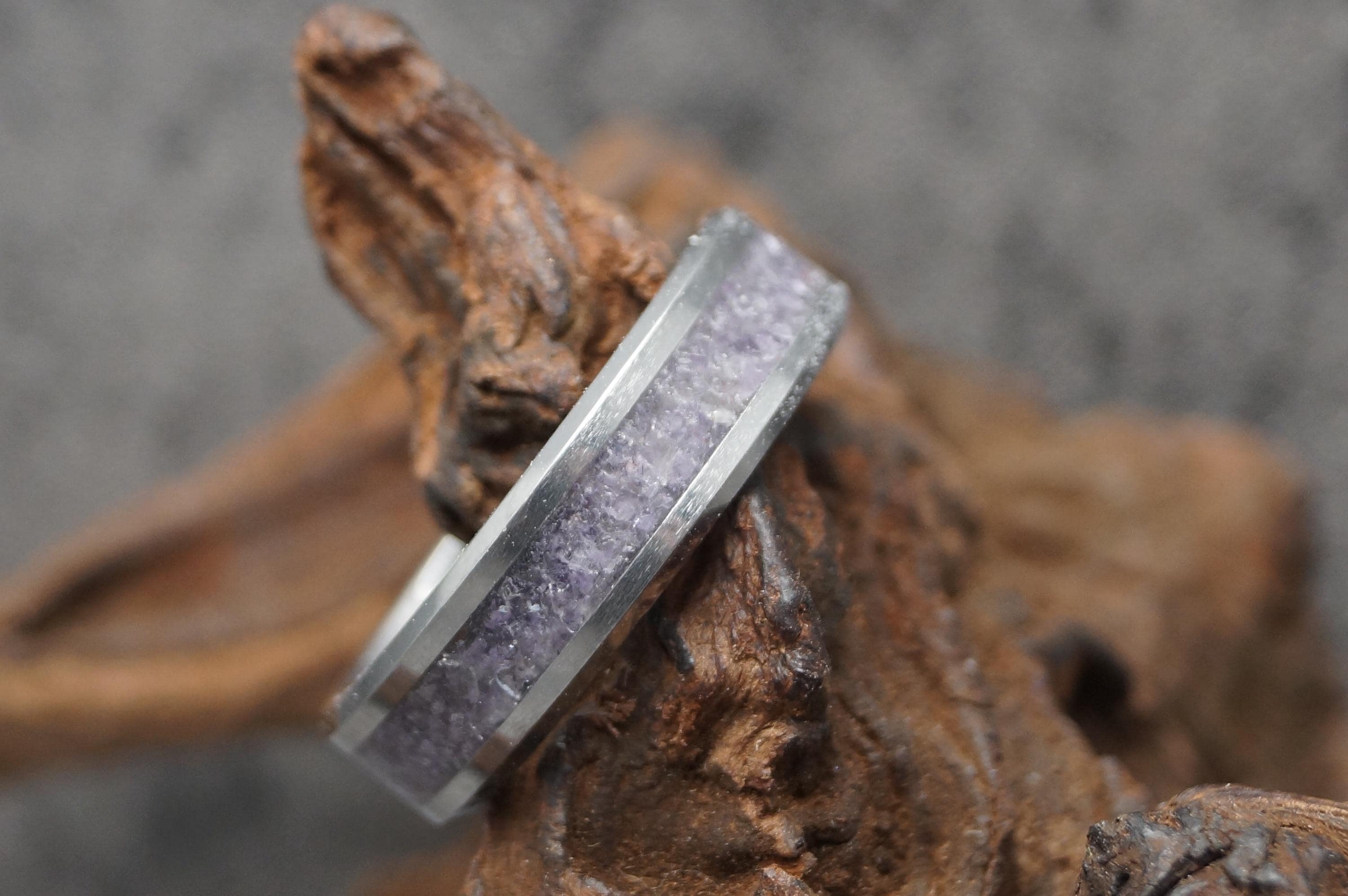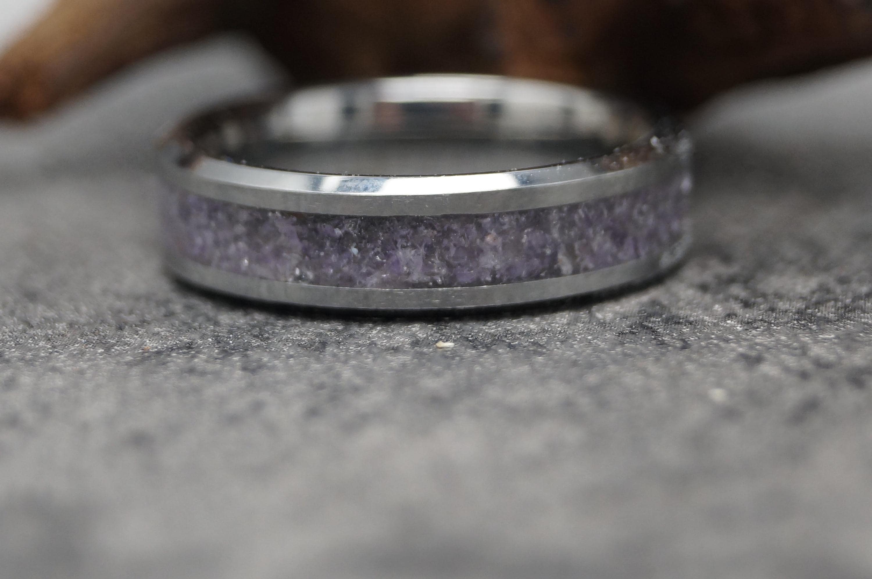 Amethyst Inlay Tungsten Carbide Band available 4 mm, 6 mm or 8 mm wide - Unique ring