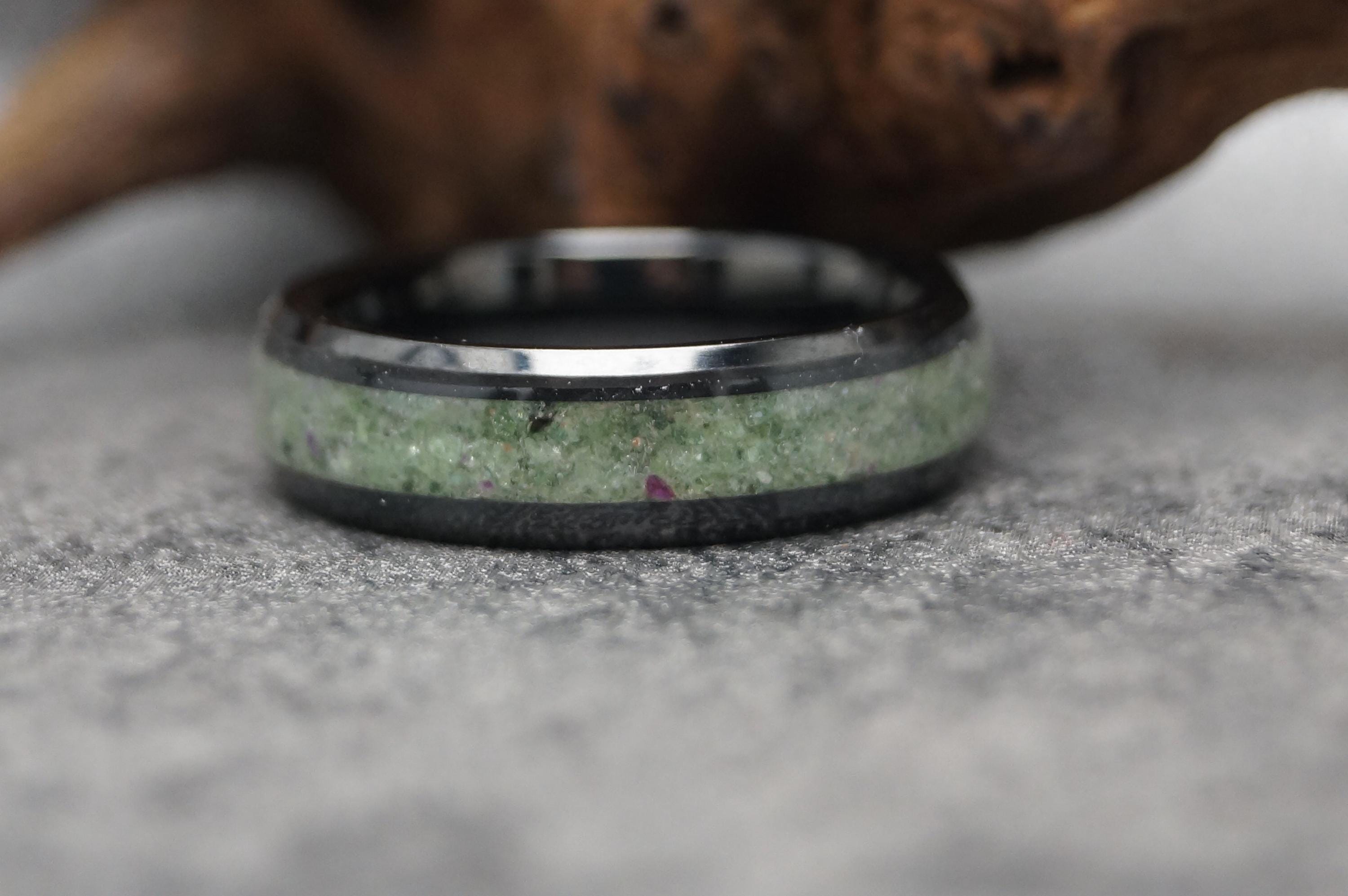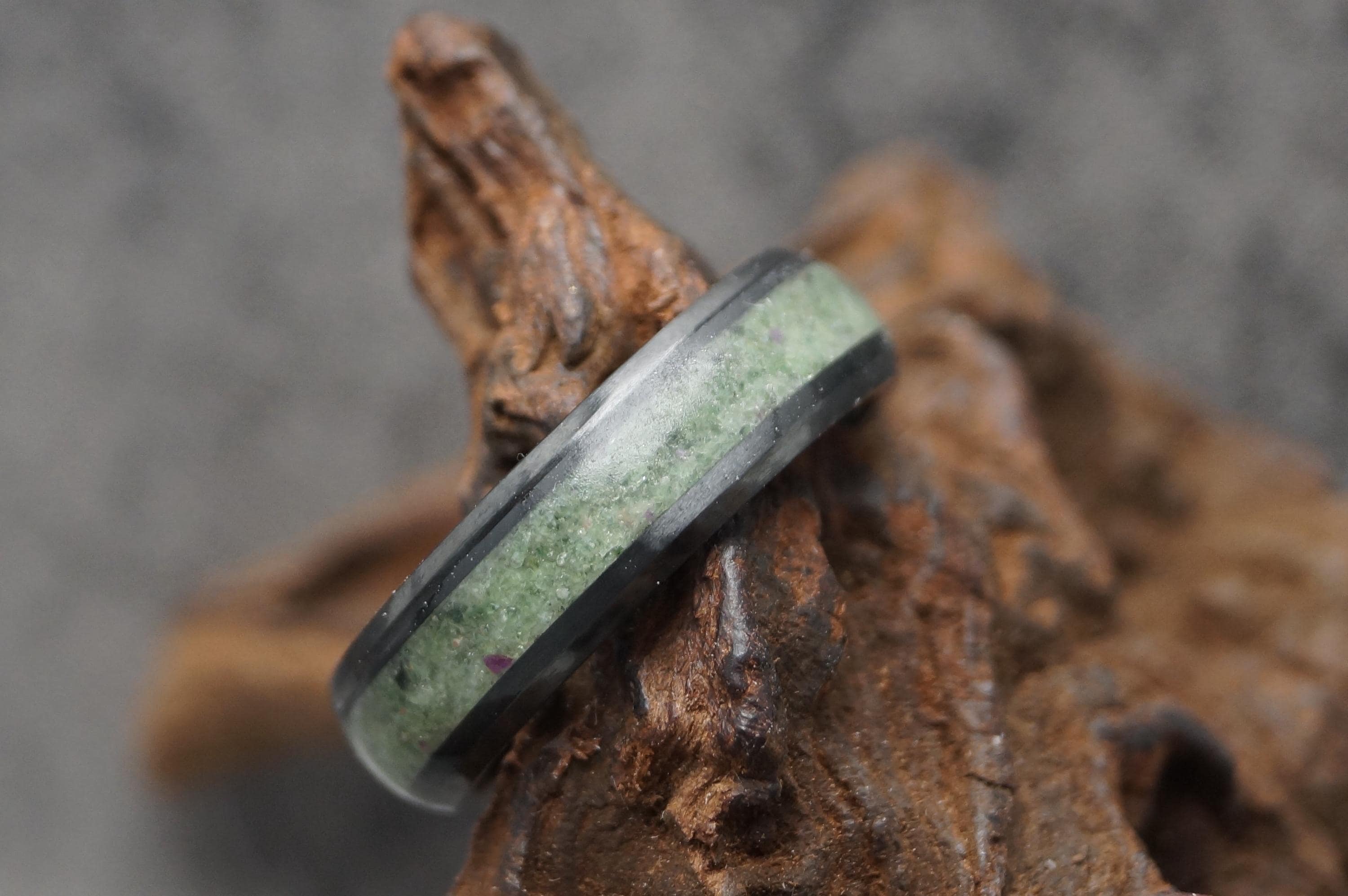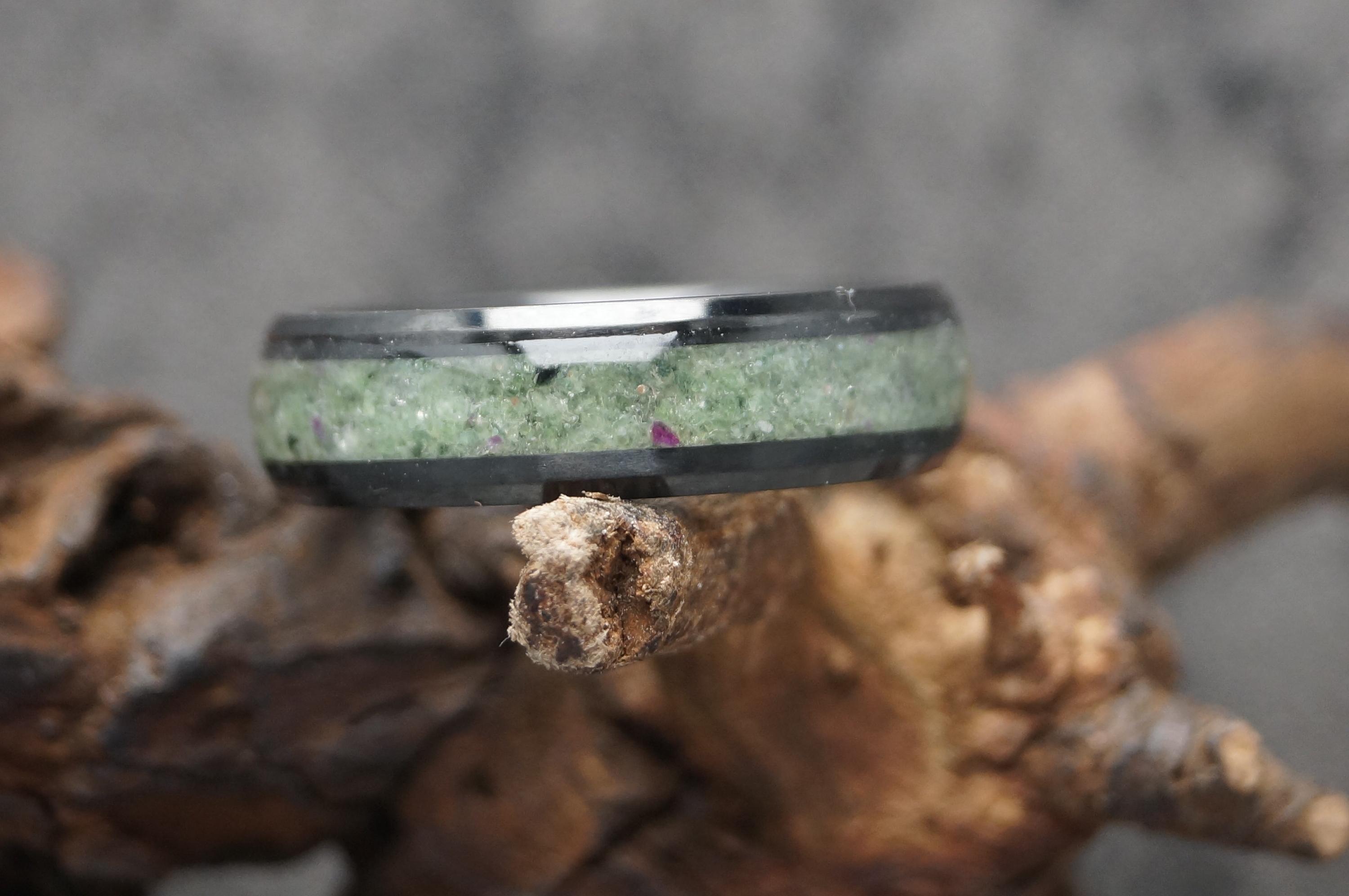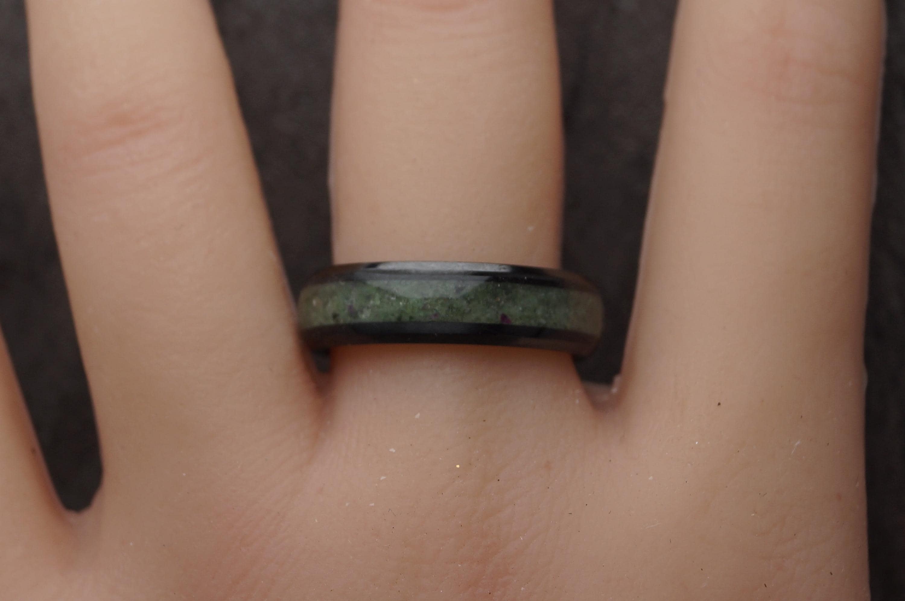 Ruby in Zoisite inlay Black Ceramic Band available 4 mm, 6 mm or 8 mm wide