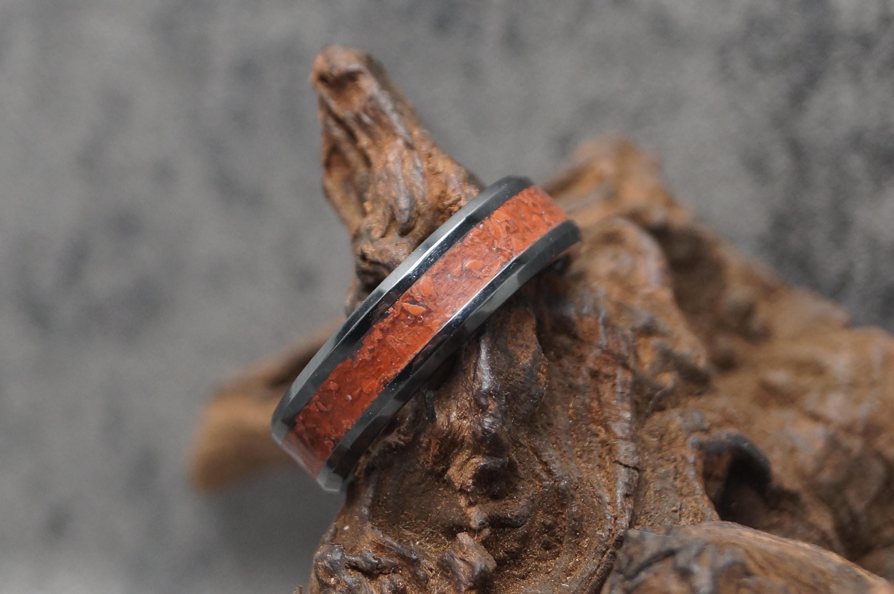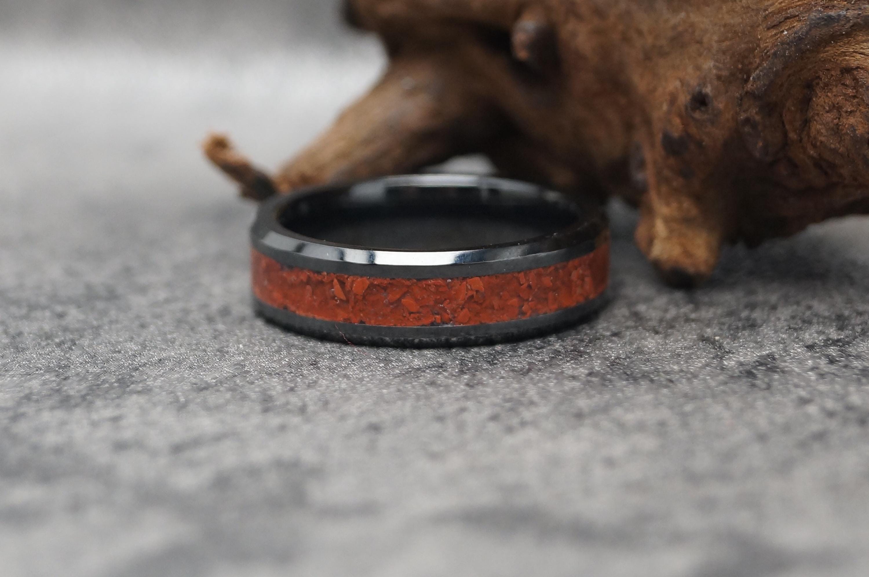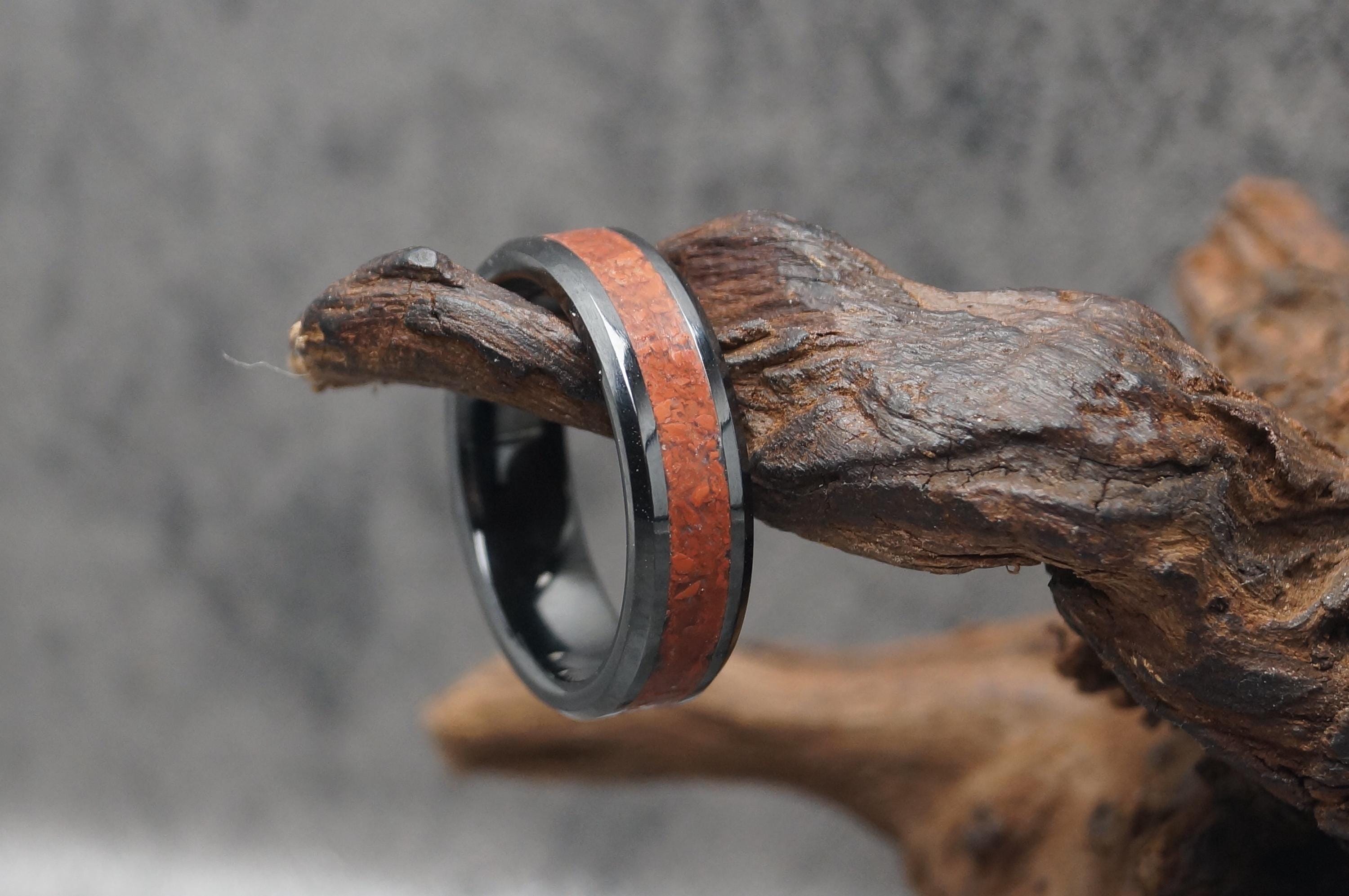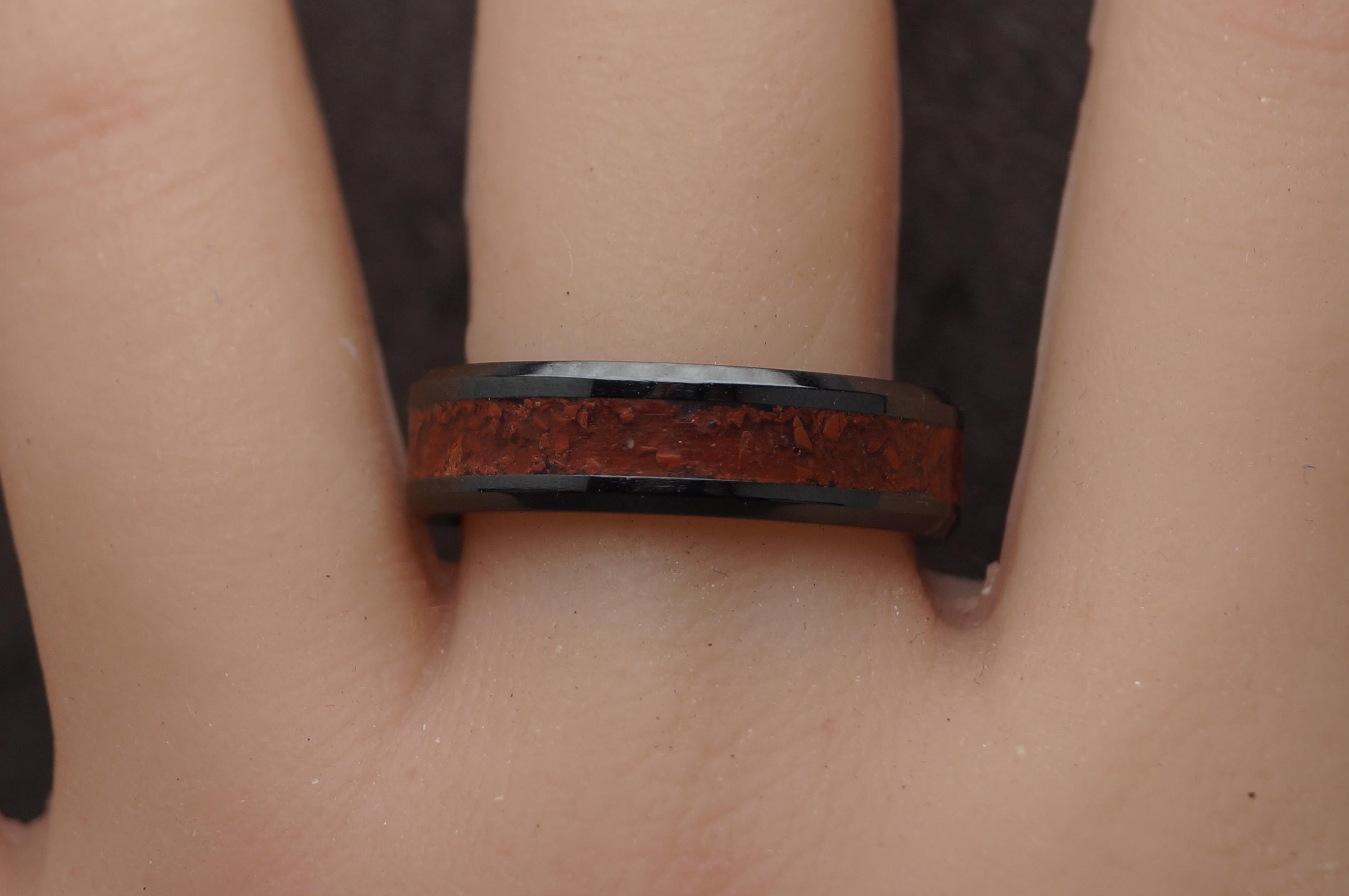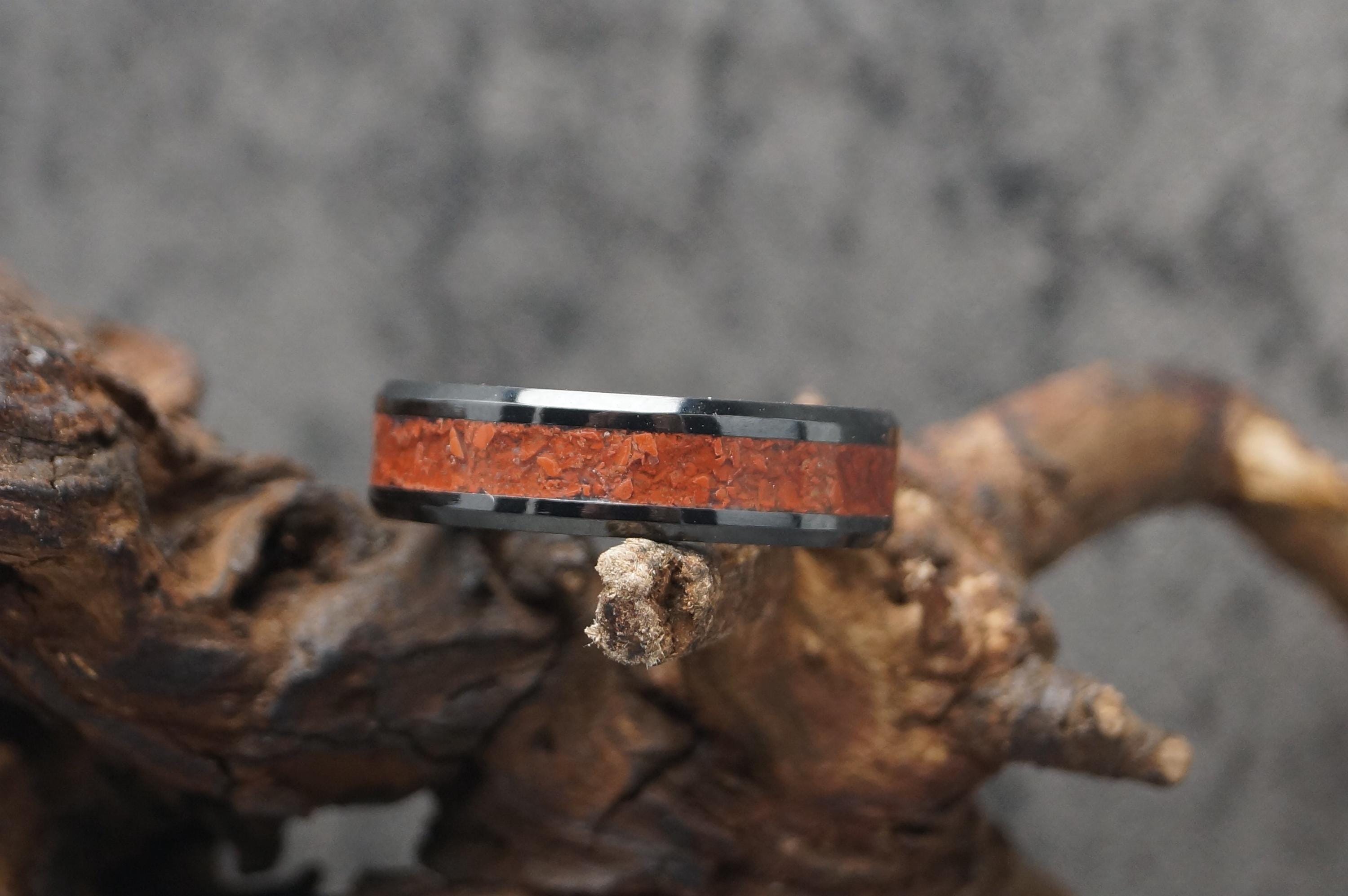 Red Jasper Black Ceramic Wedding Band - Ring for men and women - Unique Ring