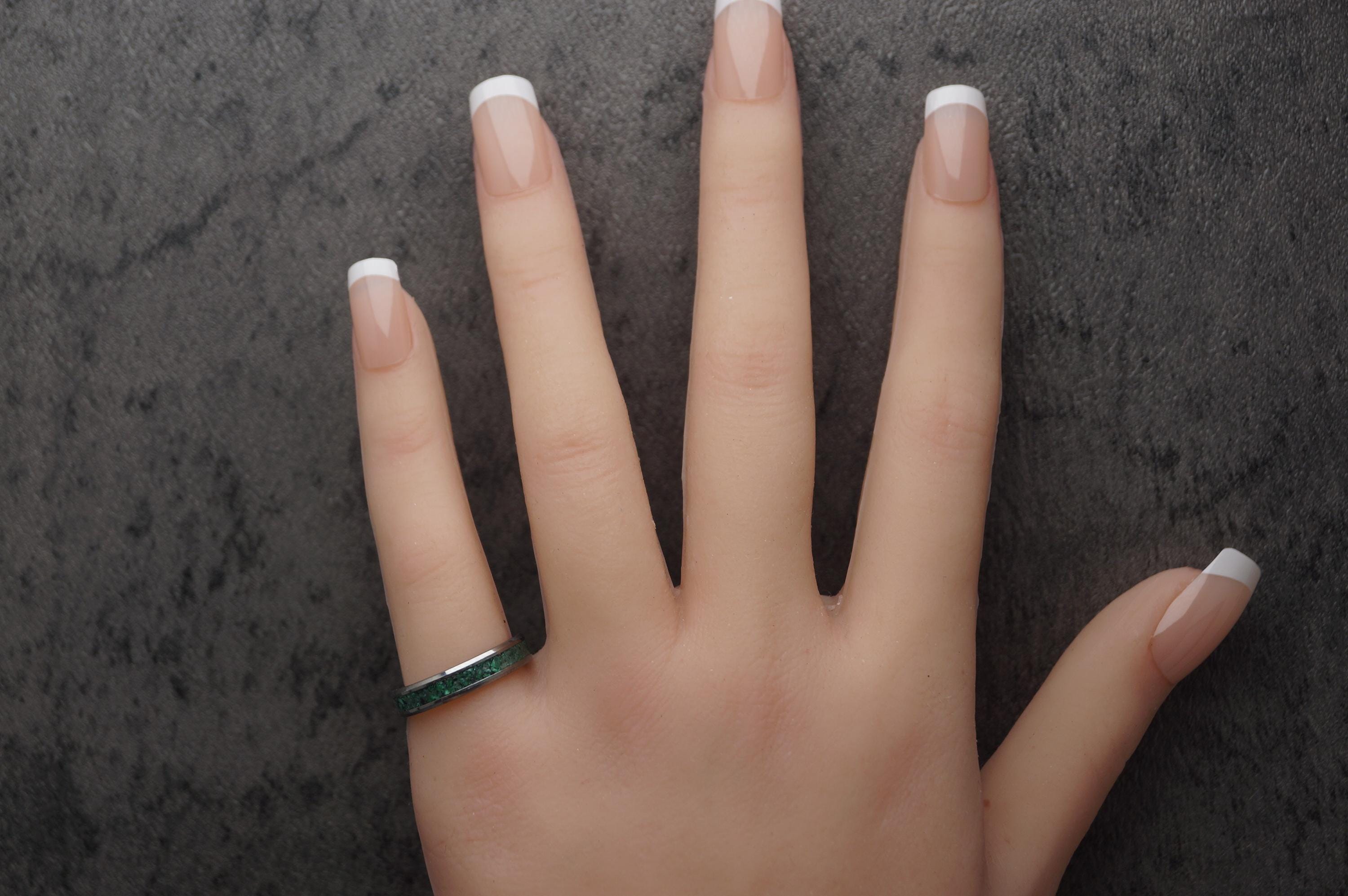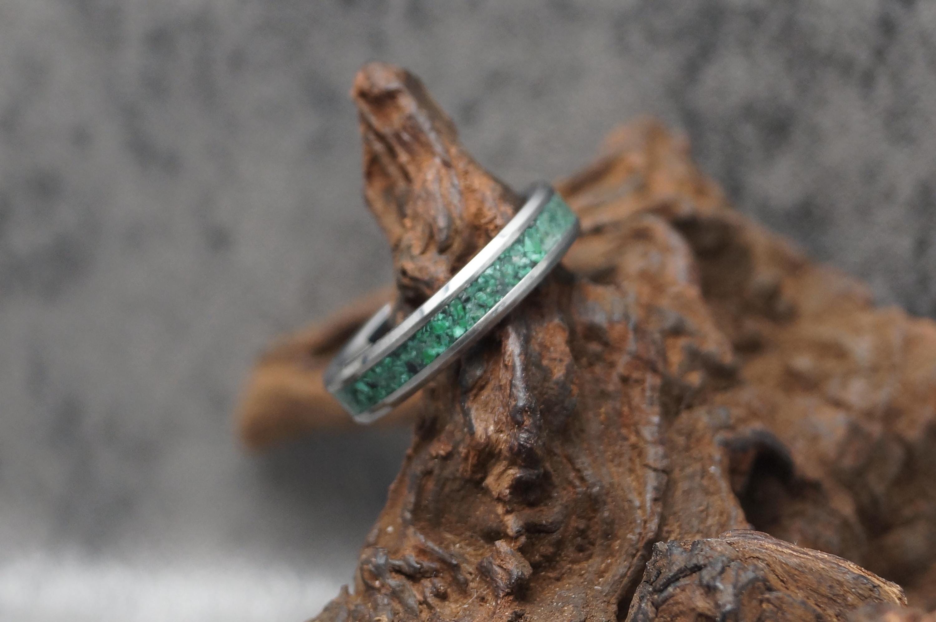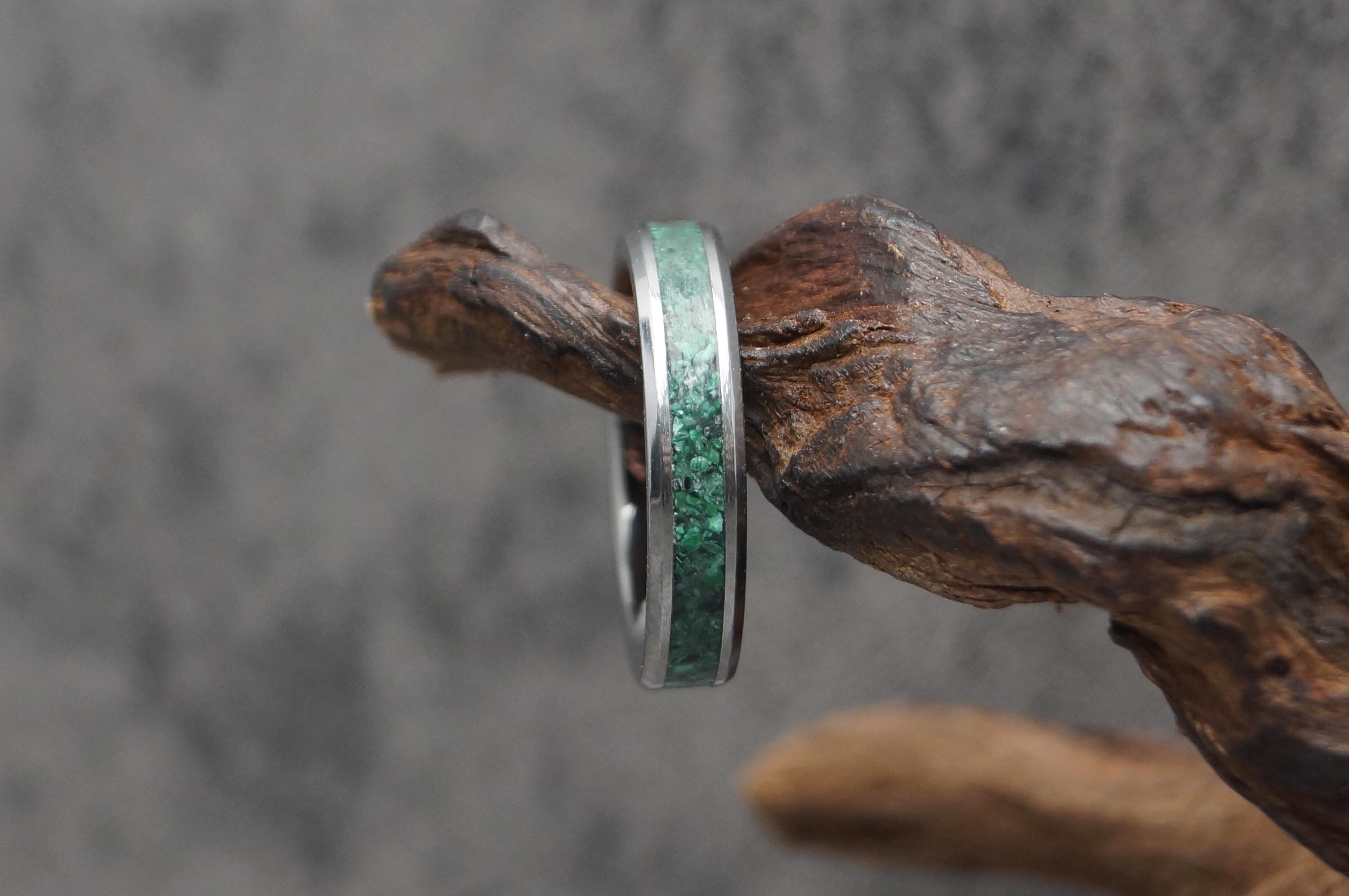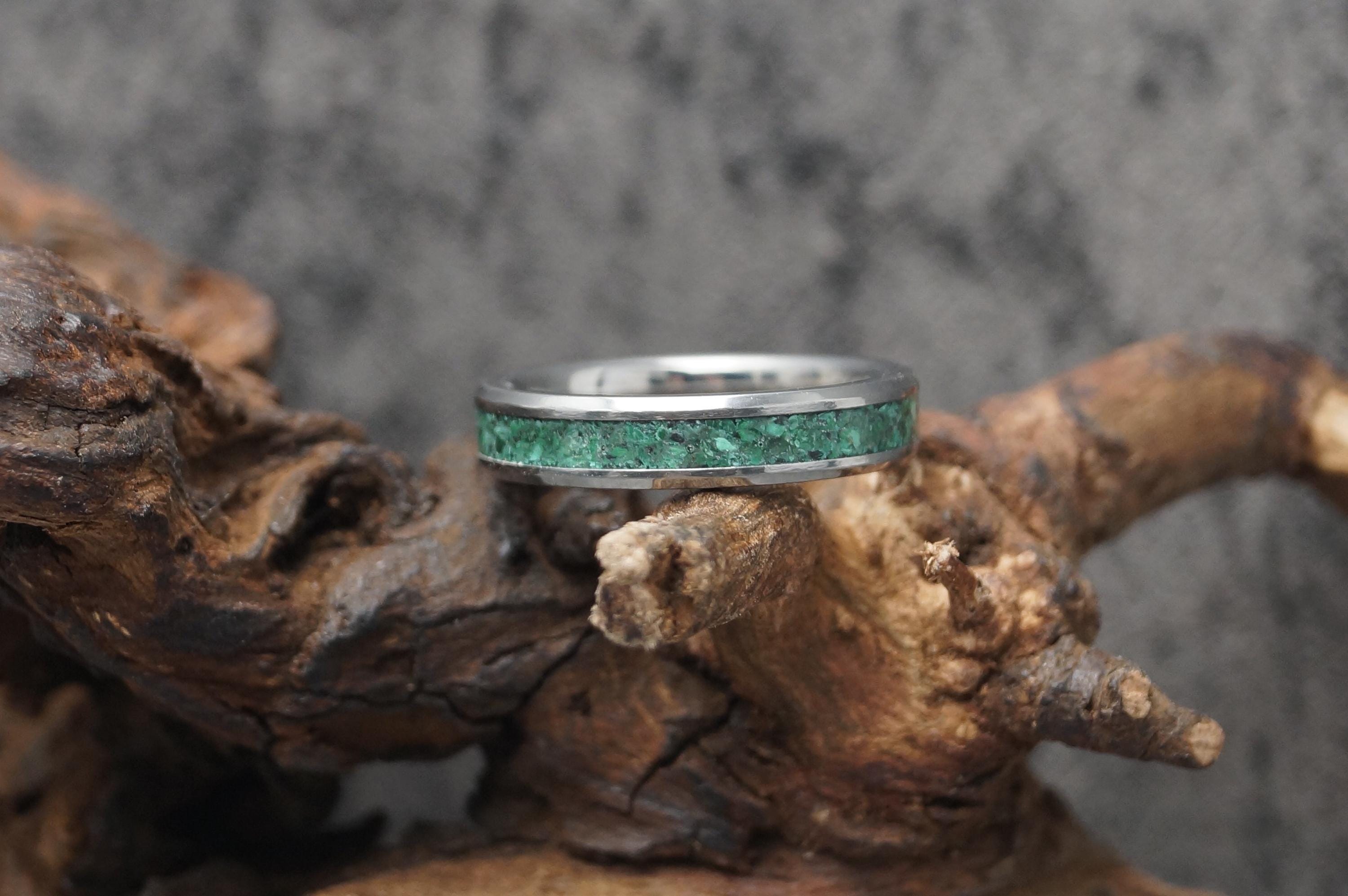 This genuine Tungsten Carbide ring inlaid with 100% Natural Malachite.