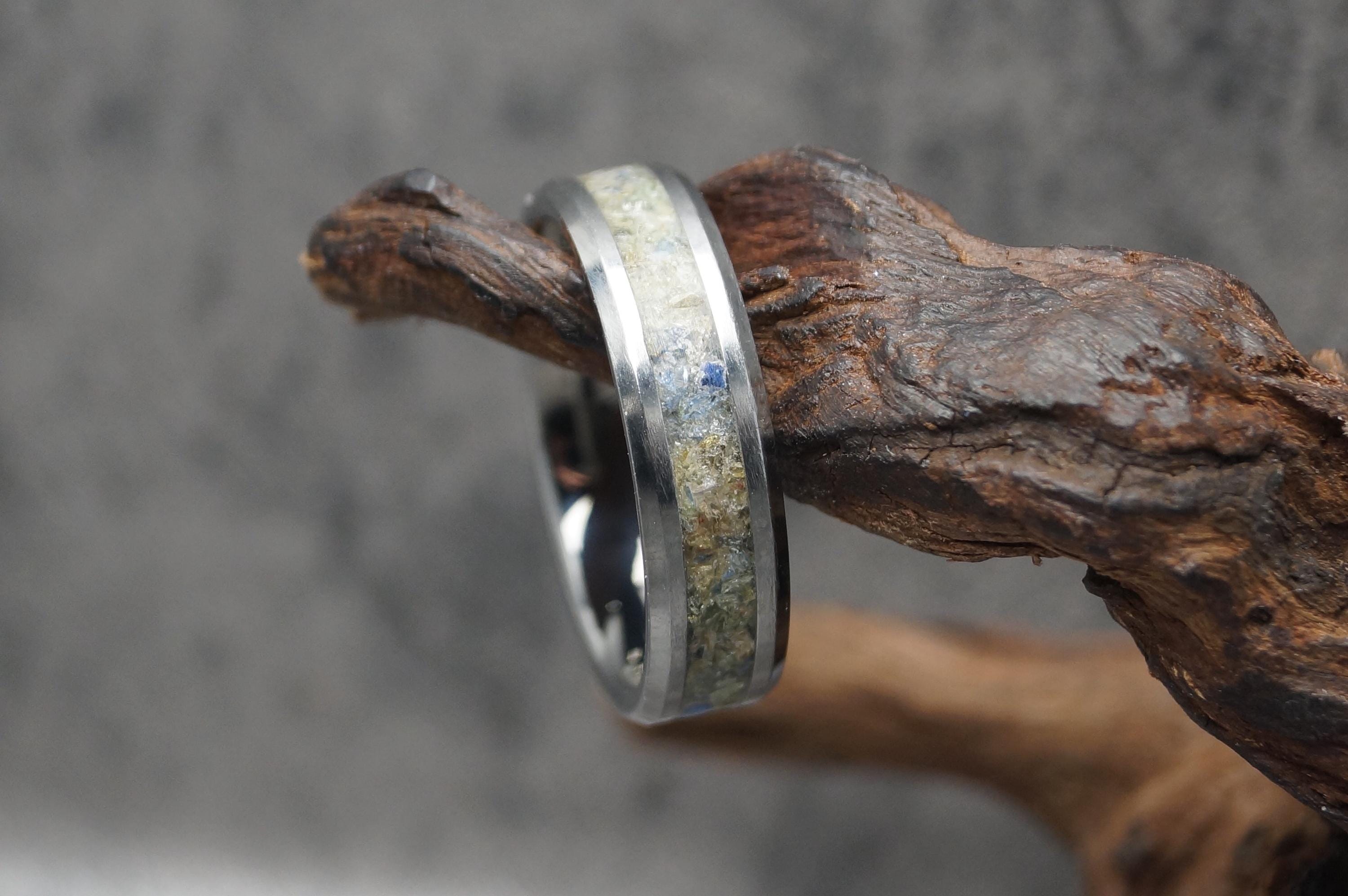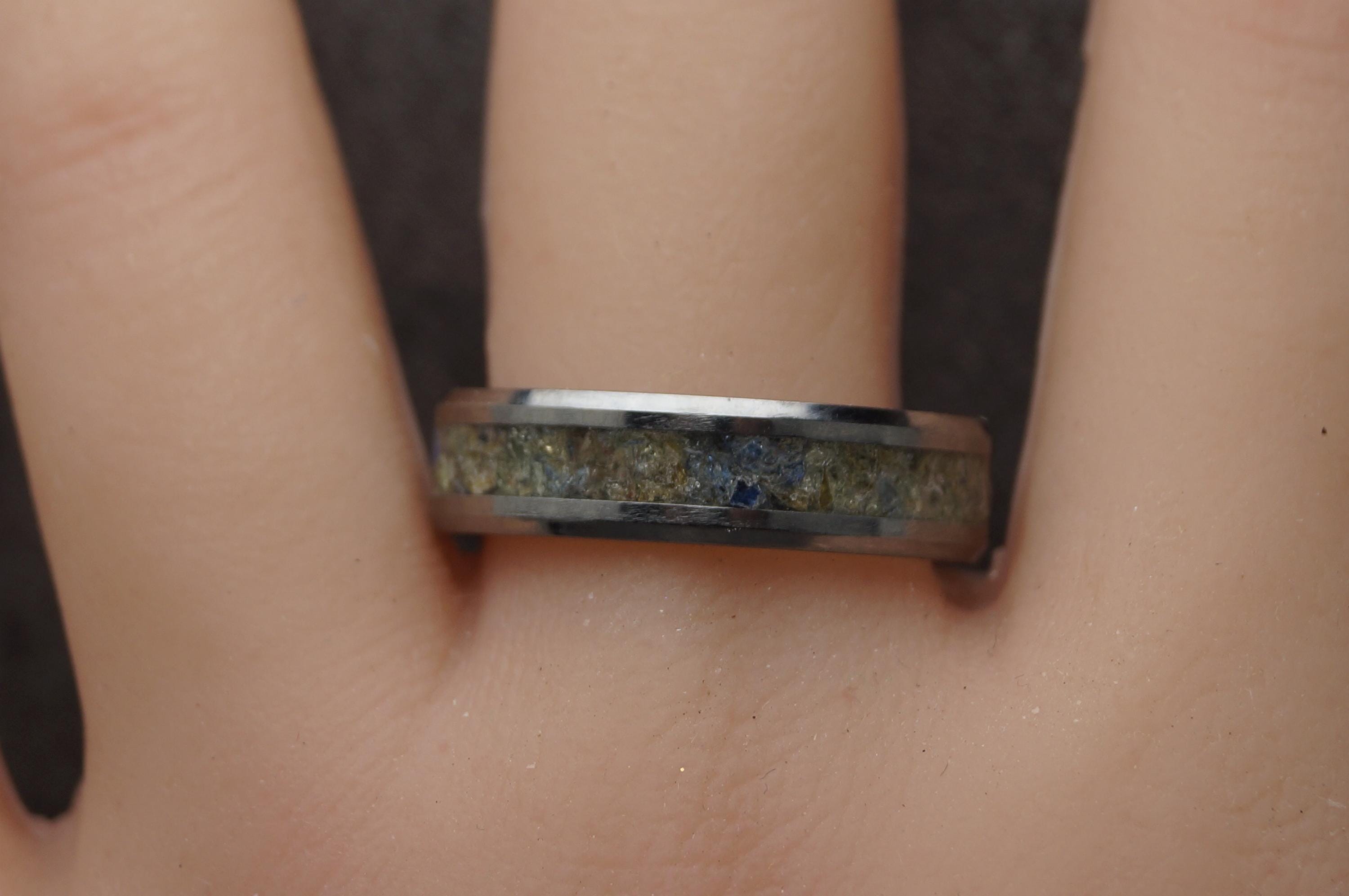 Sea Glass Inlay Black Ceramic Wedding Band available 4 mm, 6 mm or 8 mm wide - Unique ring
