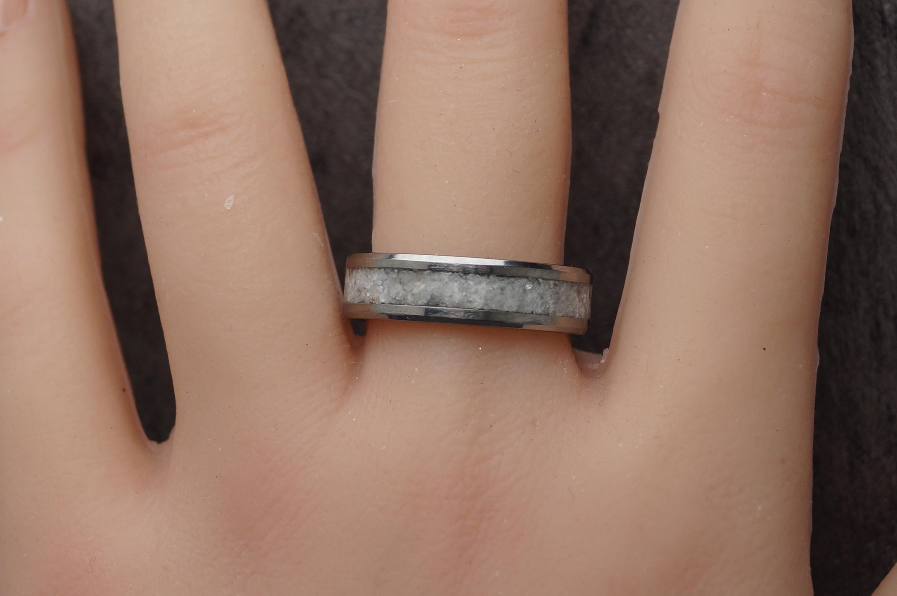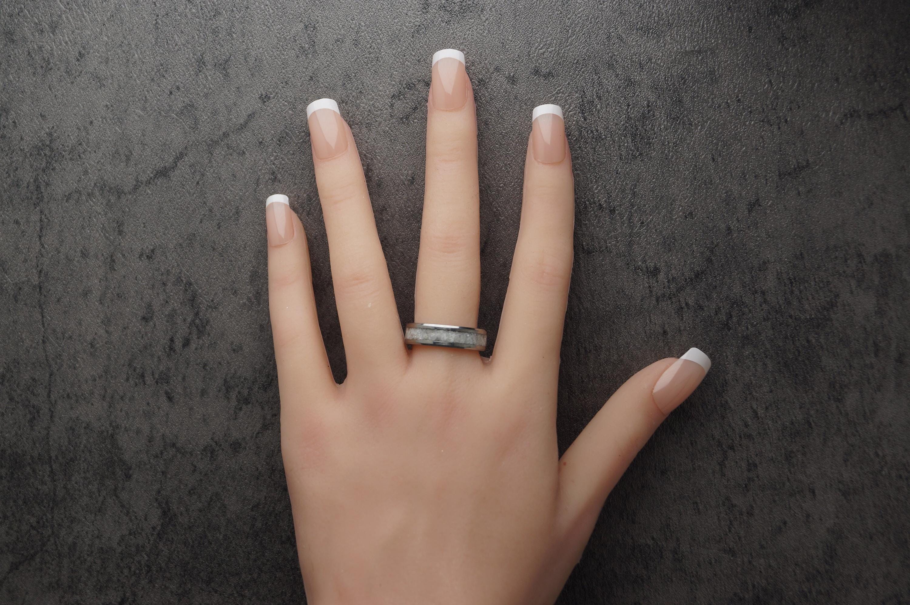Hackmanite Inlay Tungsten Carbide Wedding Band - UV Glow Ring, available 4 mm, 6 mm or 8 mm wide - Unique ring, UV Glow Ring.