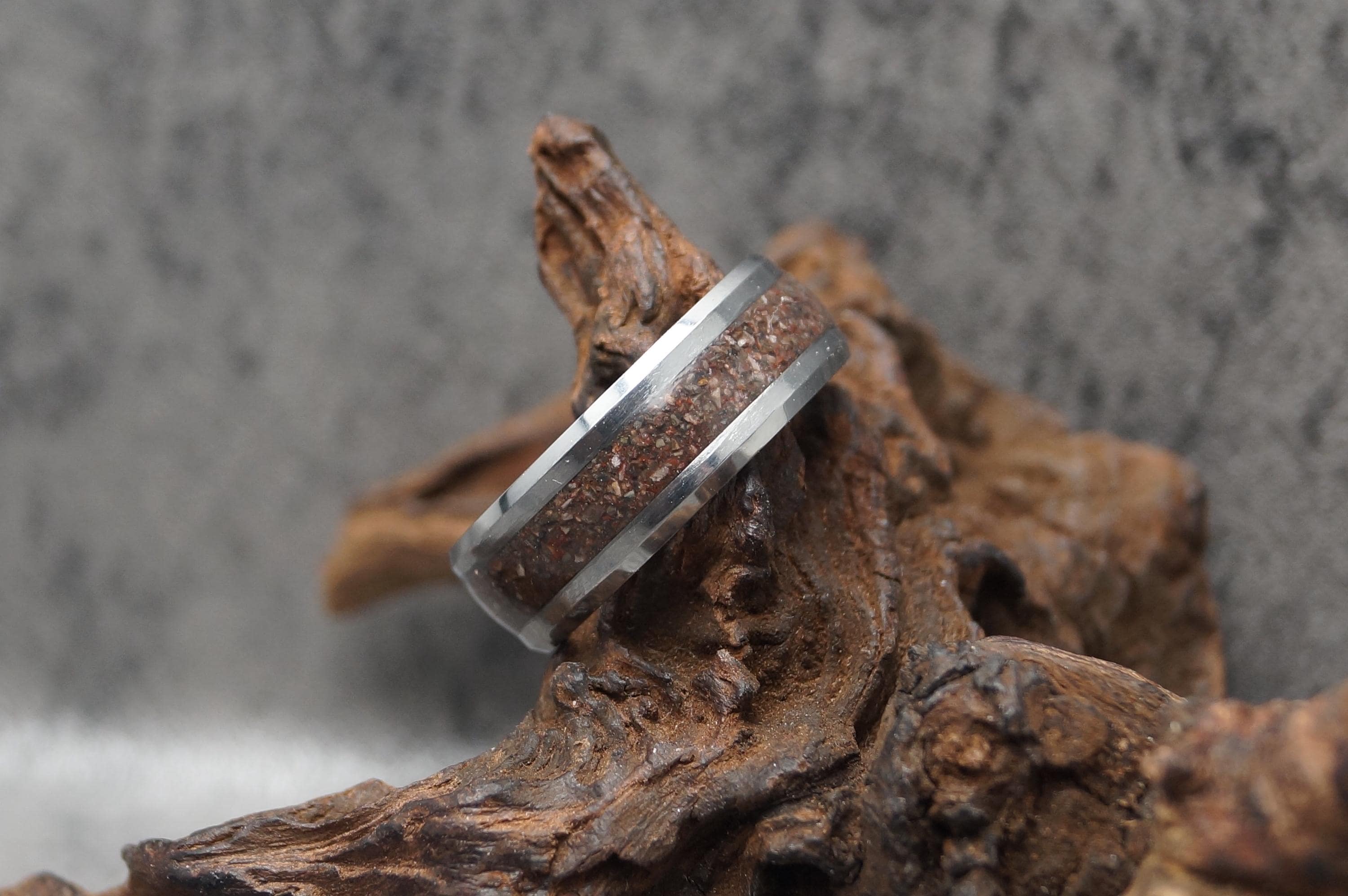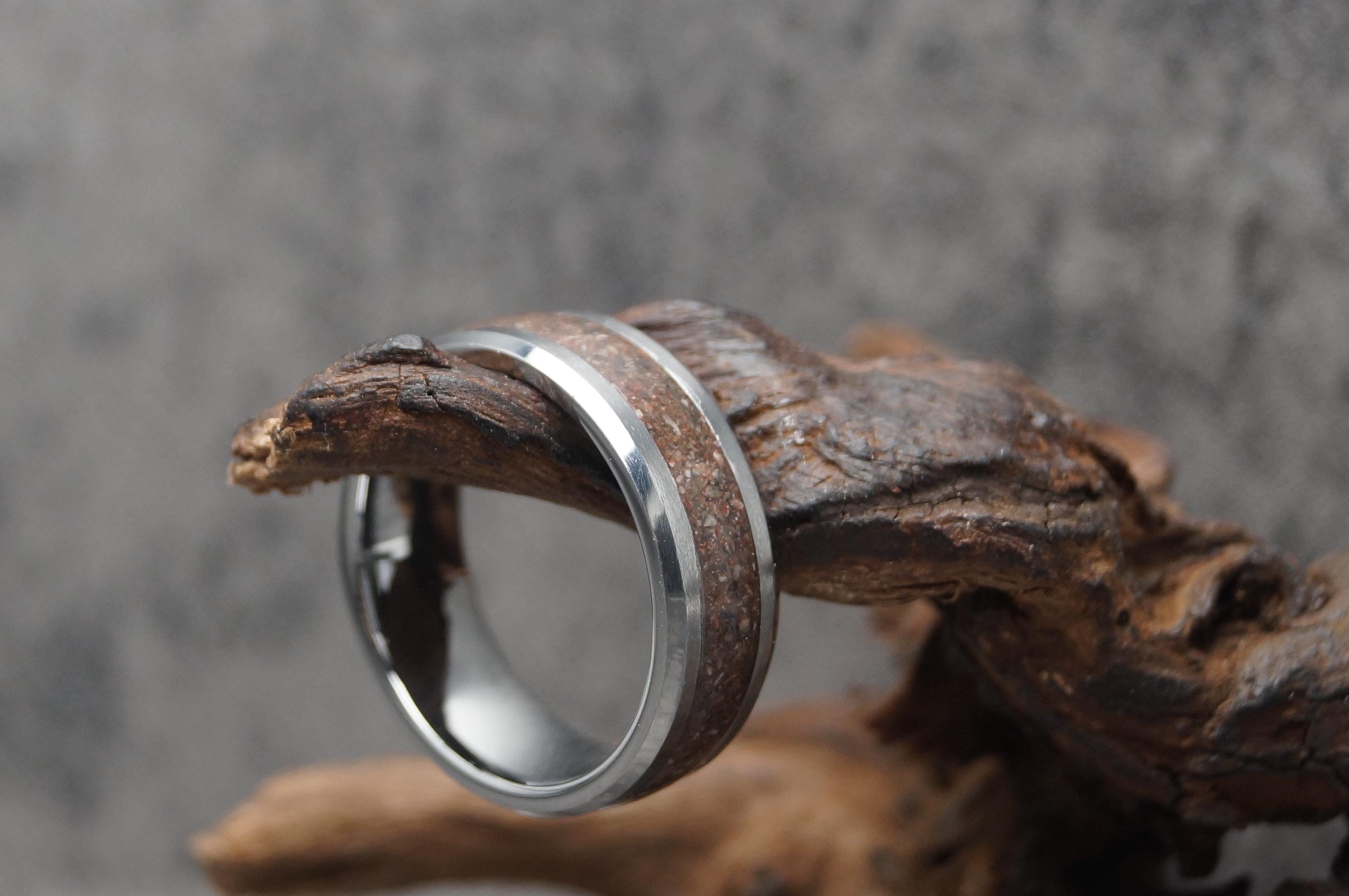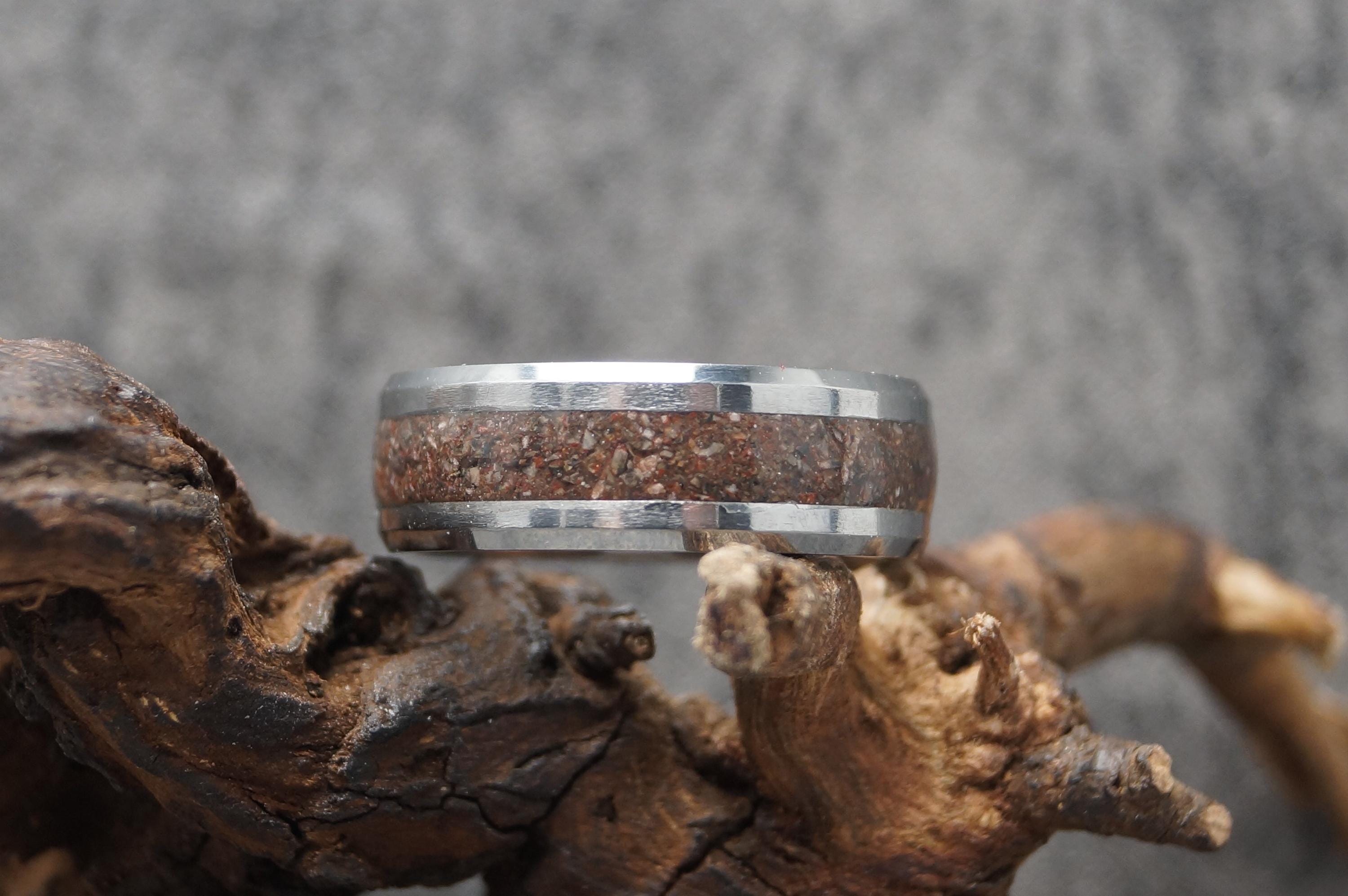 This genuine Tungsten Carbide ring inlaid with 100% Natural Rhodonite