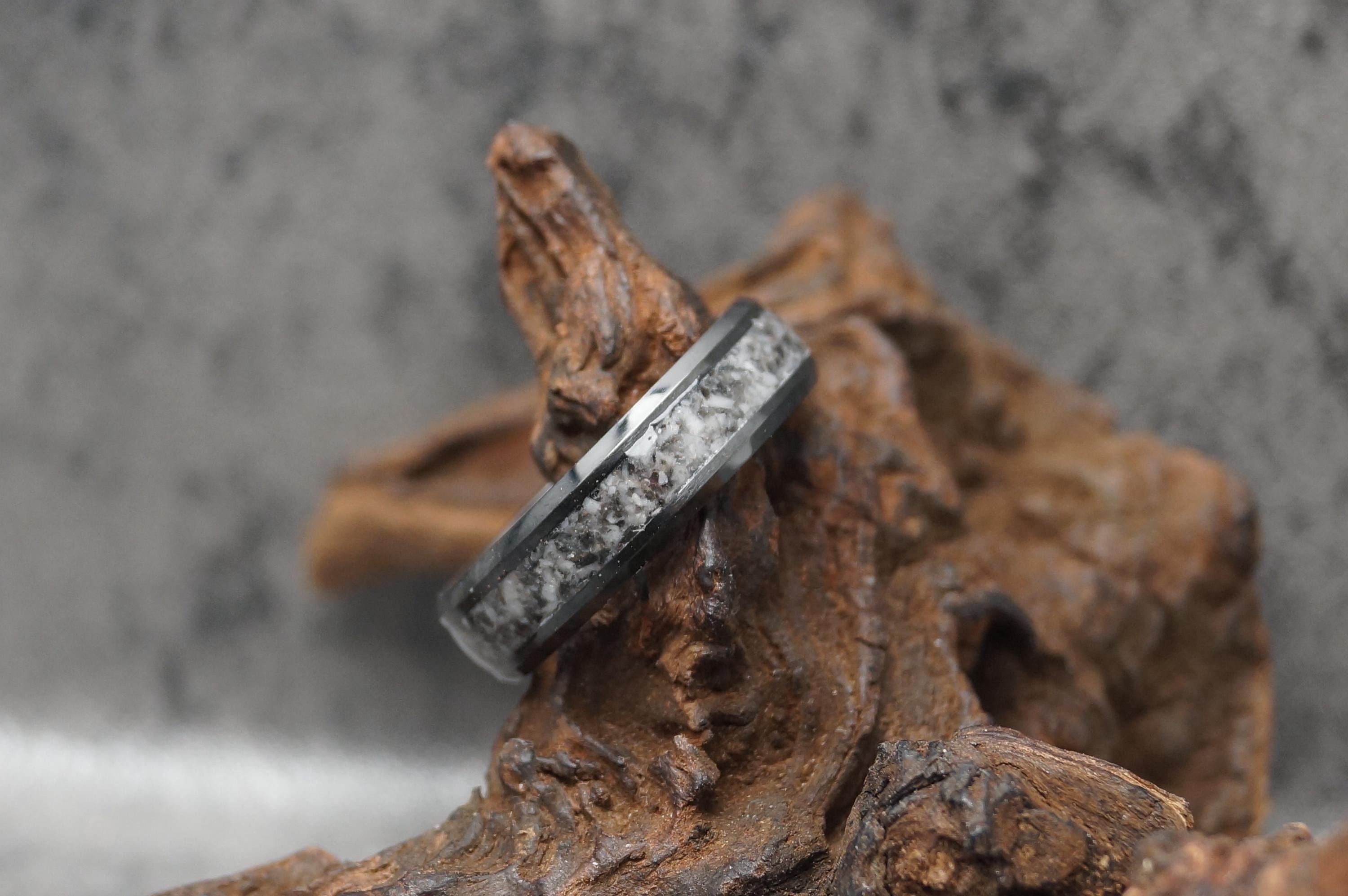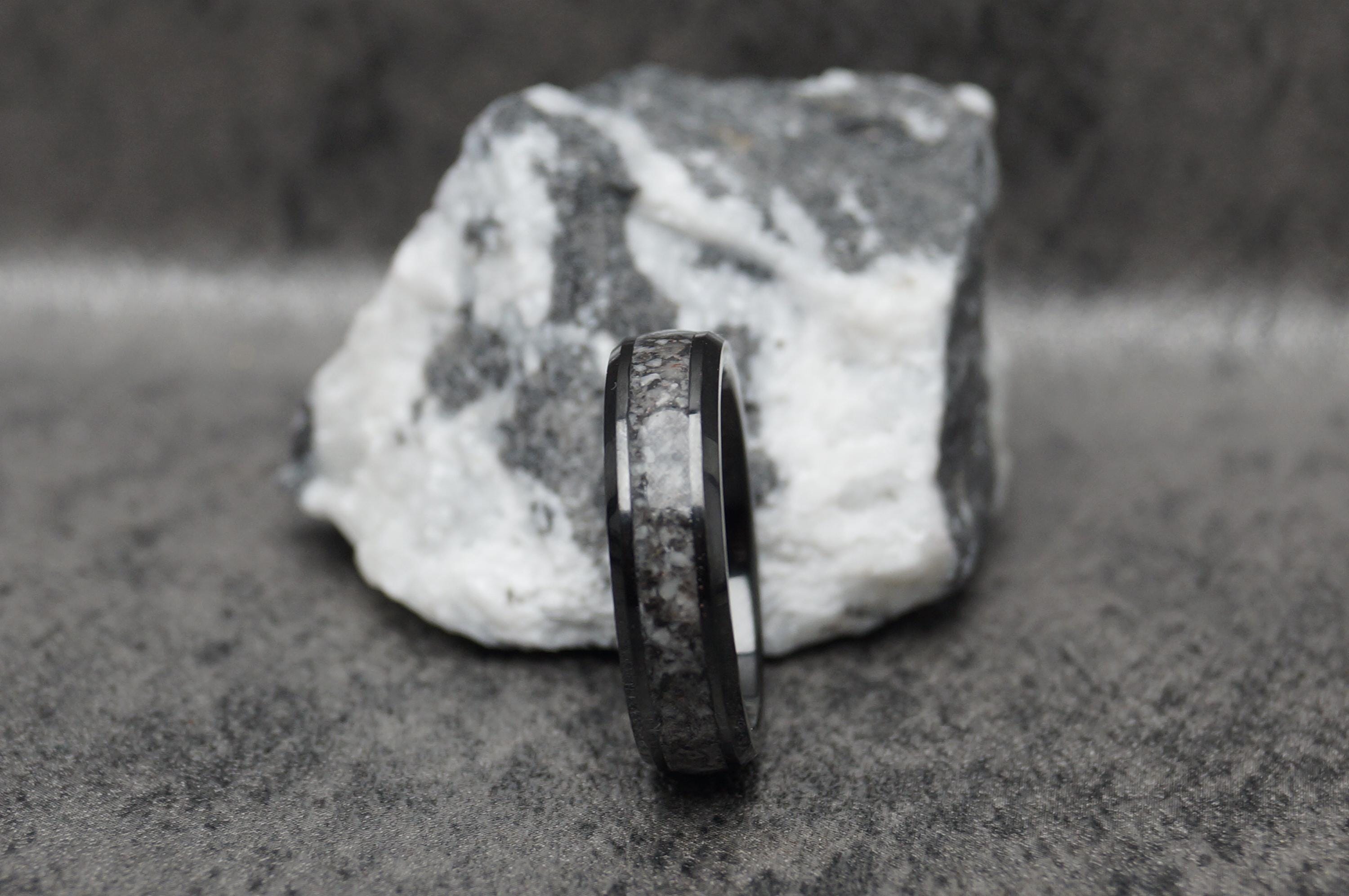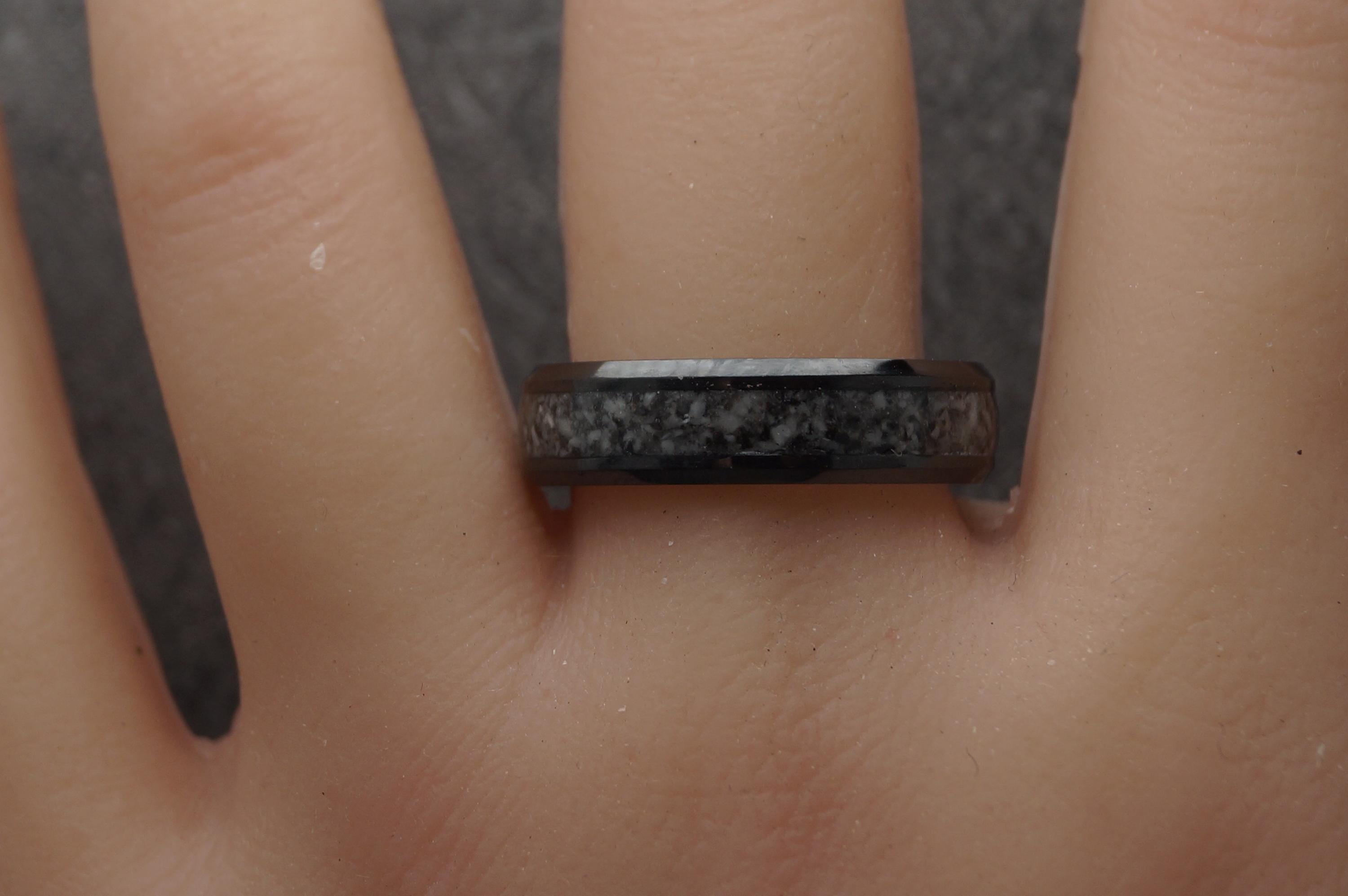 Zebra Calcite (or Zebra Jasper) Black Ceramic Ring - available 4 mm, 6 mm or 8 mm wide ring - wedding band Tungsten Inlaid Ring