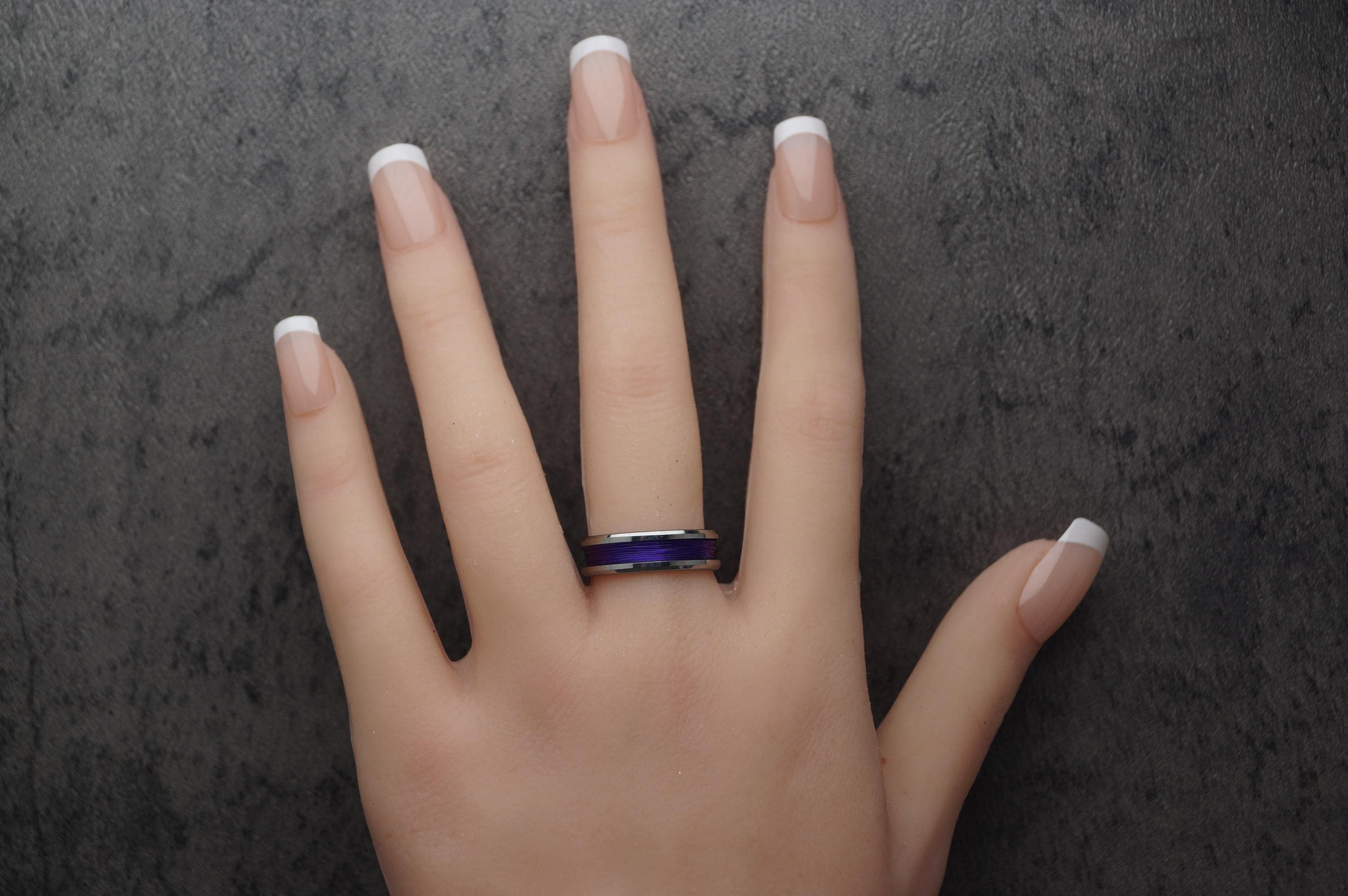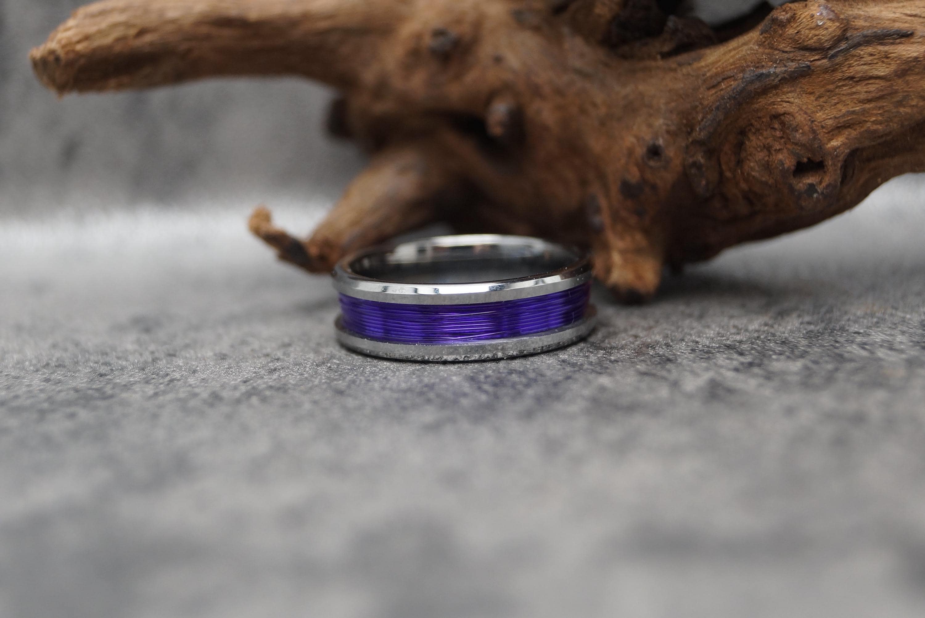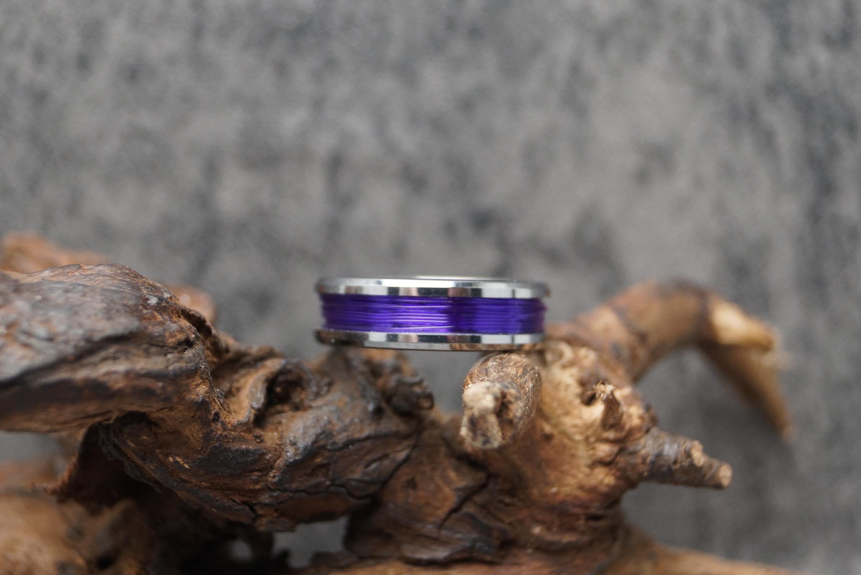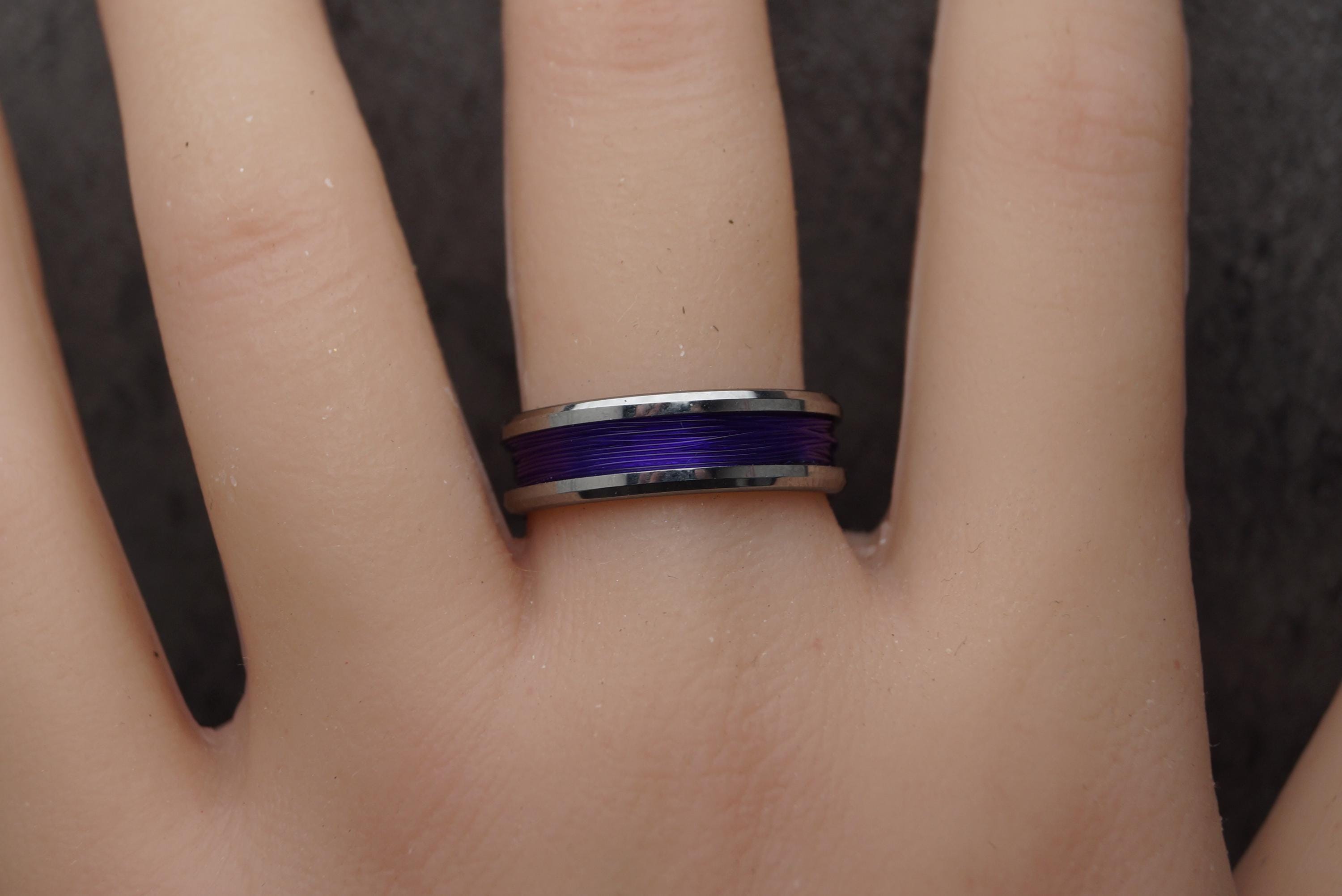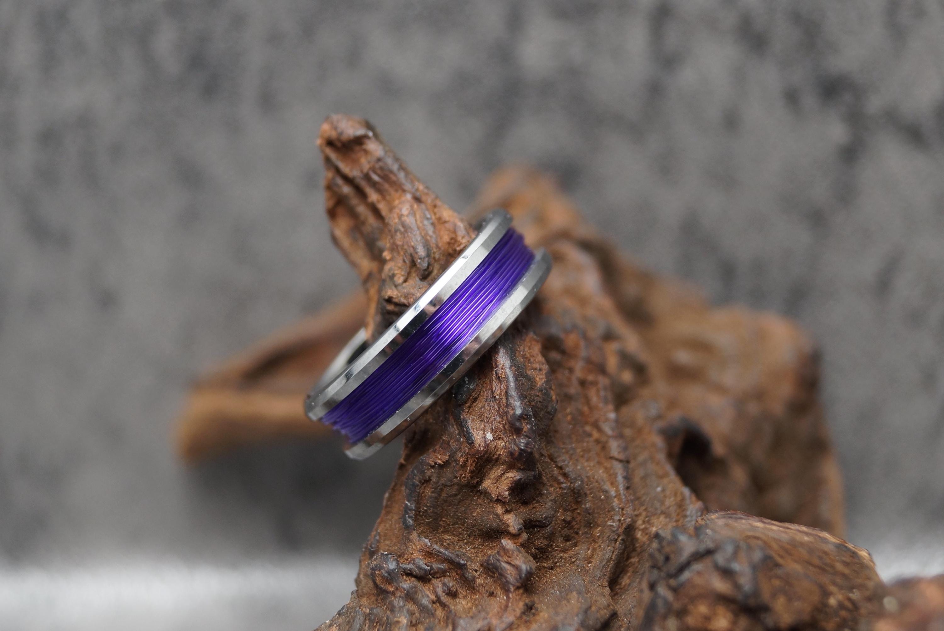 This genuine Tungsten Carbide ring is inlaid with genuine Purple Fishing Line.