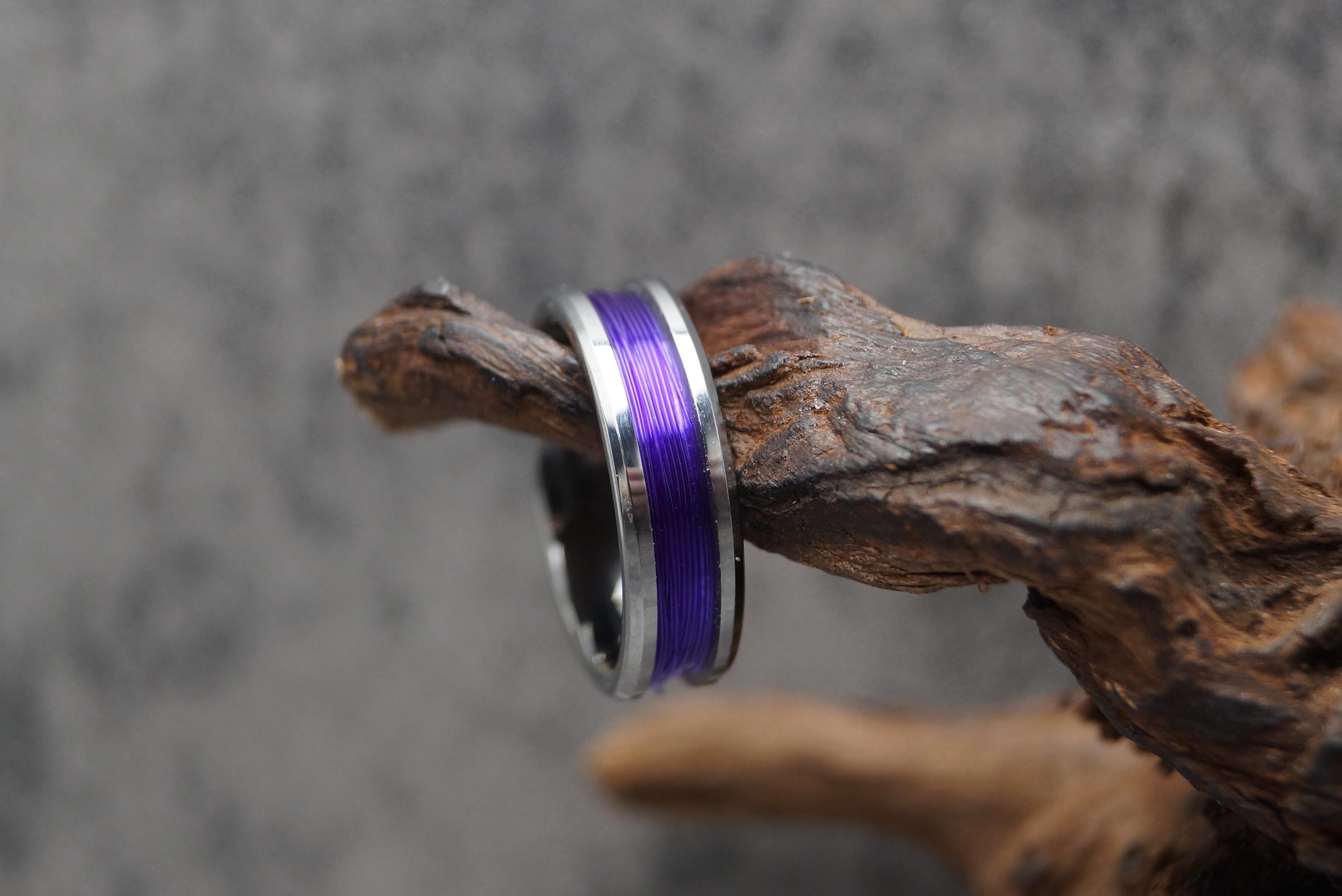 Tungsten Ring with Purple Fishing Line Inlay - Available 4mm, 6mm or 8mm wide.