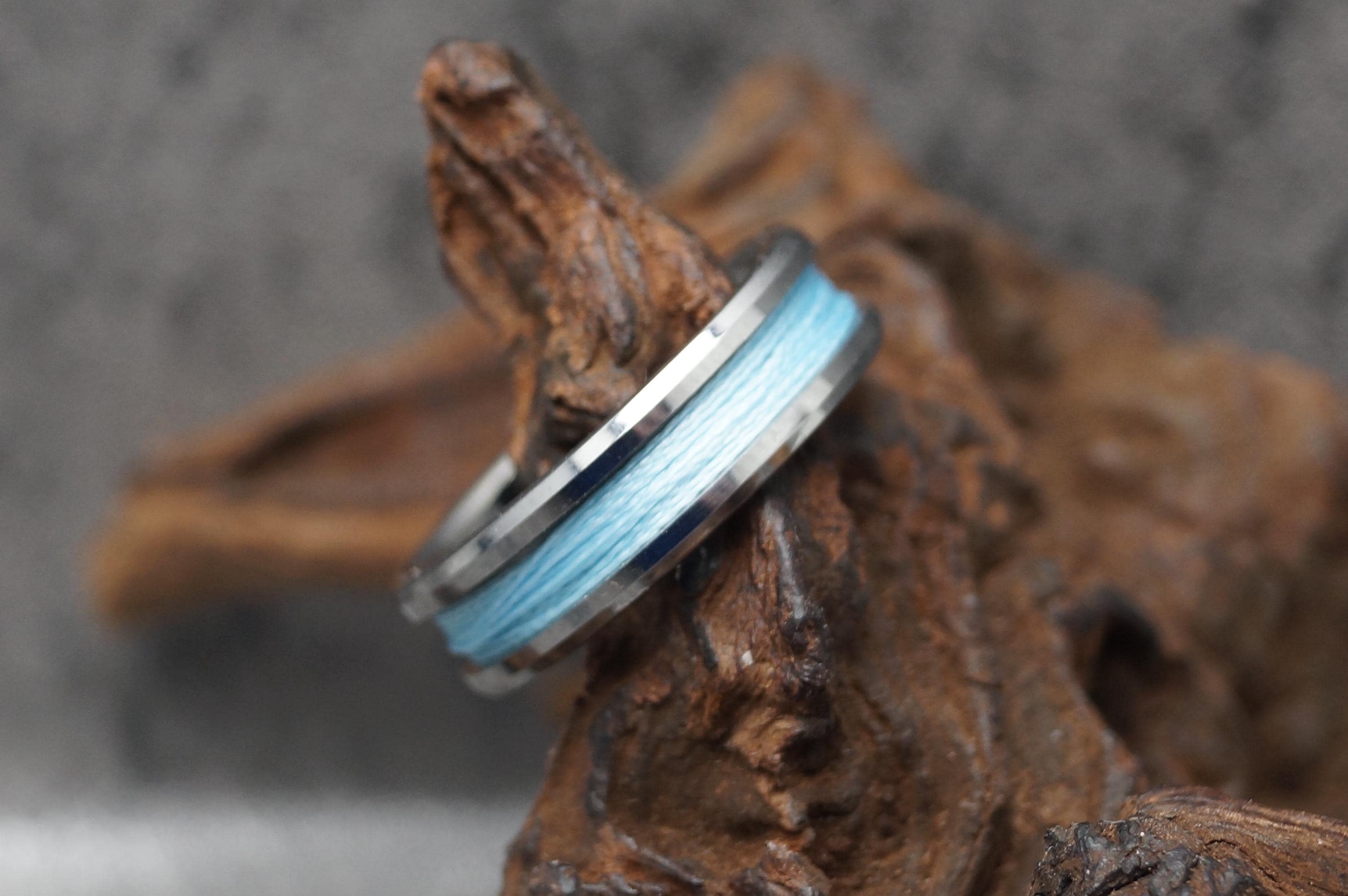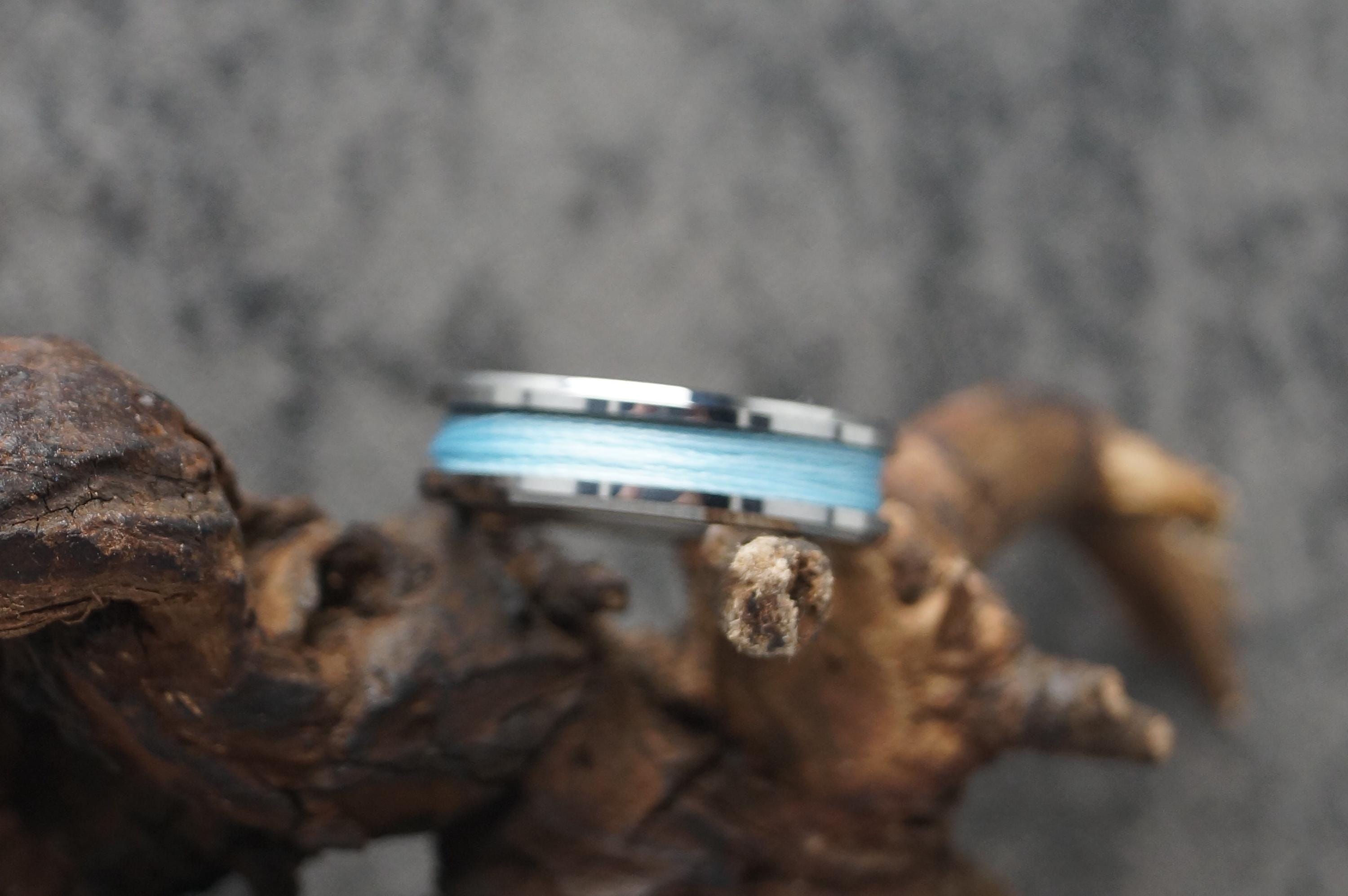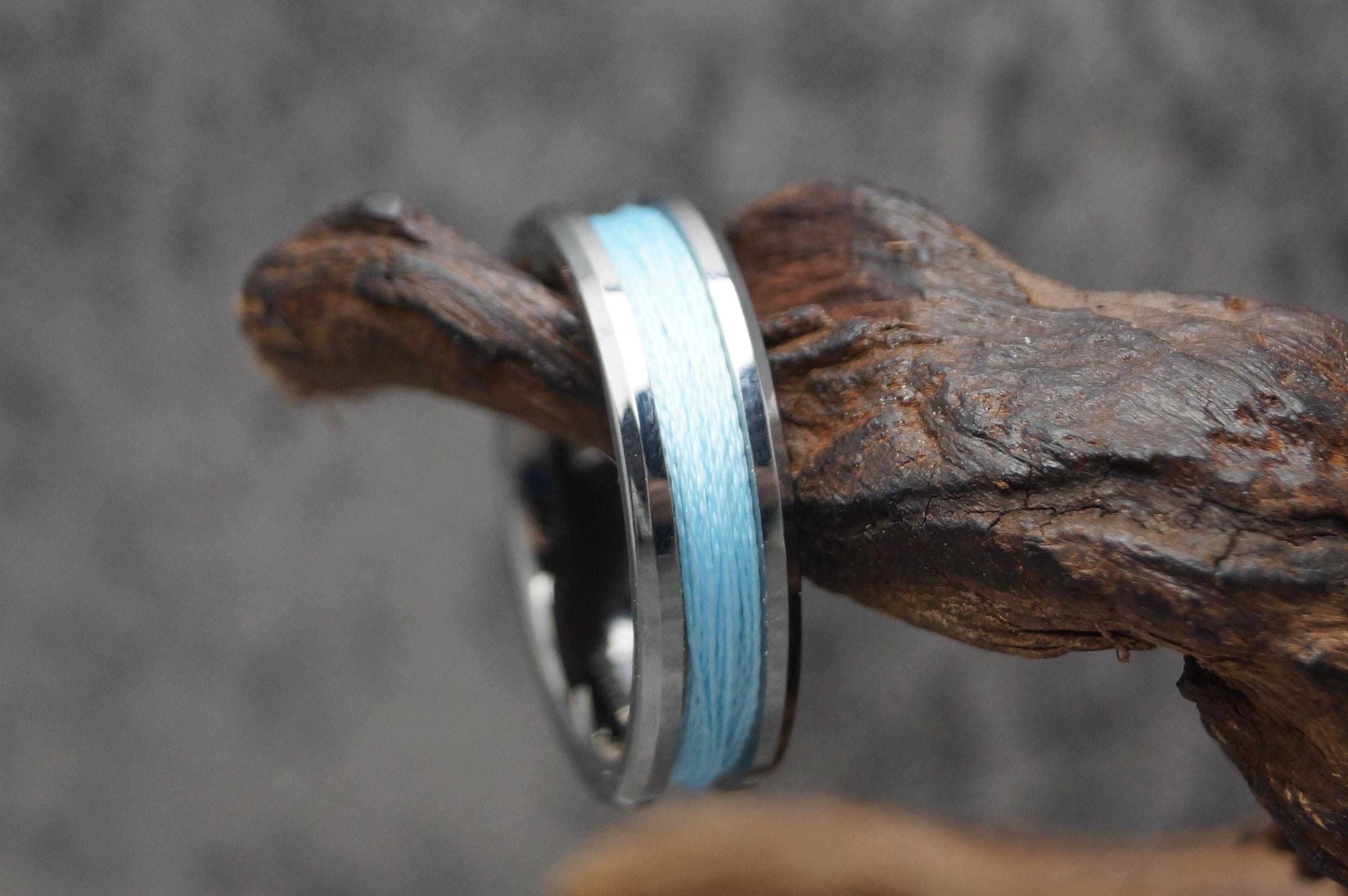 Tungsten Ring with Sky Blue Fishing Line Inlay - Available 4mm, 6mm or 8mm wide.