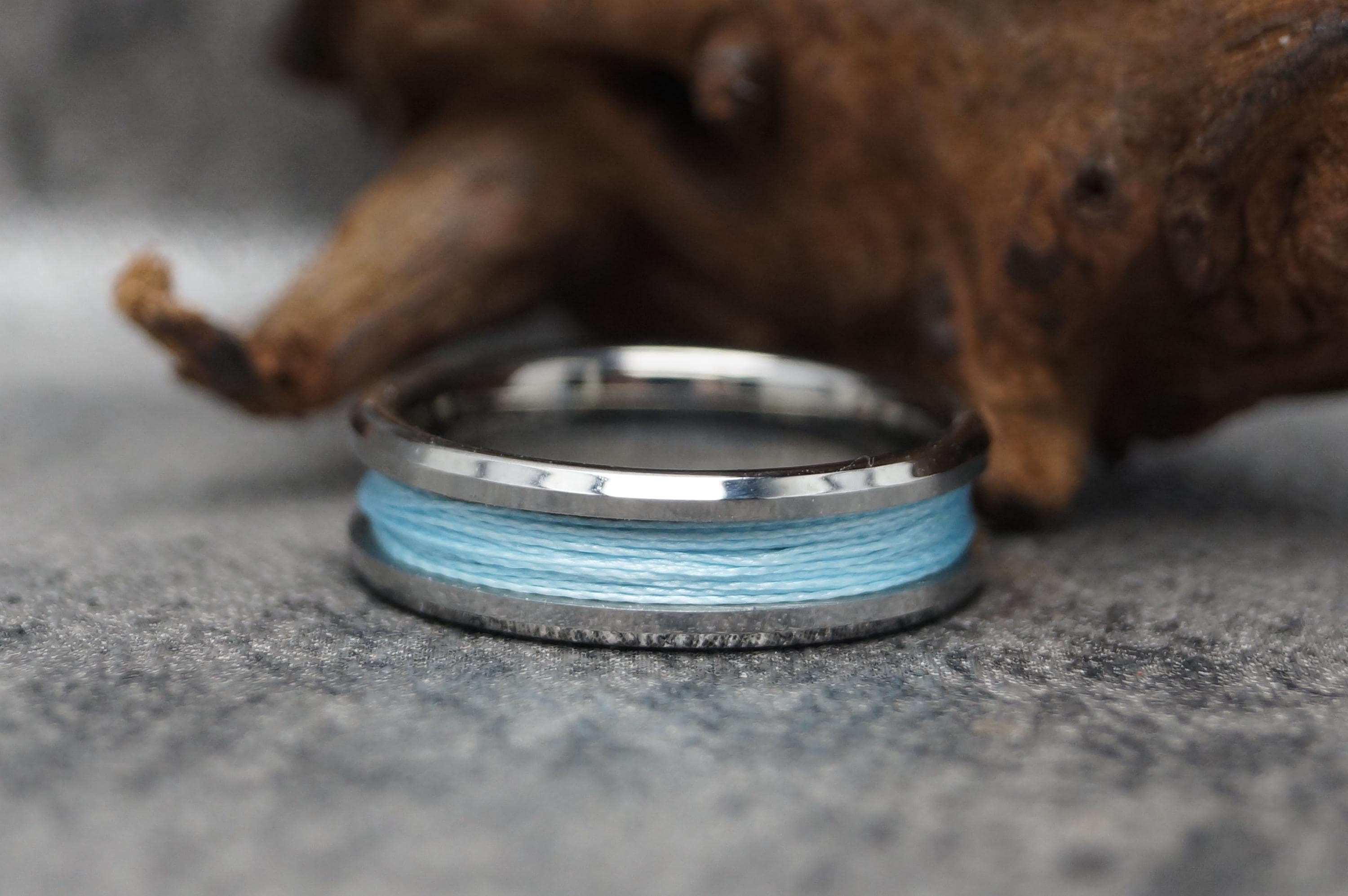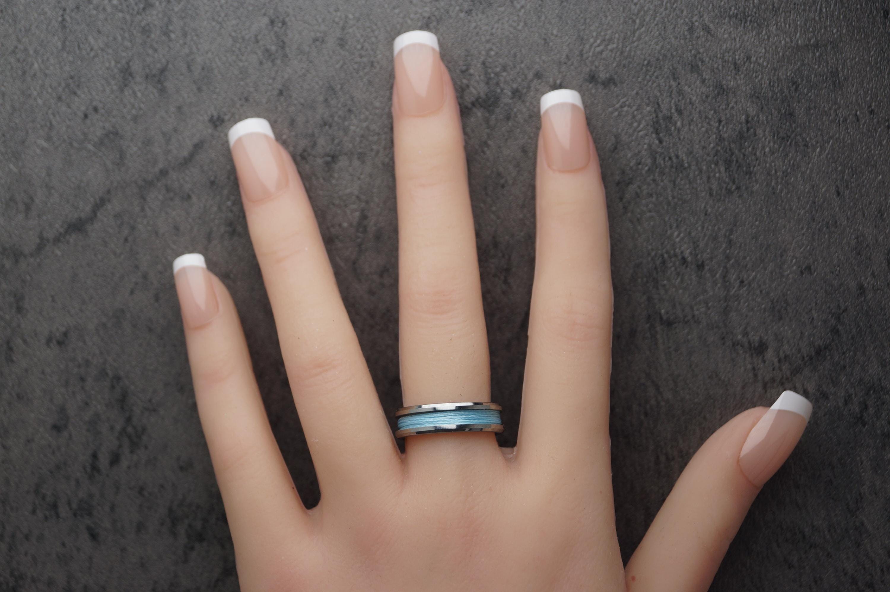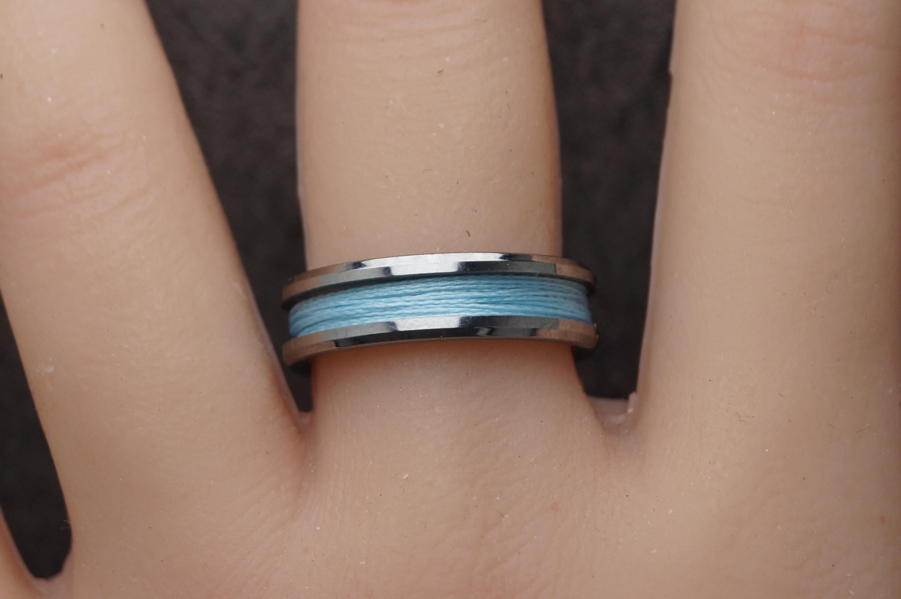 Tungsten Ring with Sky Blue Fishing Line Inlay - Available 4mm, 6mm or 8mm wide.