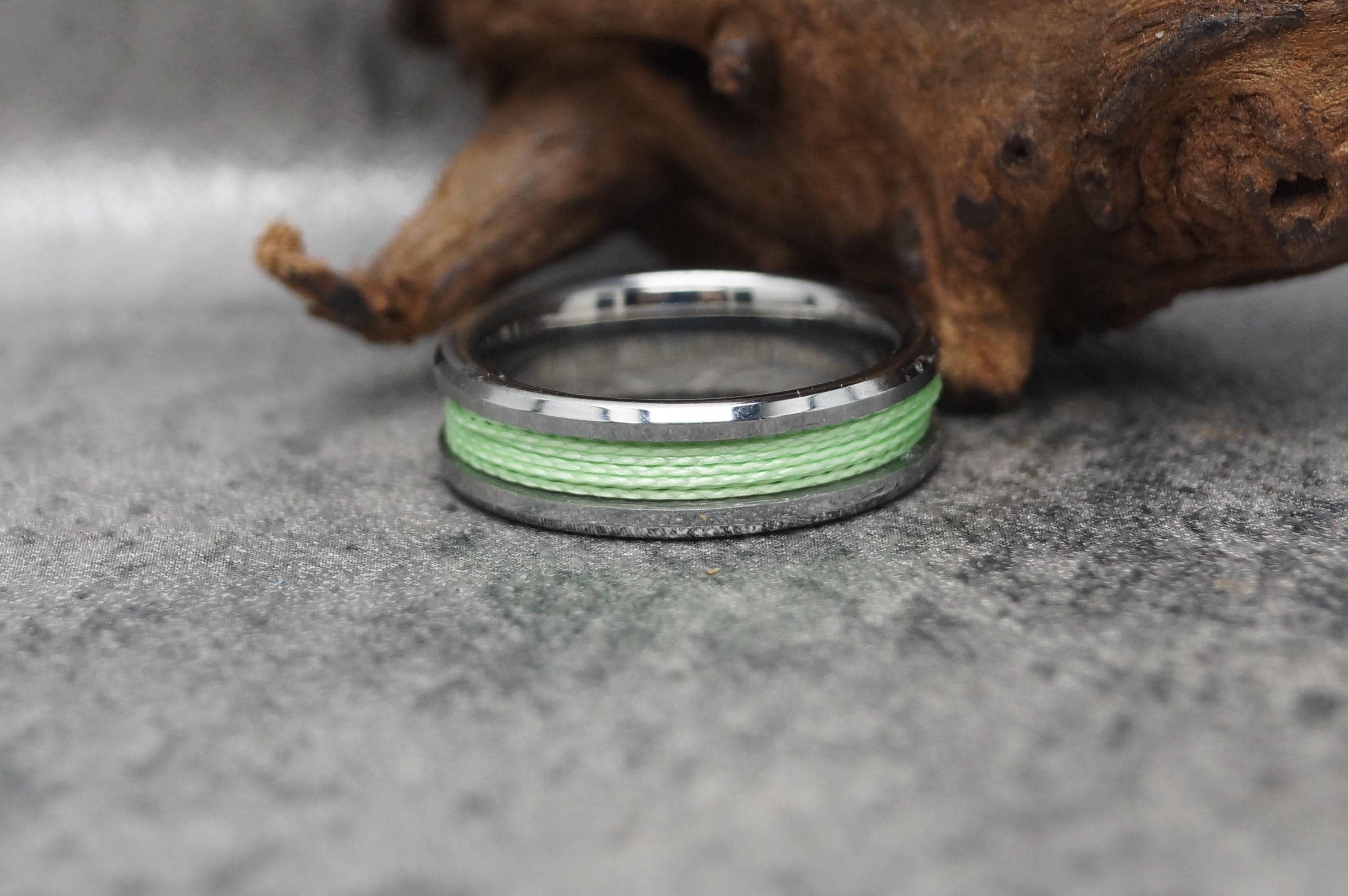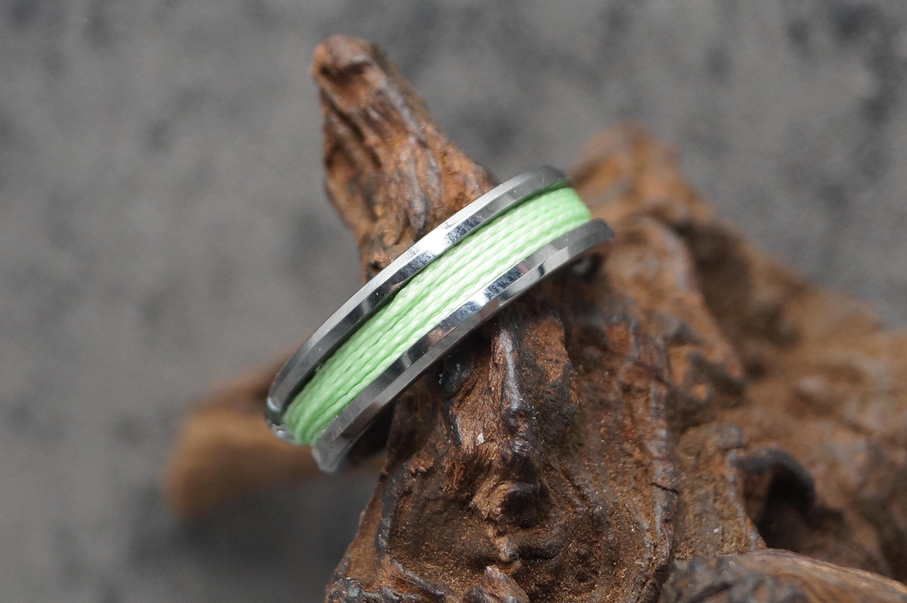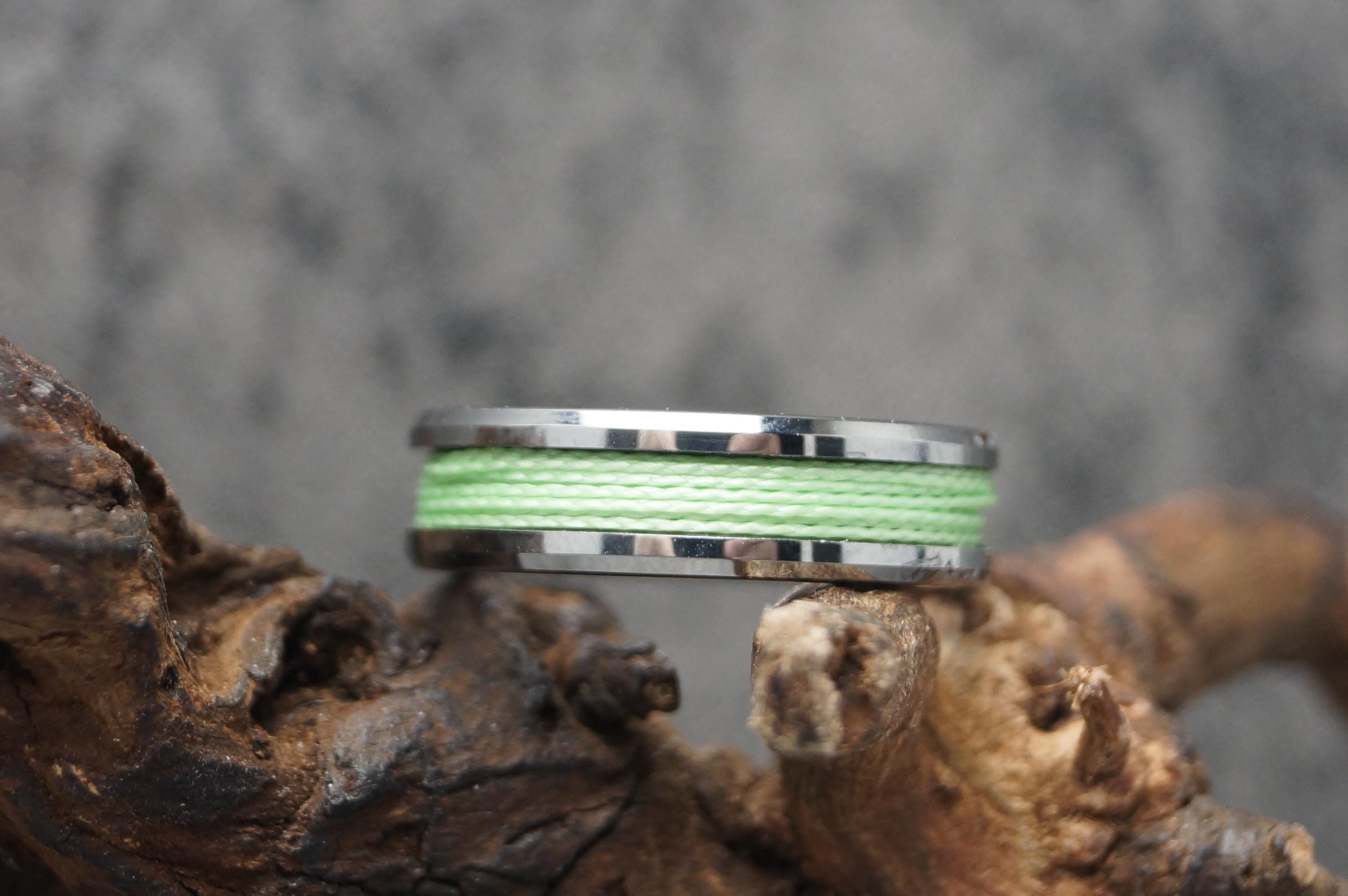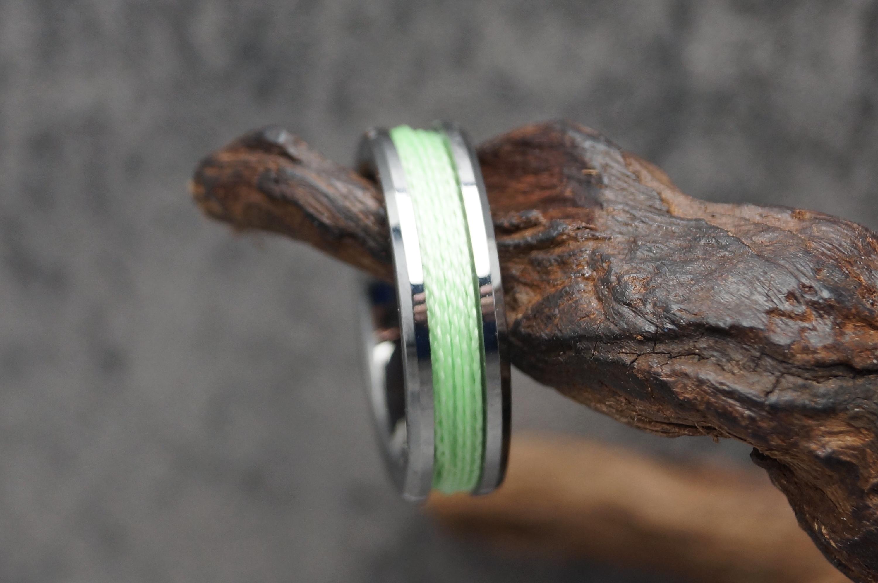 Tungsten Ring with Green Fishing Line Inlay - Available 4mm, 6mm or 8mm wide.