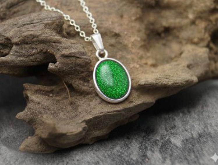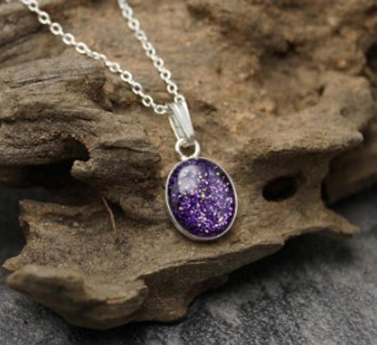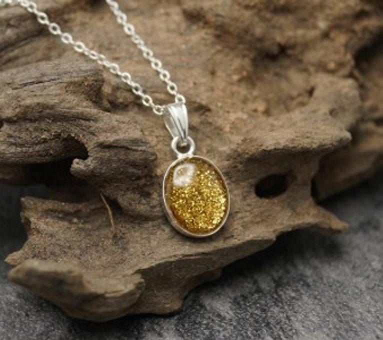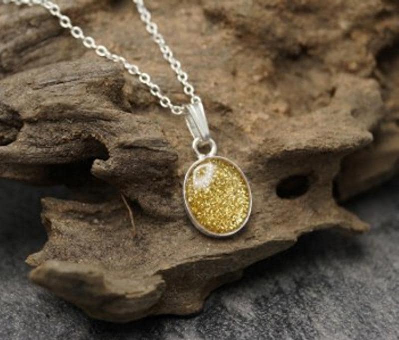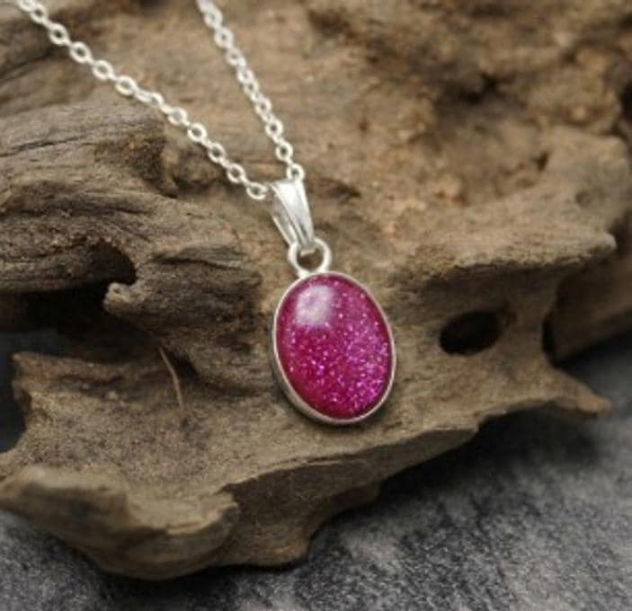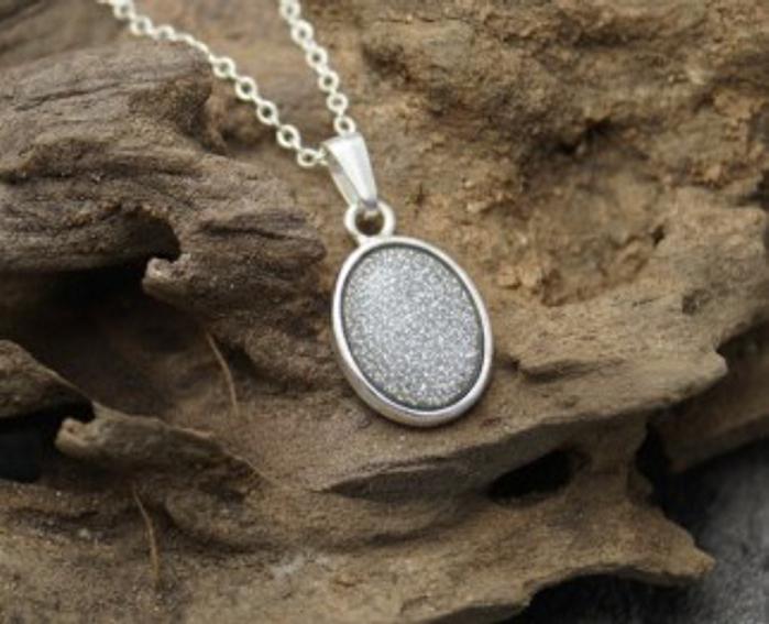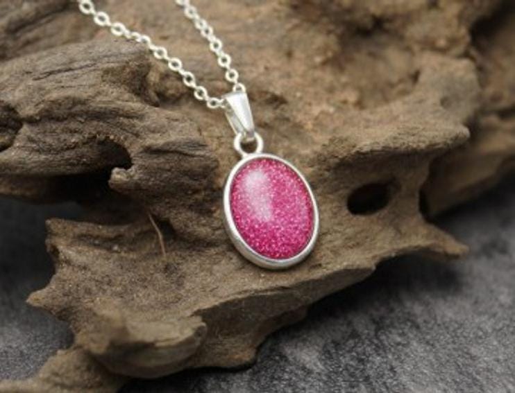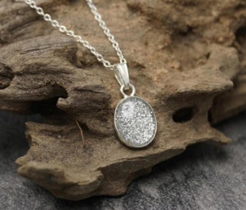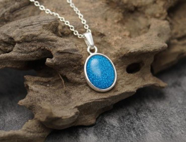 Memorial Loved Ones & Pet Ashes with Eco-glitter Sterling Silver Oval Pendant & 18" Chain Both Hallmarked 925. Option to choose your preferred colour from the dropdown.