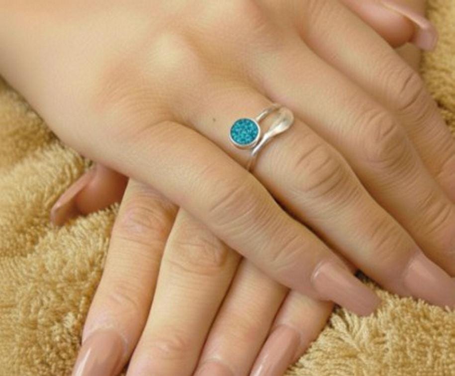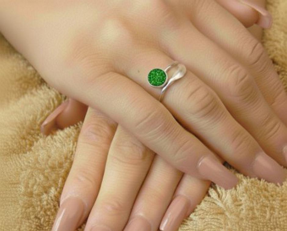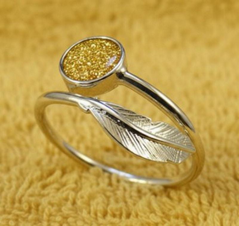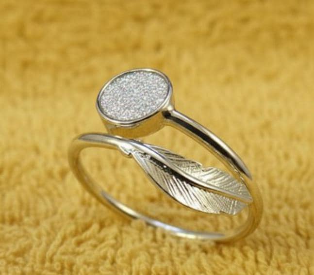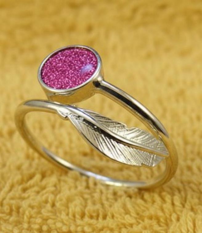 Memorial Loved Ones & Pet Ashes Feather Stirling Silver Adjustable Memorial Ring with a 6mm Setting Inlaid along with Eco-glitter.