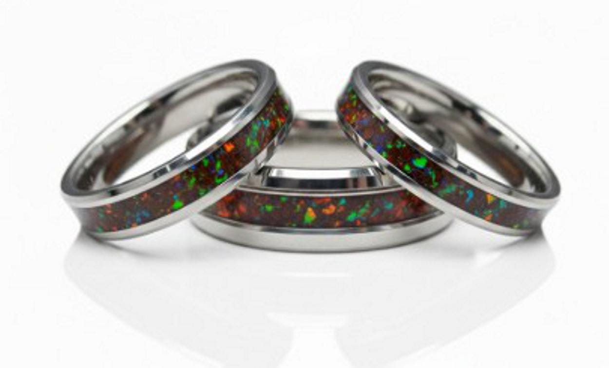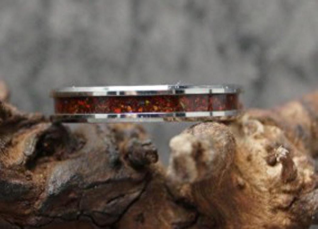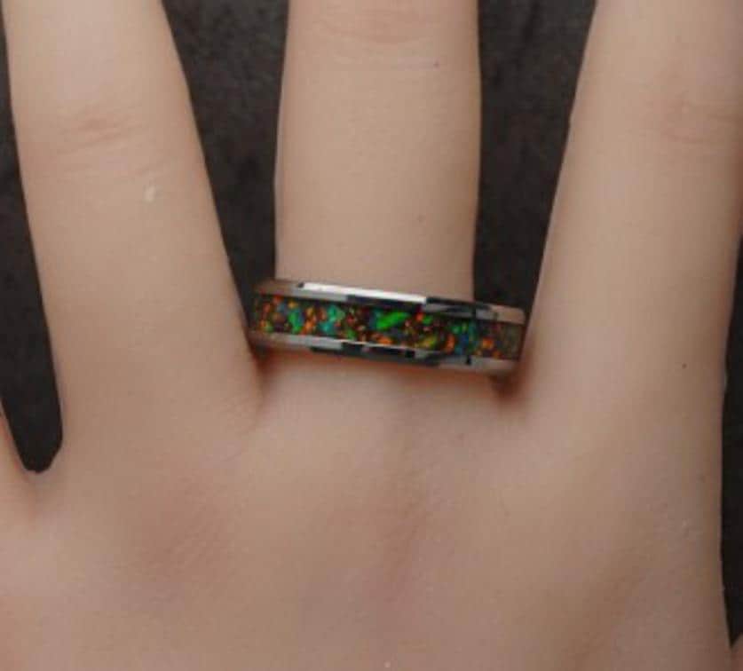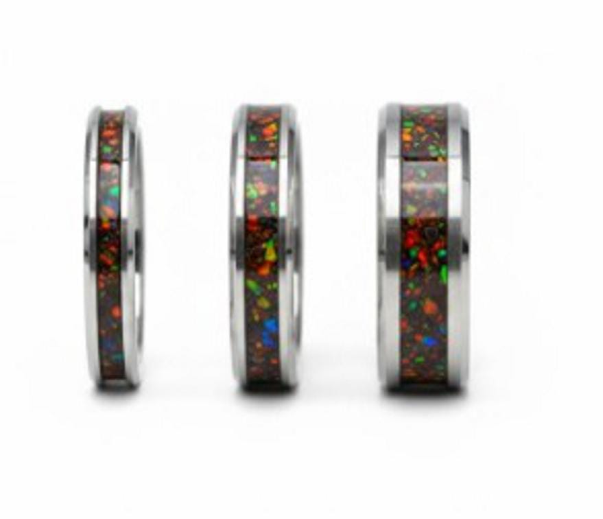 Black Opal #1 Tungsten Wedding Band - available 4 mm, 6 mm or 8 mm wide ring - Tungsten Inlaid Ring