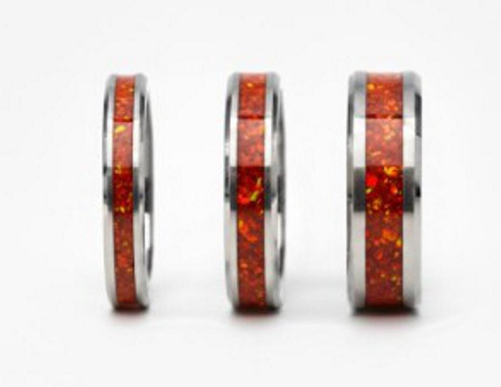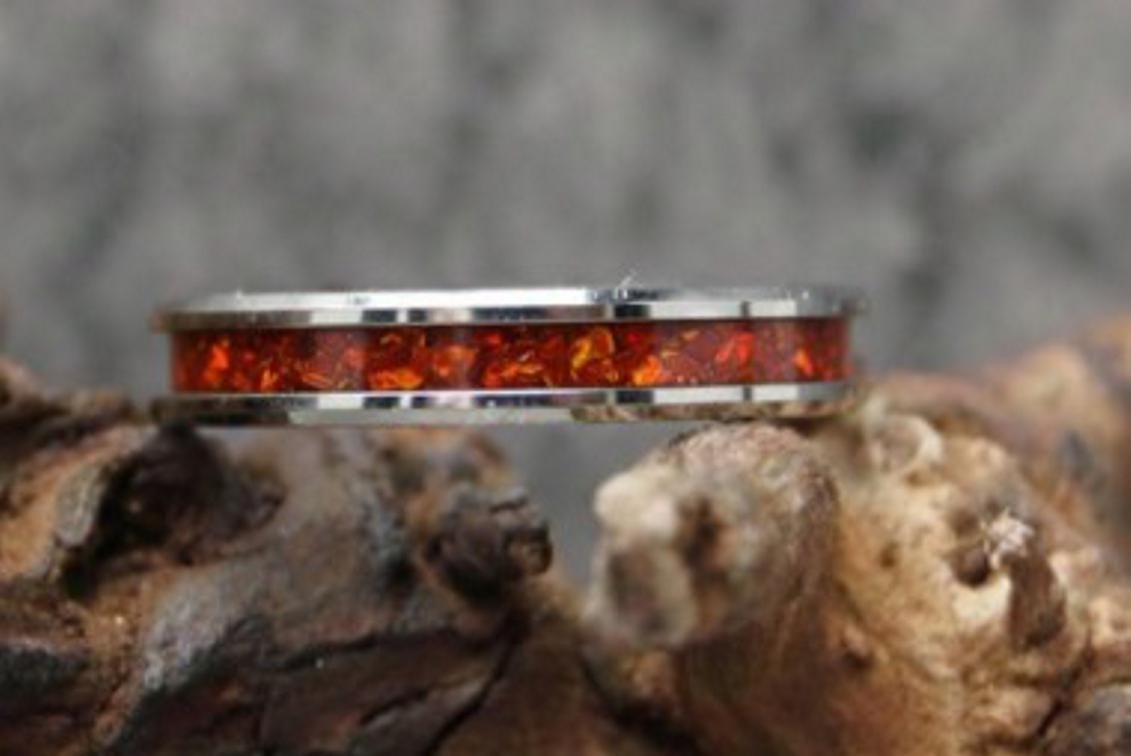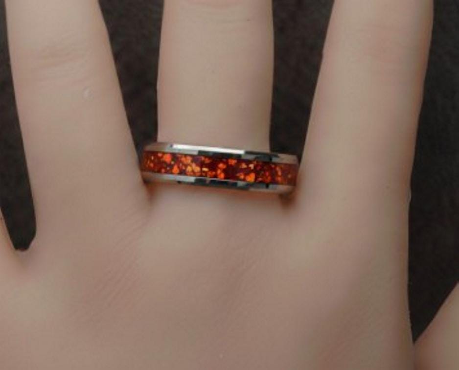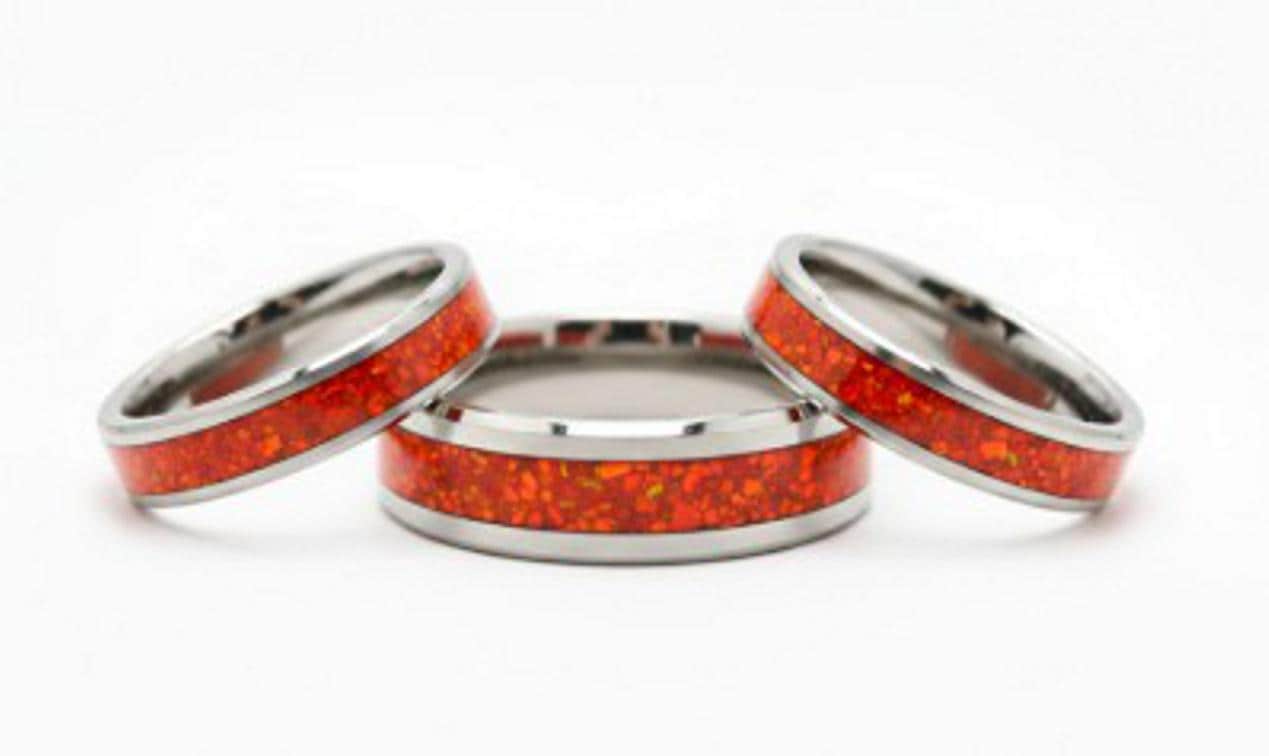 Ruby Red Opal Tungsten Wedding Band - Ring for men and women - Unique Ring