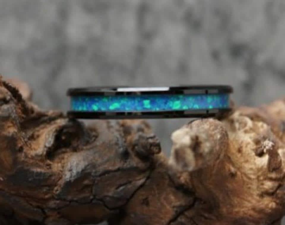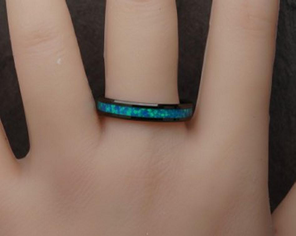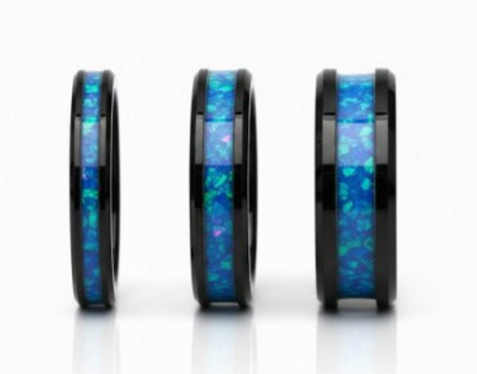 Blue Pacific Opal Black Ceramic Wedding Band - Ring for men and women - Unique Ring