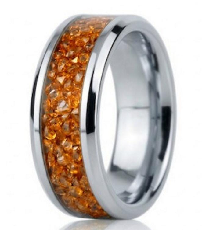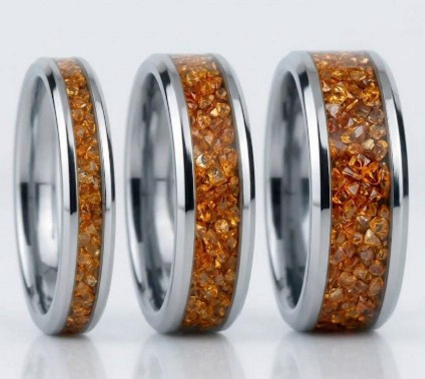 Medium Orange CZ Stones Inlaid Tungsten Carbide Ring - Available 4mm, 6mm or 8mm wide