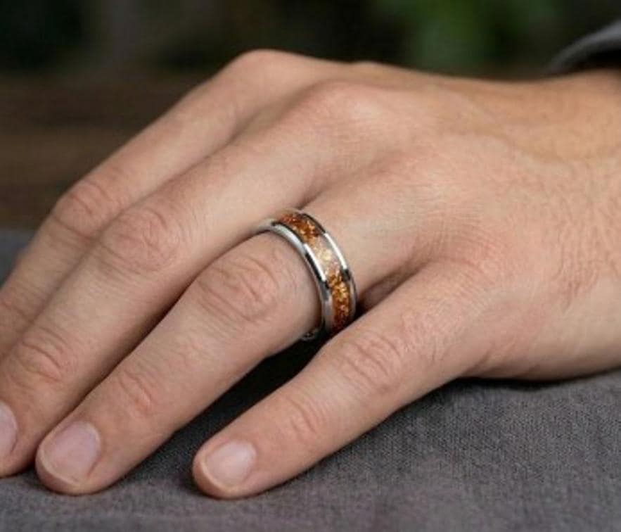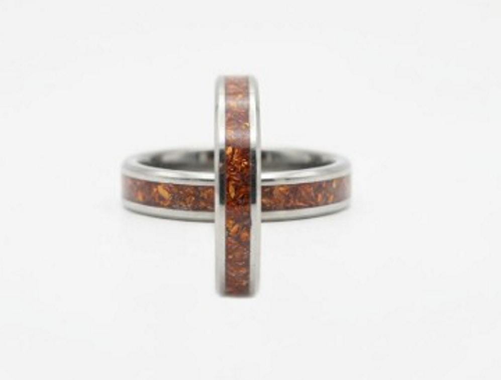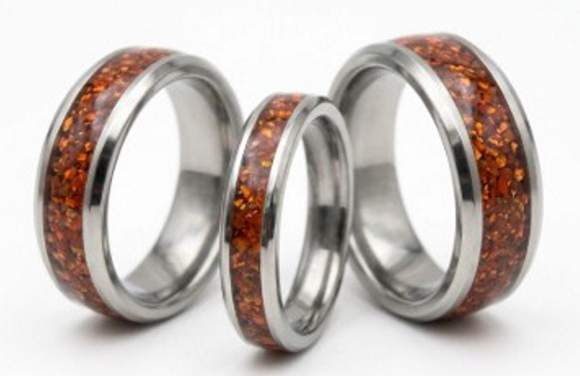 This genuine Tungsten Carbide ring is inlaid with Medium Garnet Cubic Zirconia (CZ) Stones