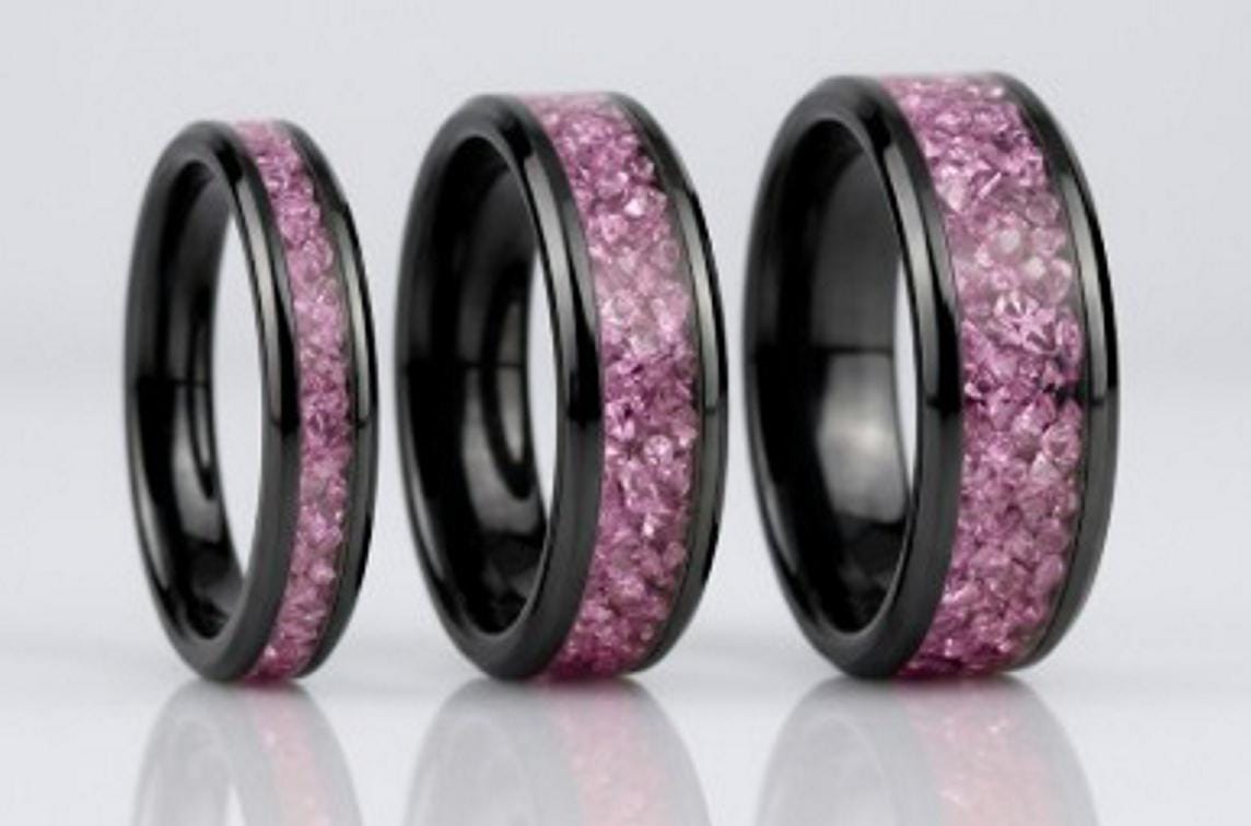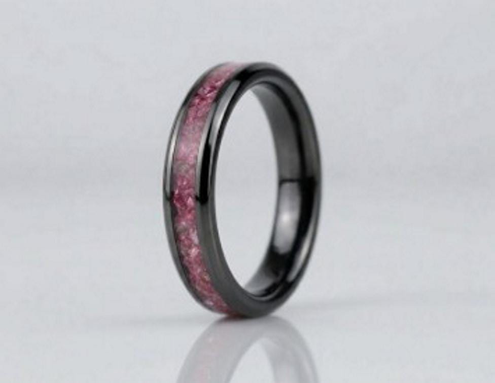 Pink CZ Stones Inlaid Black Ceramic Ring - Available 4mm, 6mm or 8mm wide