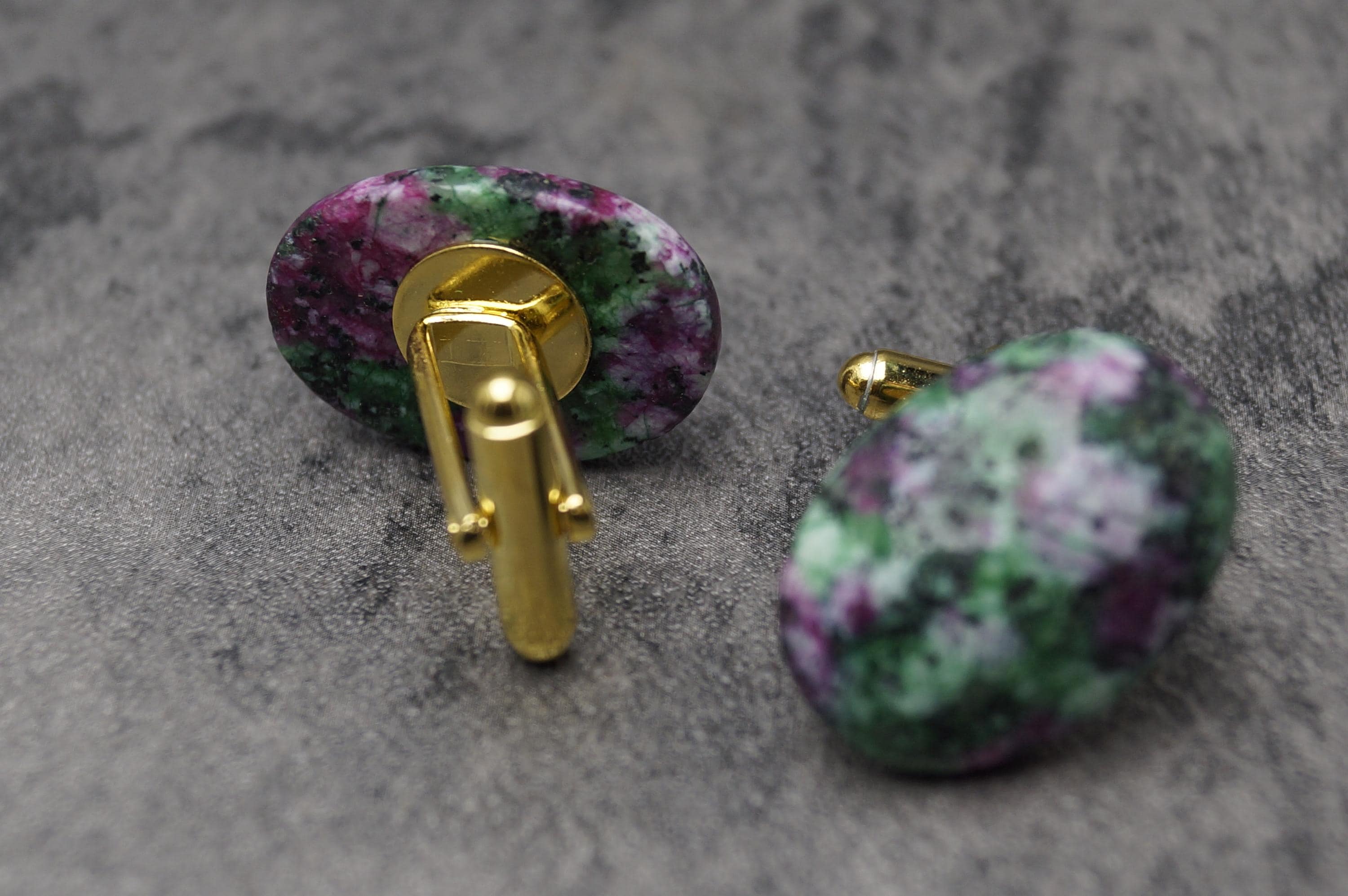 Ruby Fuchsite Oval shape Gold Plated Cufflinks - Great gift idea