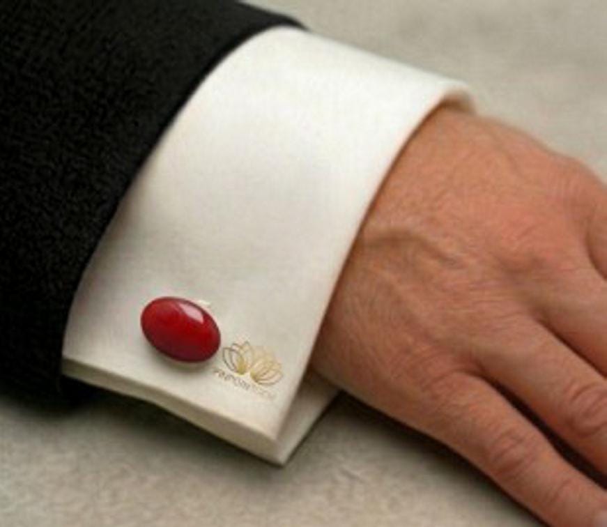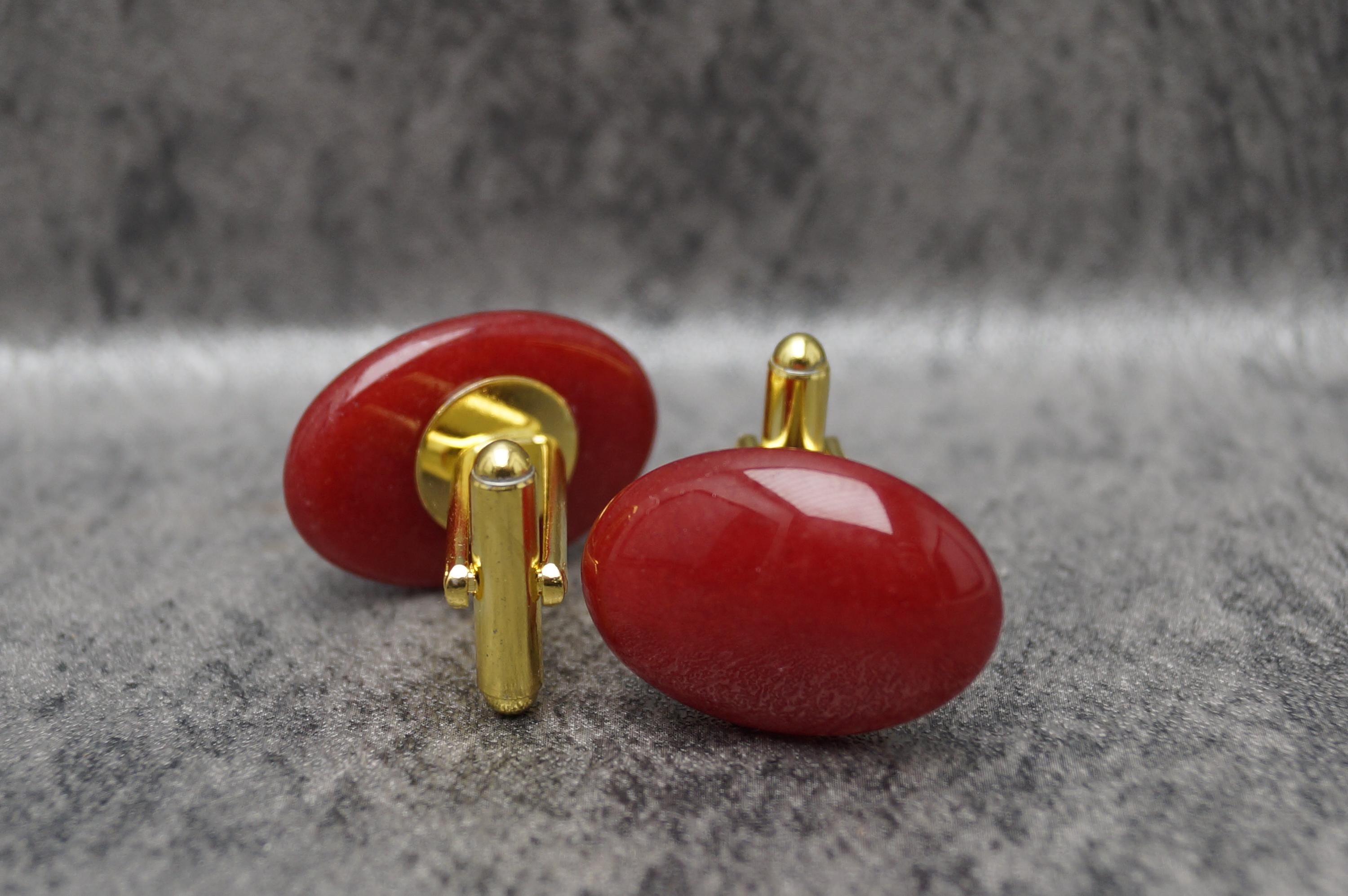 Red Jade Oval shape Gold Plated Cufflinks - Great gift idea