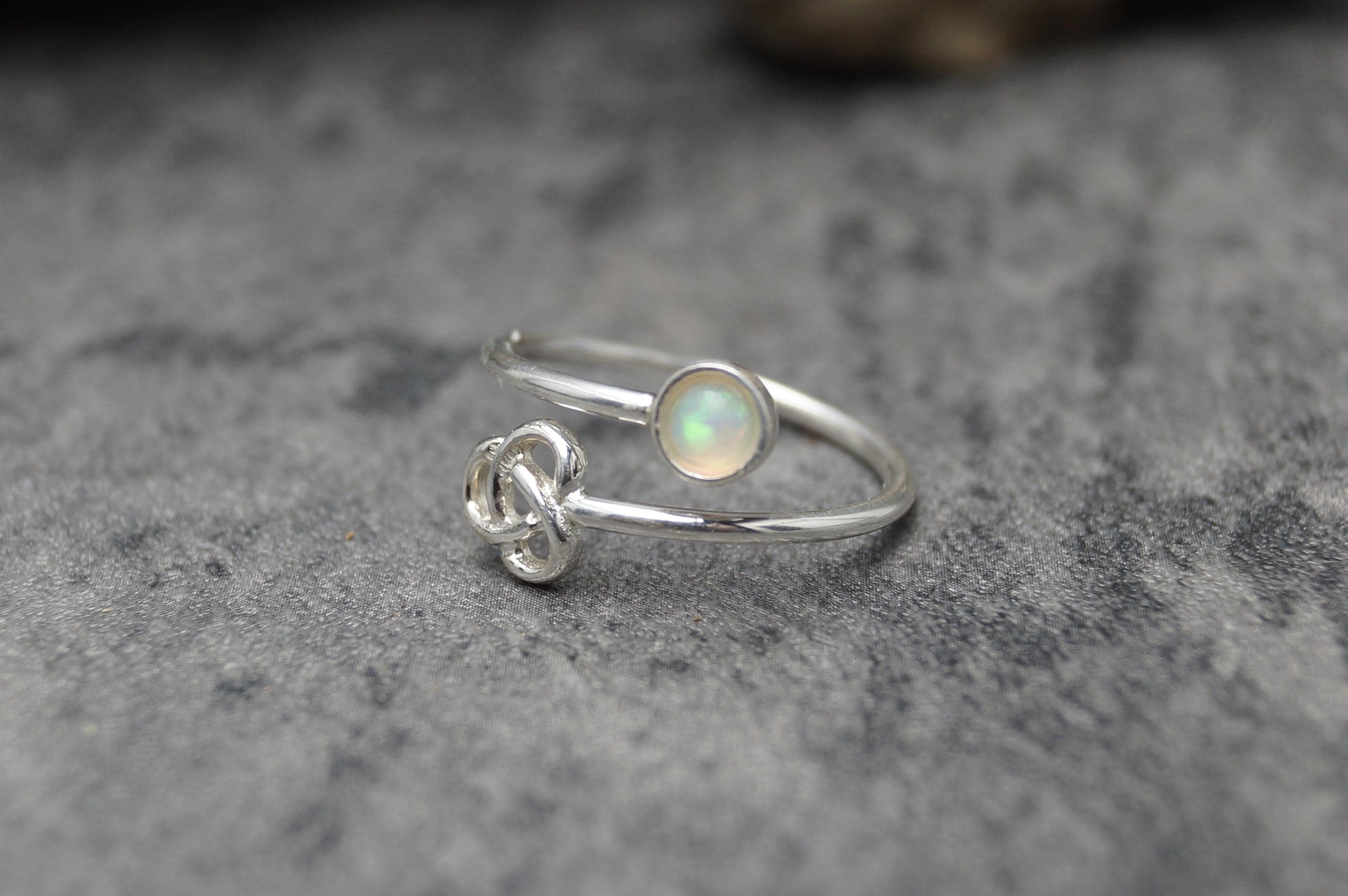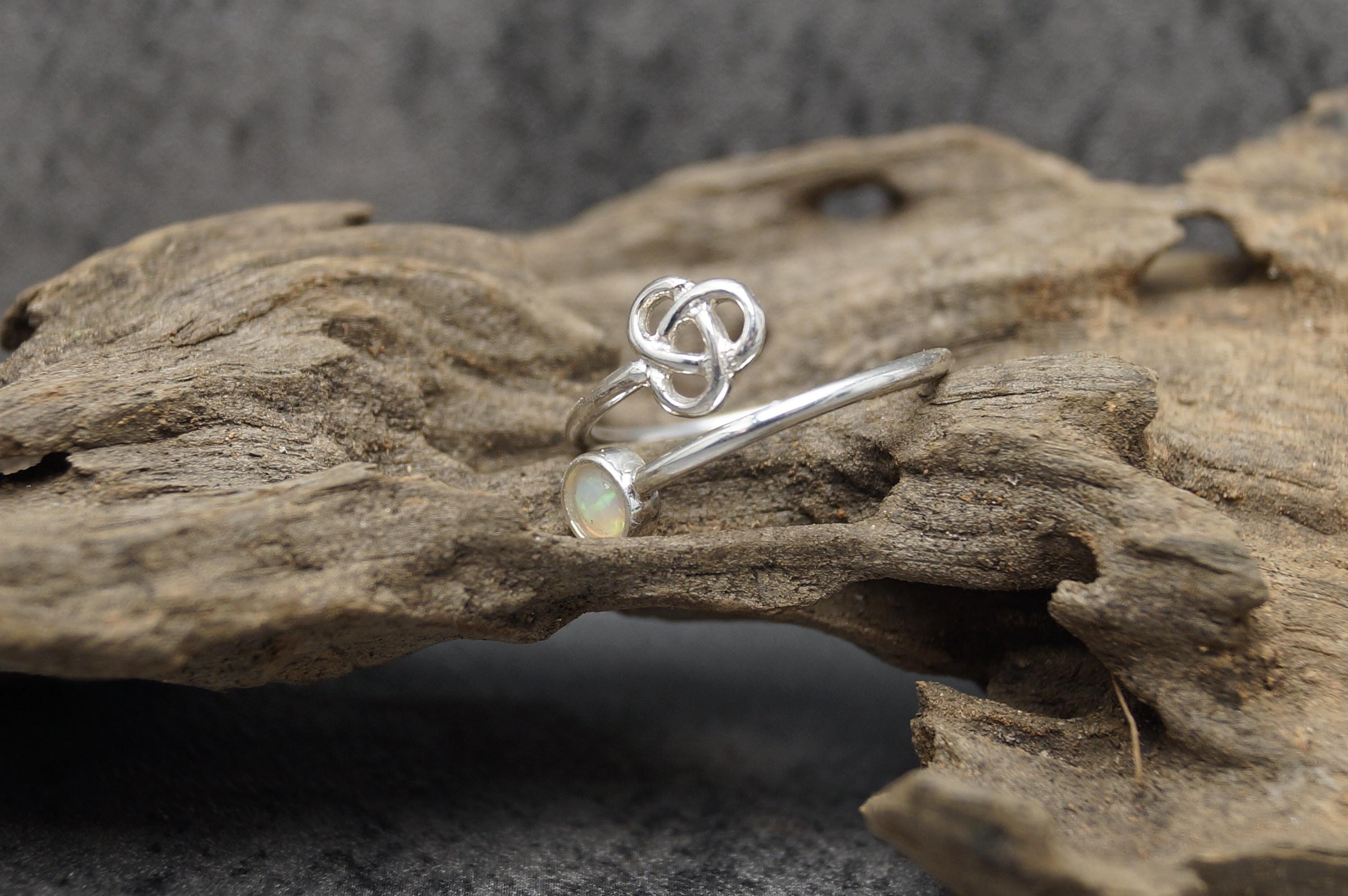 This is a genuine Hallmarked 925 Sterling Silver Celtic Adjustable Ring incorporating a Genuine Ethiopian Welo opal in a 4mm round setting.