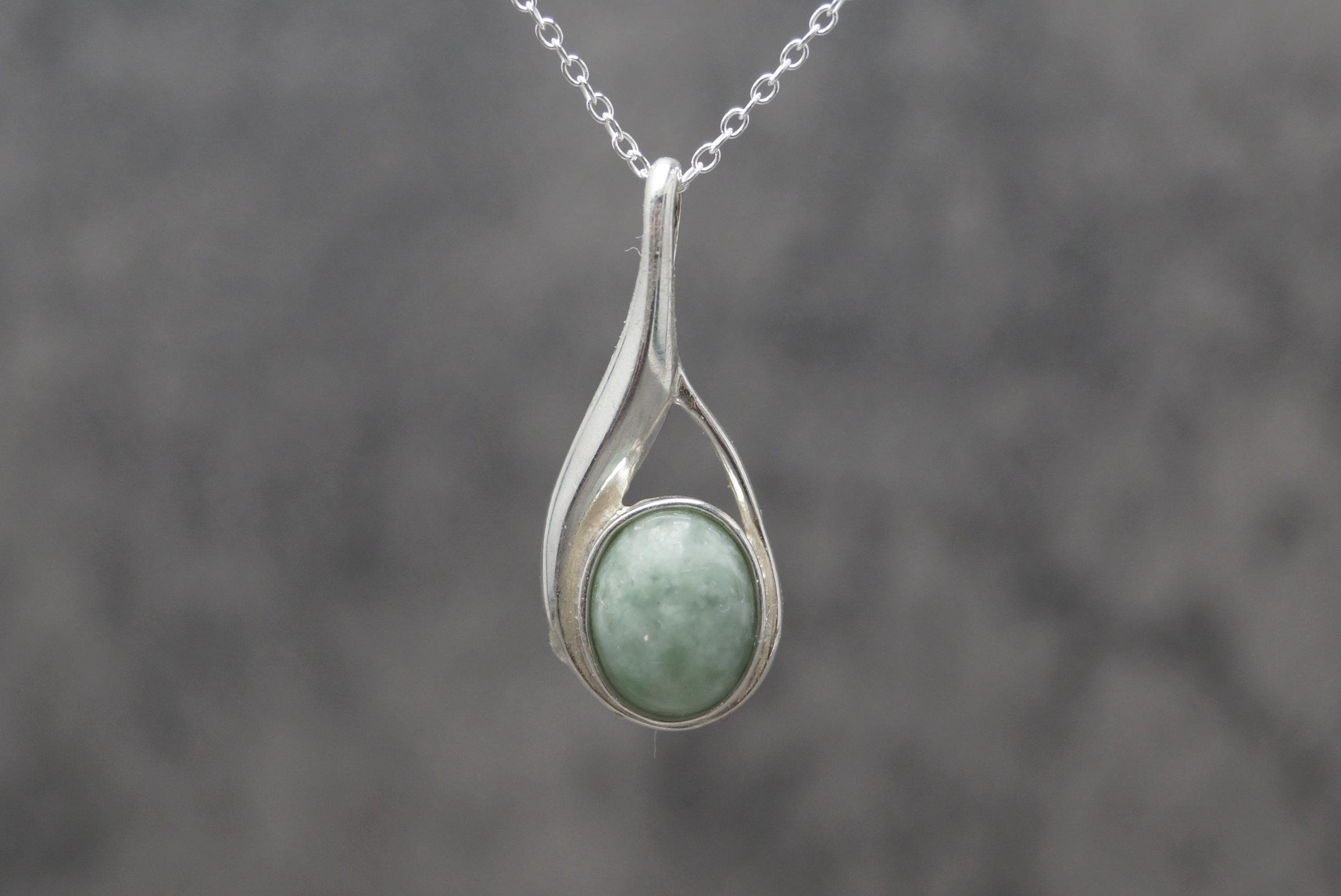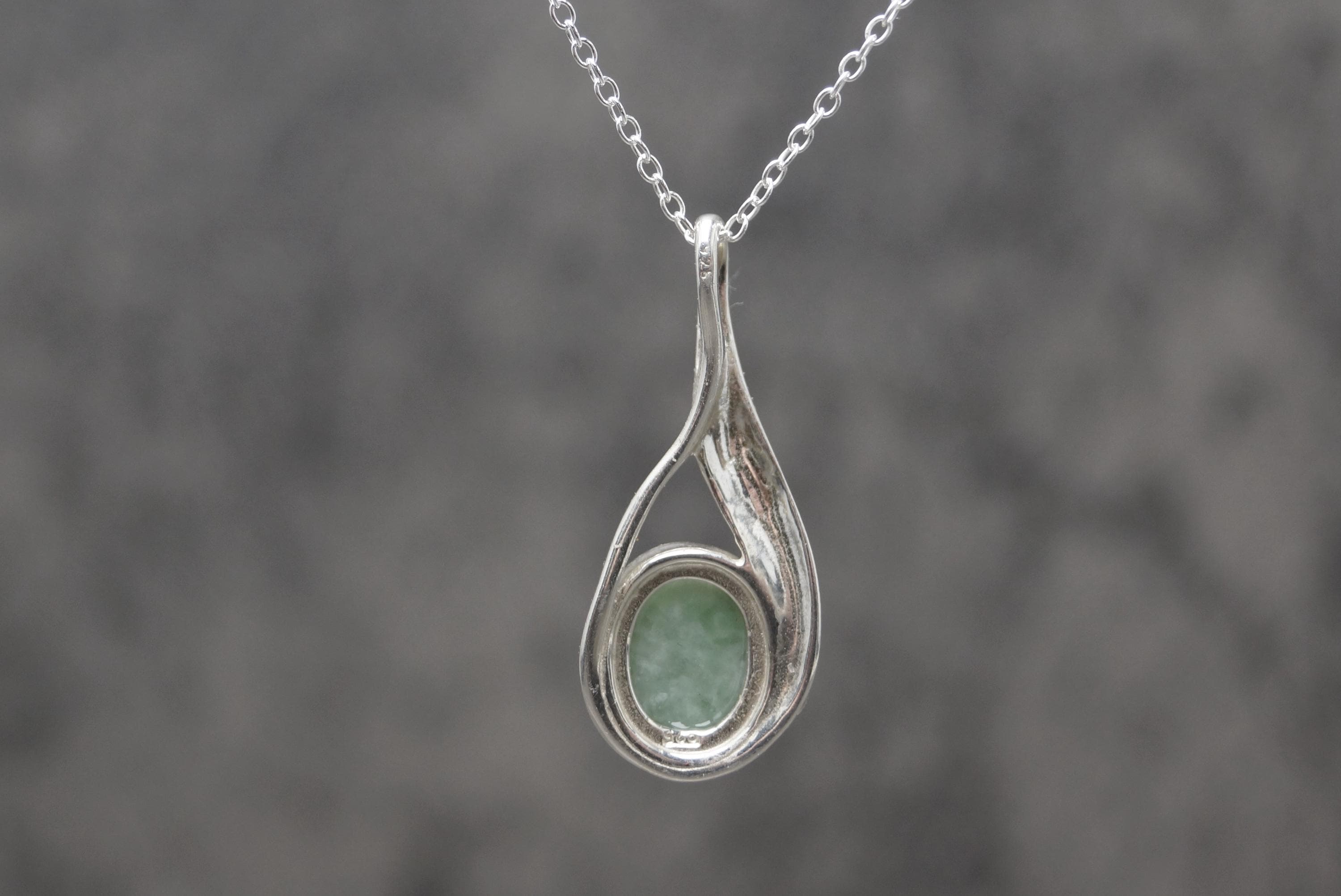 Highly polished Jade gemstone pendant is a great example of this popular stone, perfect for those looking for a sterling silver Jade pendant.