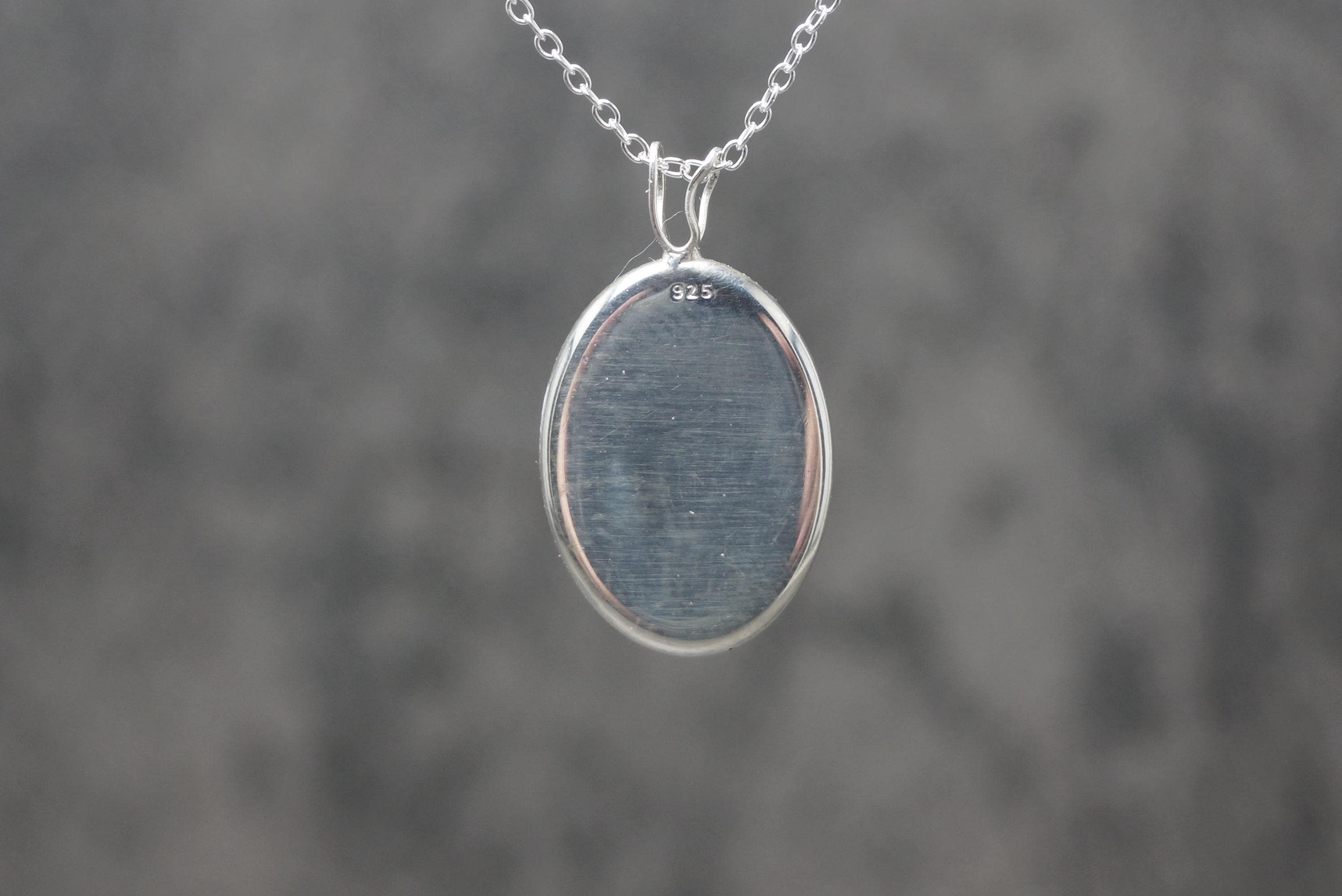 Sterling Silver Oval Milled Edge Blue Agate Pendant & 18" Chain (chain options available), features a natural blue Agate gemstone.