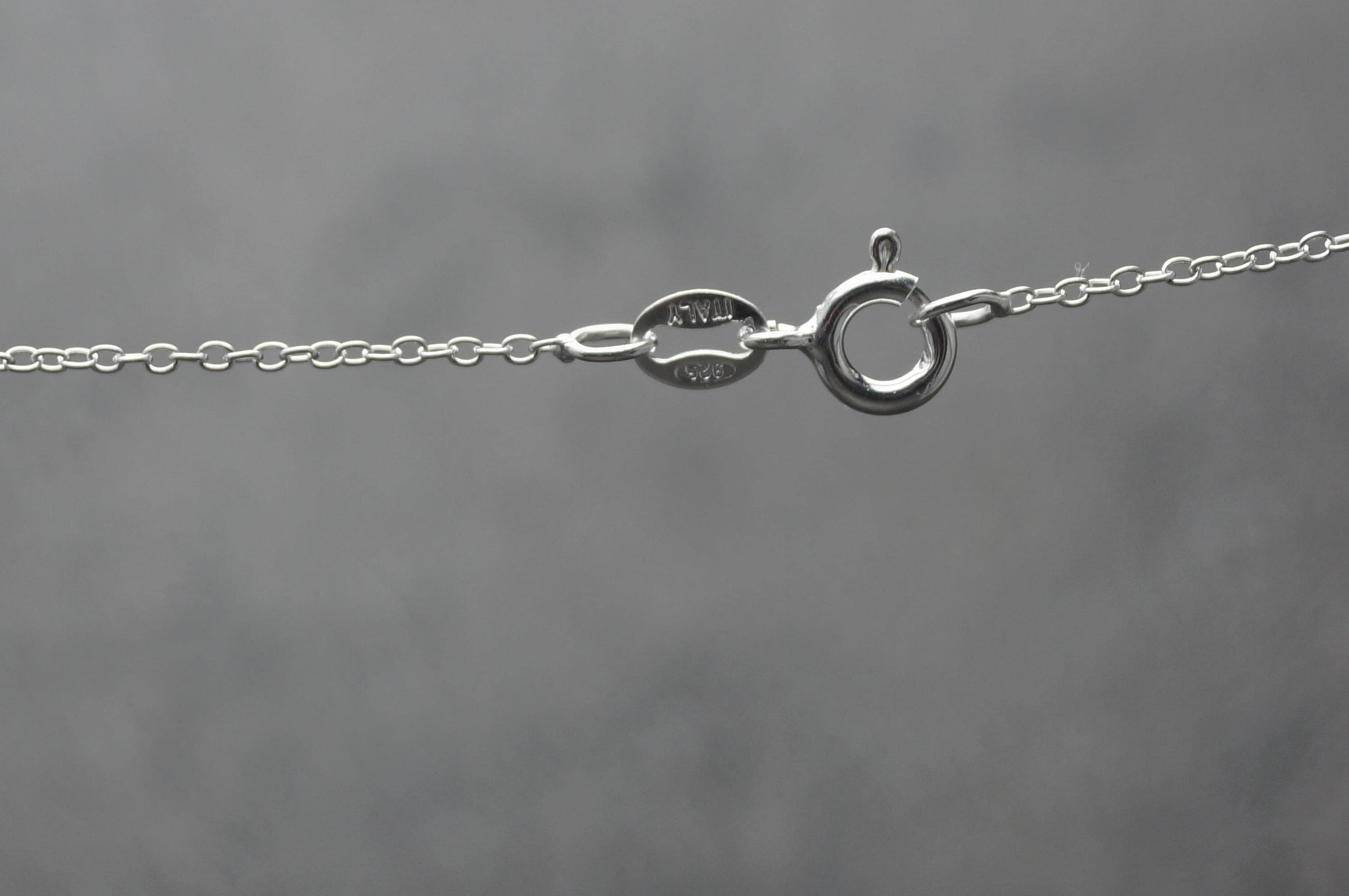 A Sterling Silver chain is included with the option of being an 18” / 457 mm Trace Chain, Belcher Chain or Popcorn Rope Chain. Please make your selection when checking out which option you prefer.