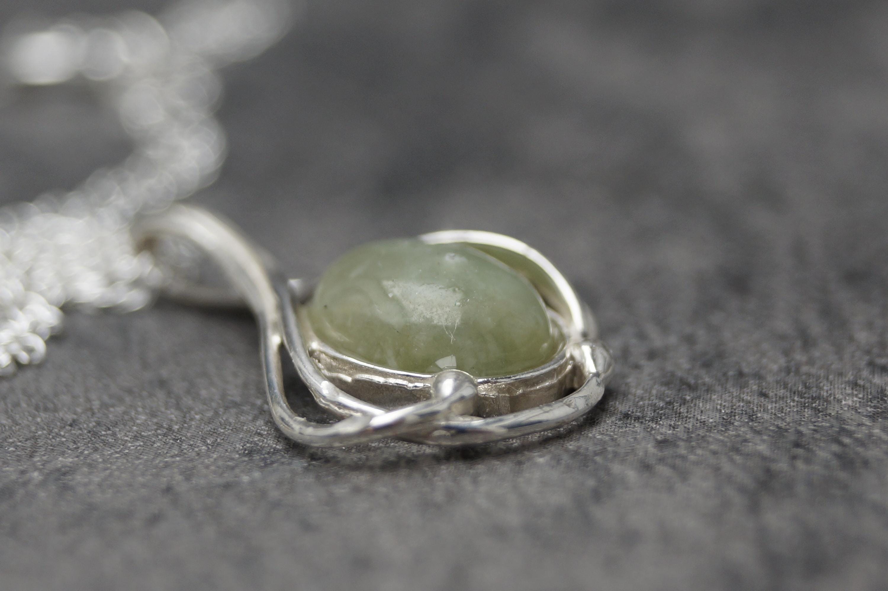 Highly polished Jade gemstone pendant is a great example of this popular stone, perfect for those looking for a sterling silver Jade pendant.