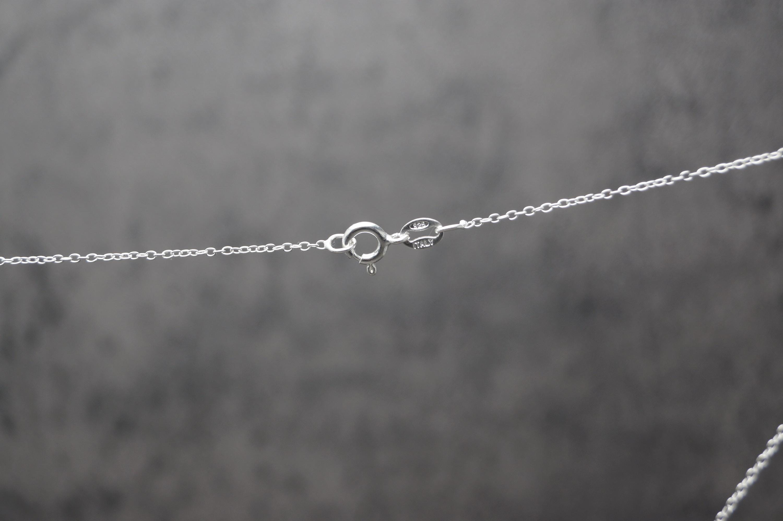 A Sterling Silver chain is included with the option of being an 18” / 457 mm Trace Chain, Belcher Chain or Popcorn Rope Chain. Please make your selection when checking out which option you prefer.
