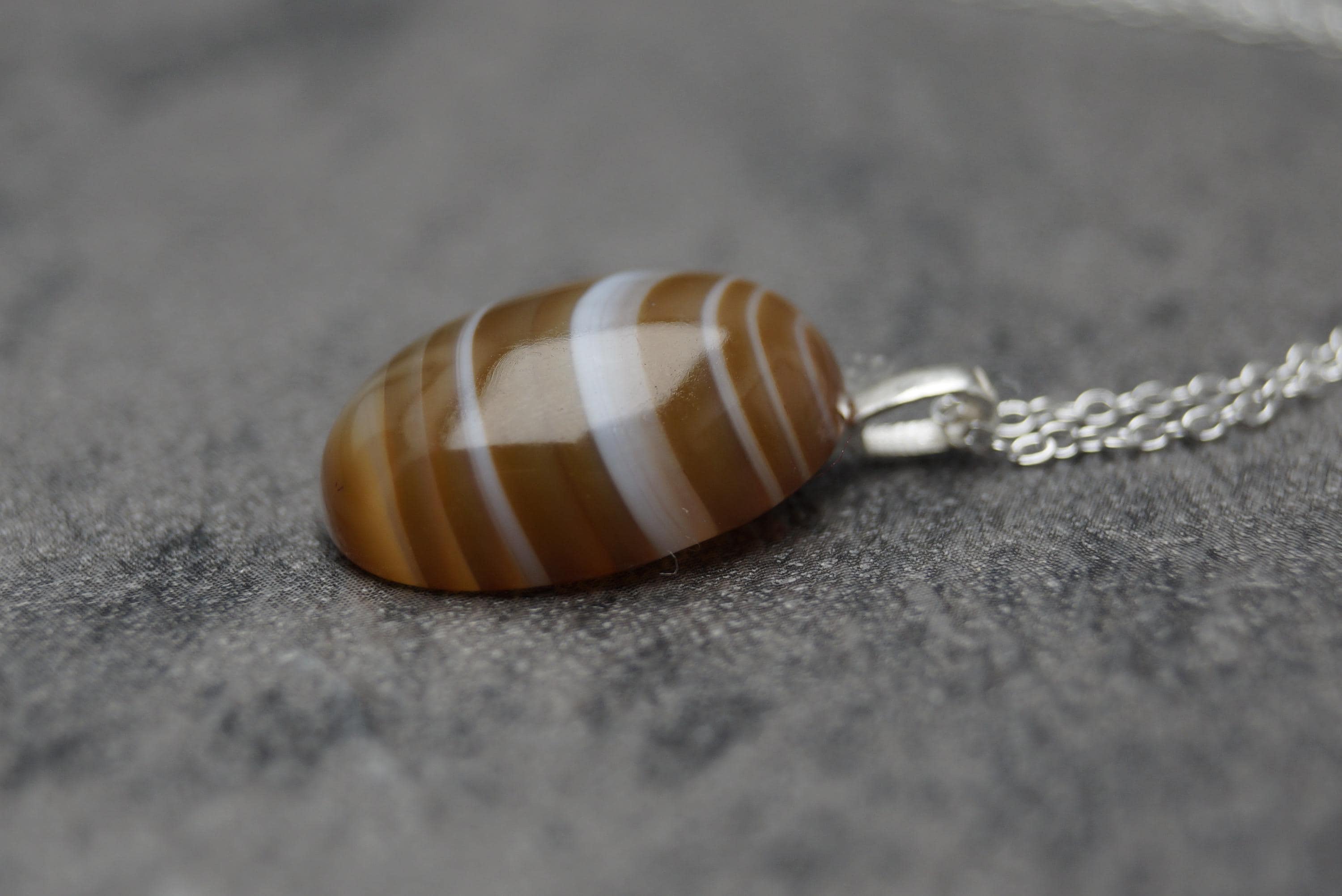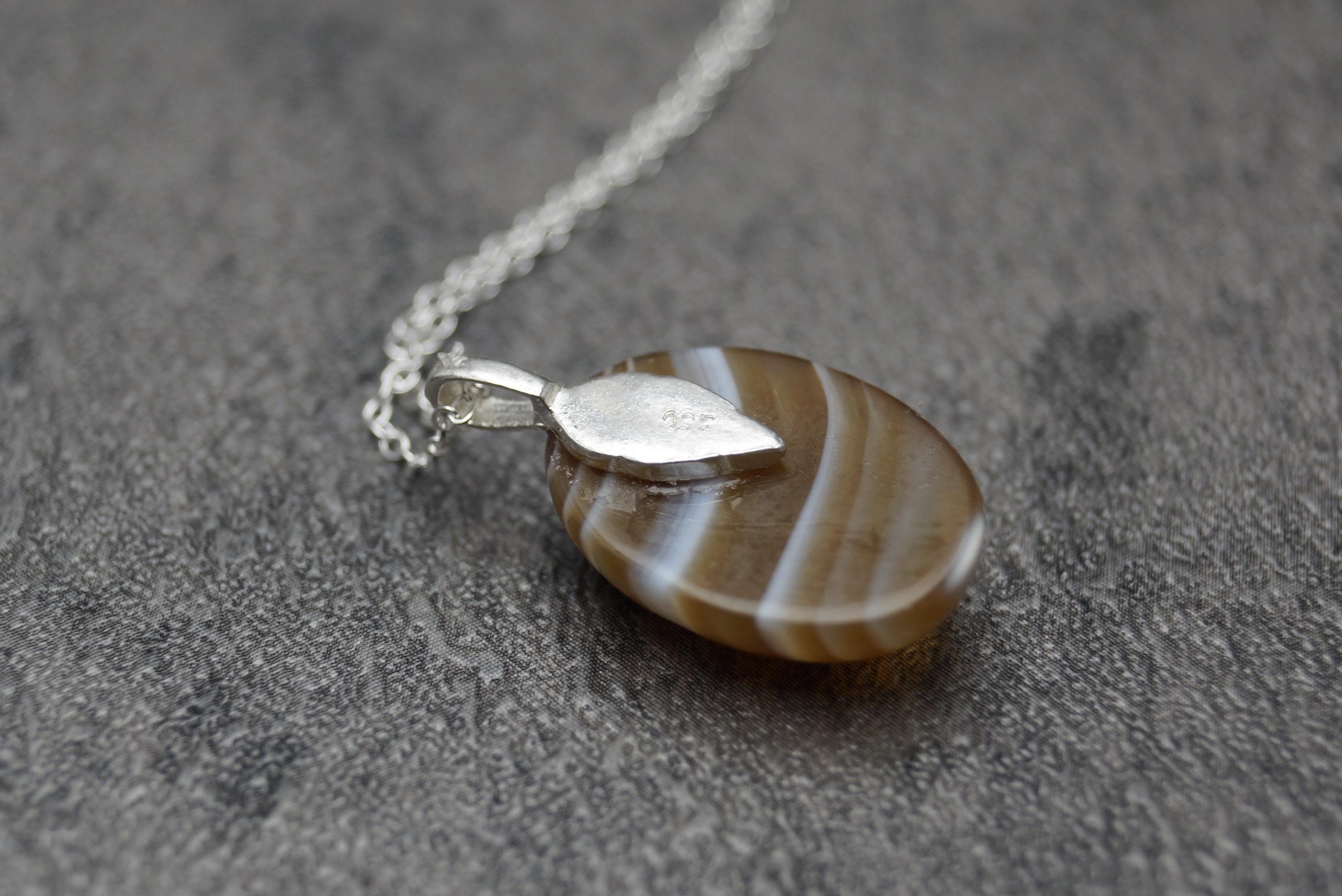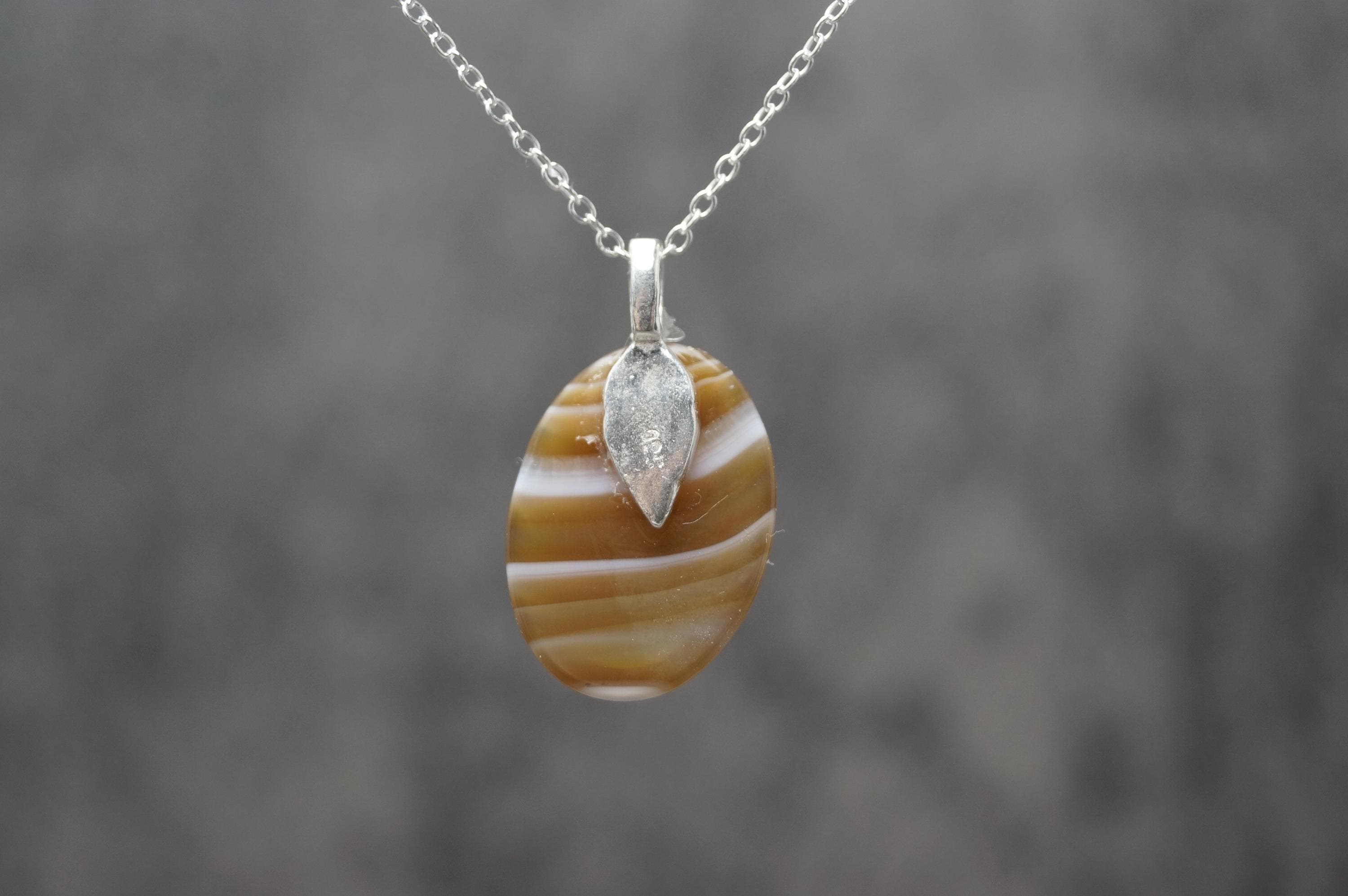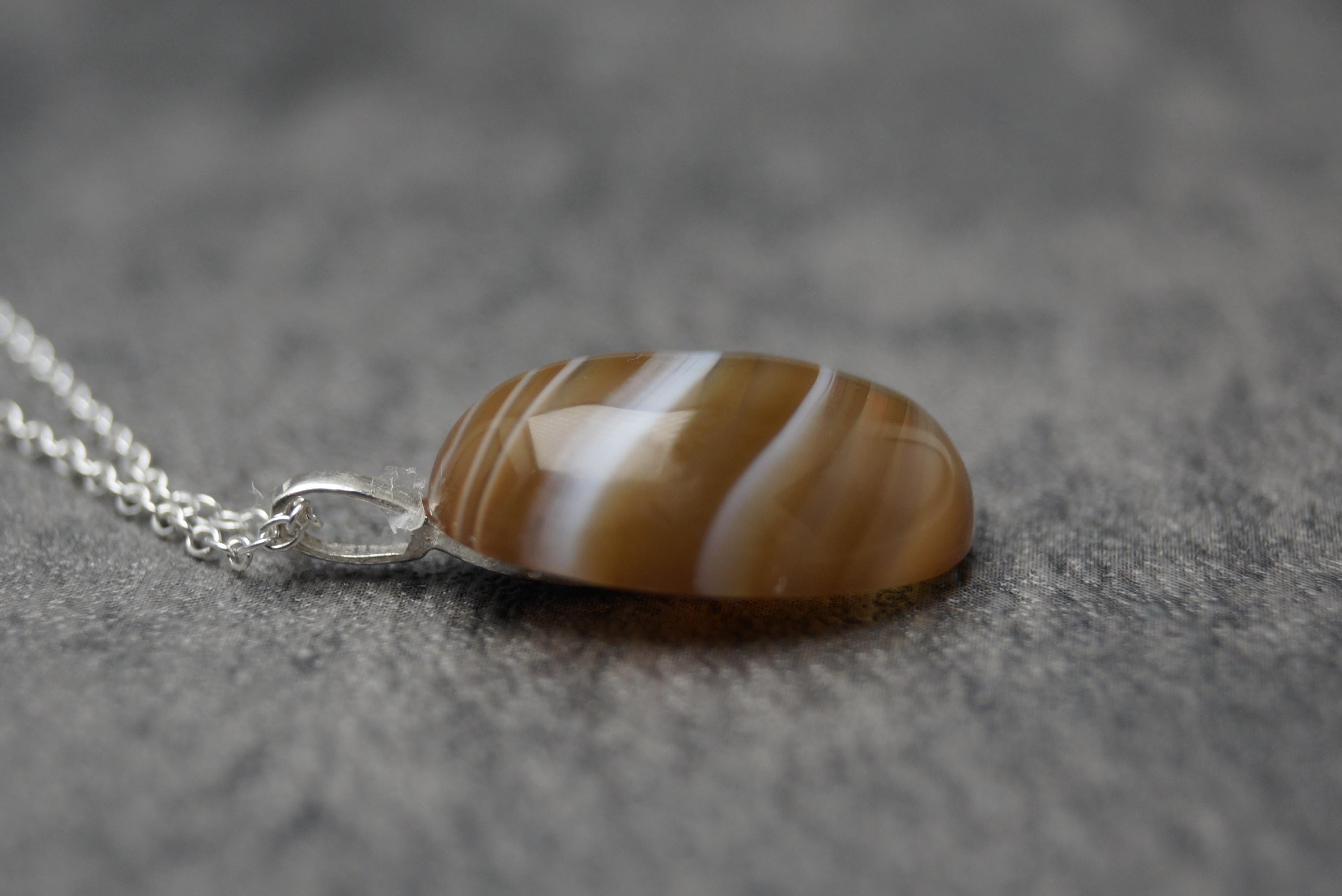 Highly polished Brown Agate gemstone pendant is a great example of this popular stone, perfect for those looking for a sterling silver Brown Agate pendant. (chain options available) - Hallmarked 925.