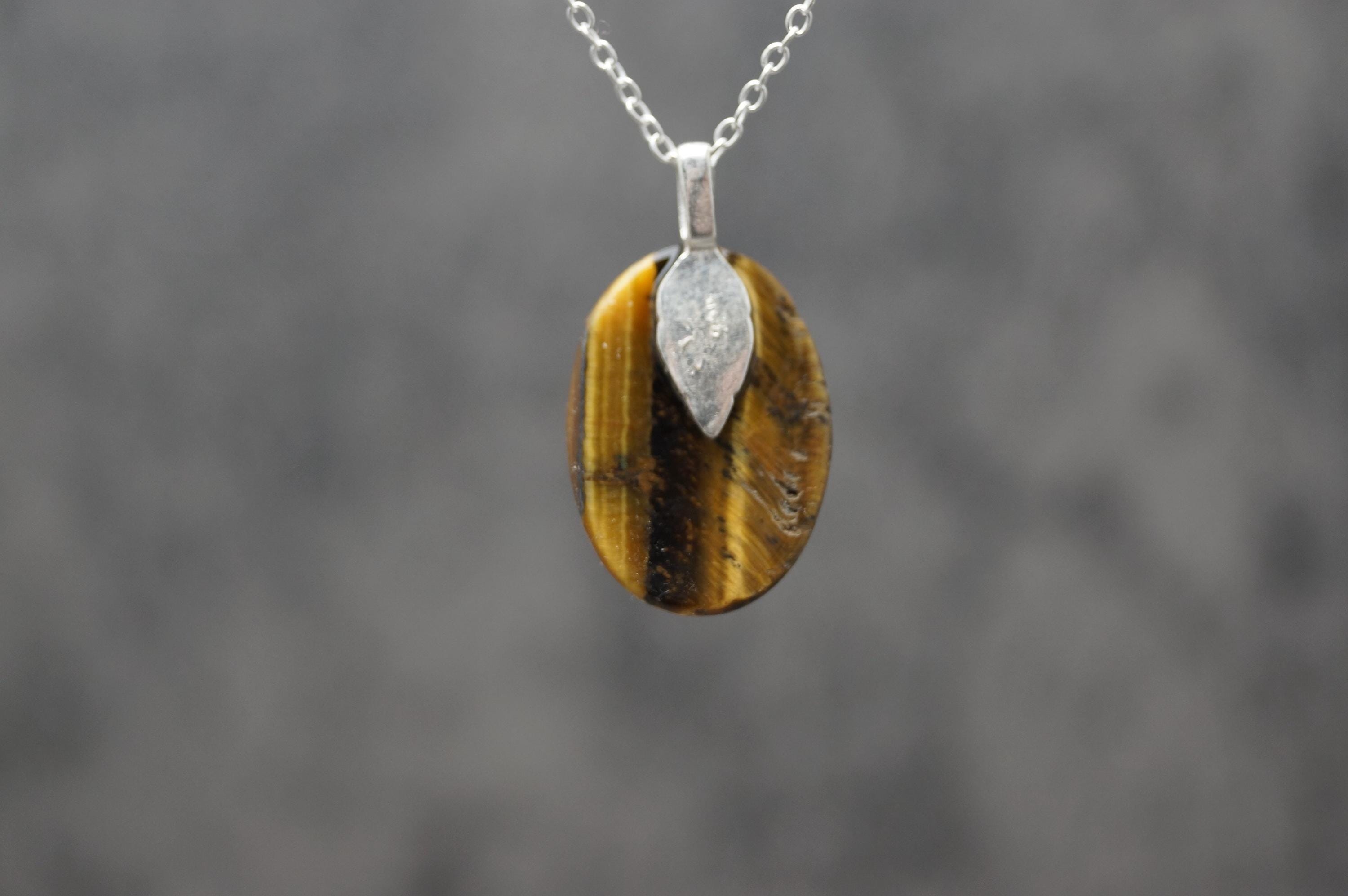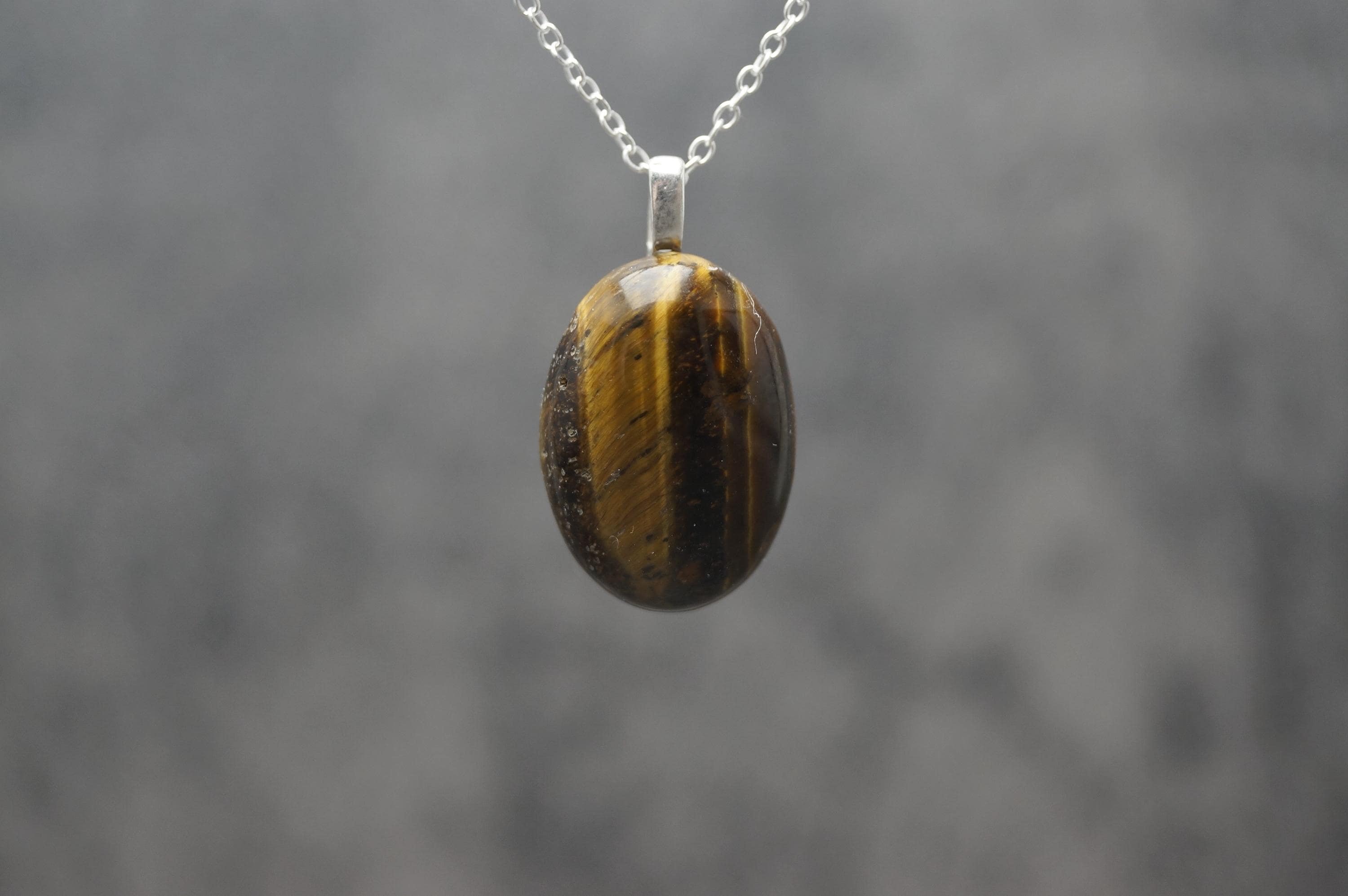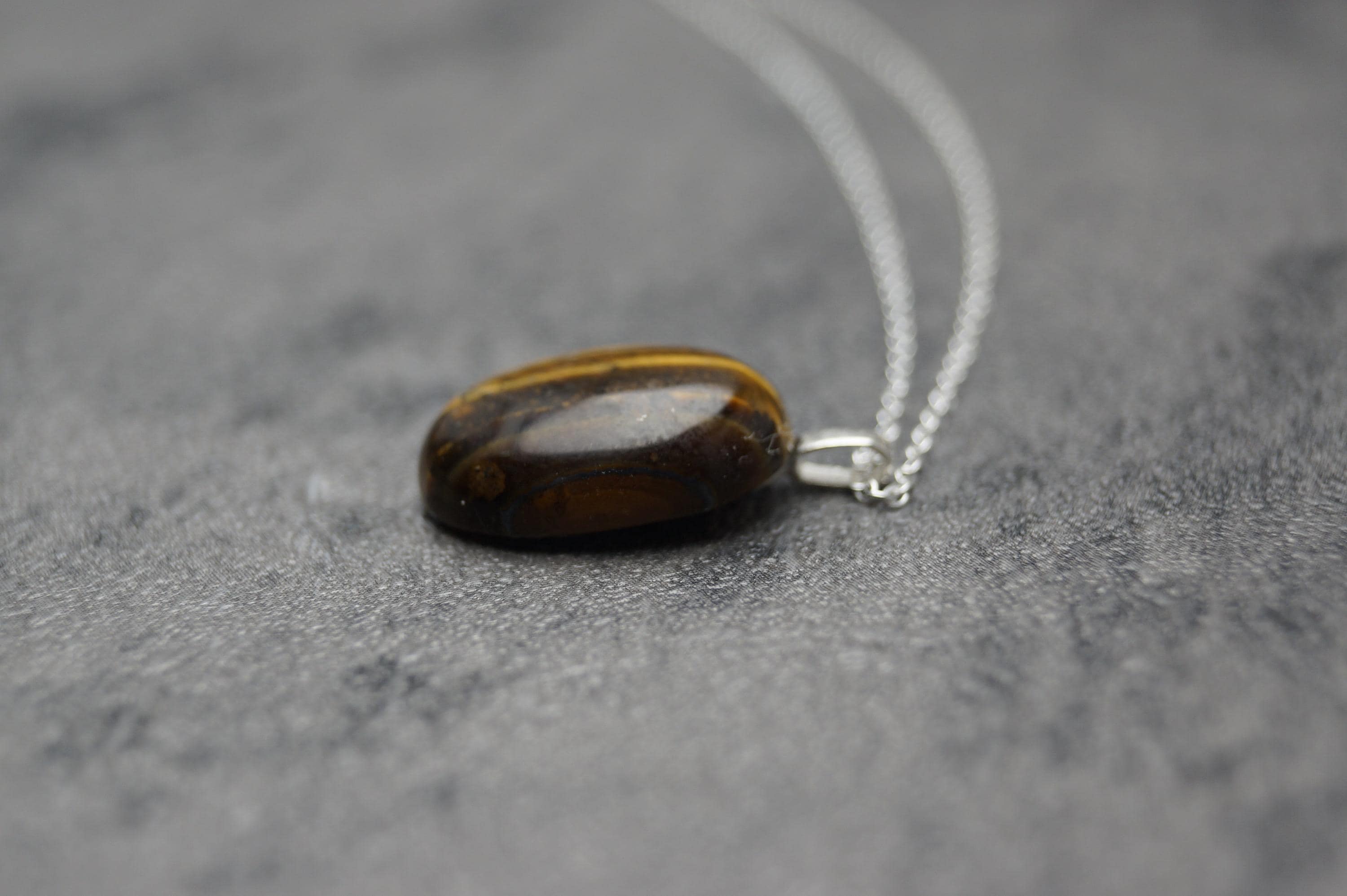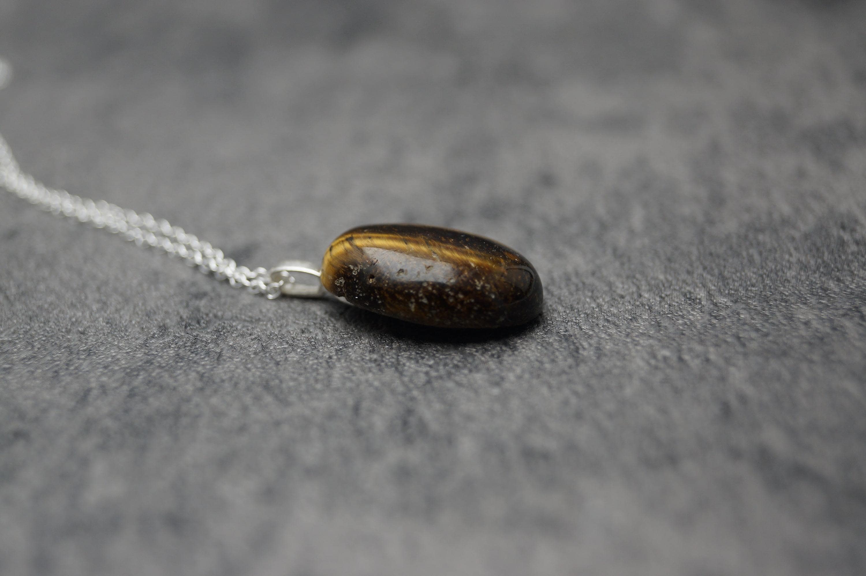 Highly polished Tiger Eye gemstone pendant is a great example of this popular stone, perfect for those looking for a sterling silver Tiger Eye pendant.