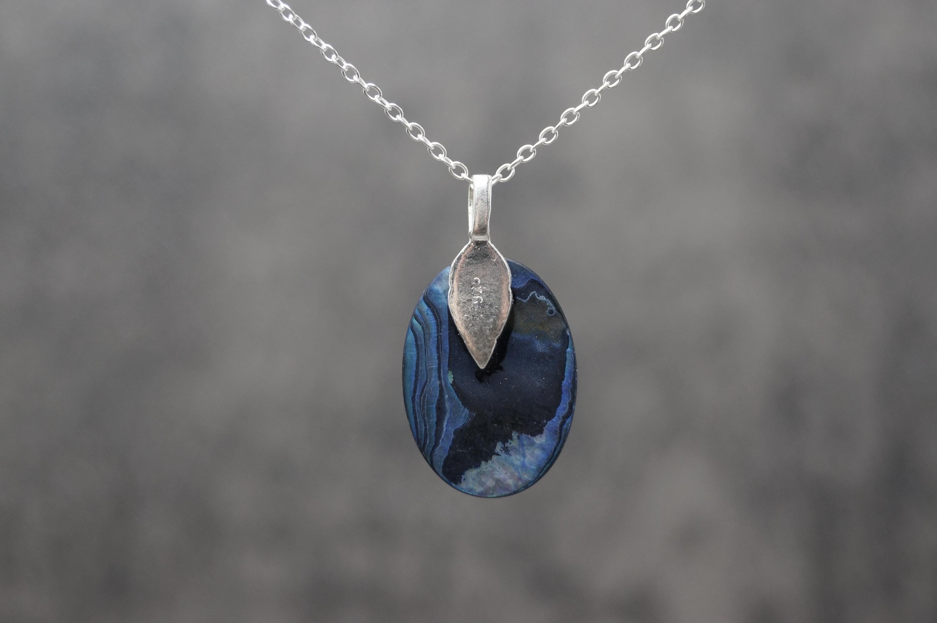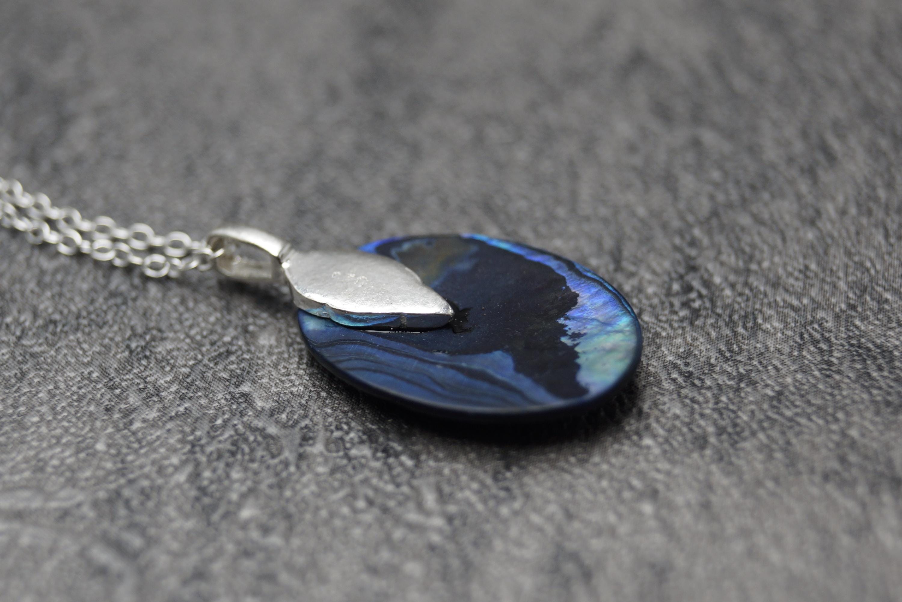 Highly polished Abalone gemstone pendant is a great example of this popular stone, perfect for those looking for a sterling silver Abalone pendant.