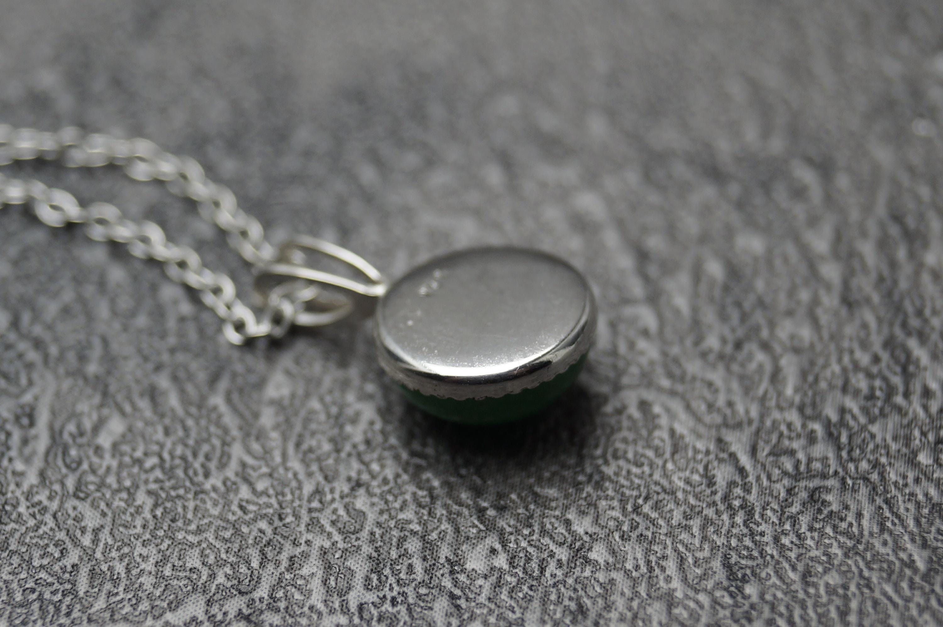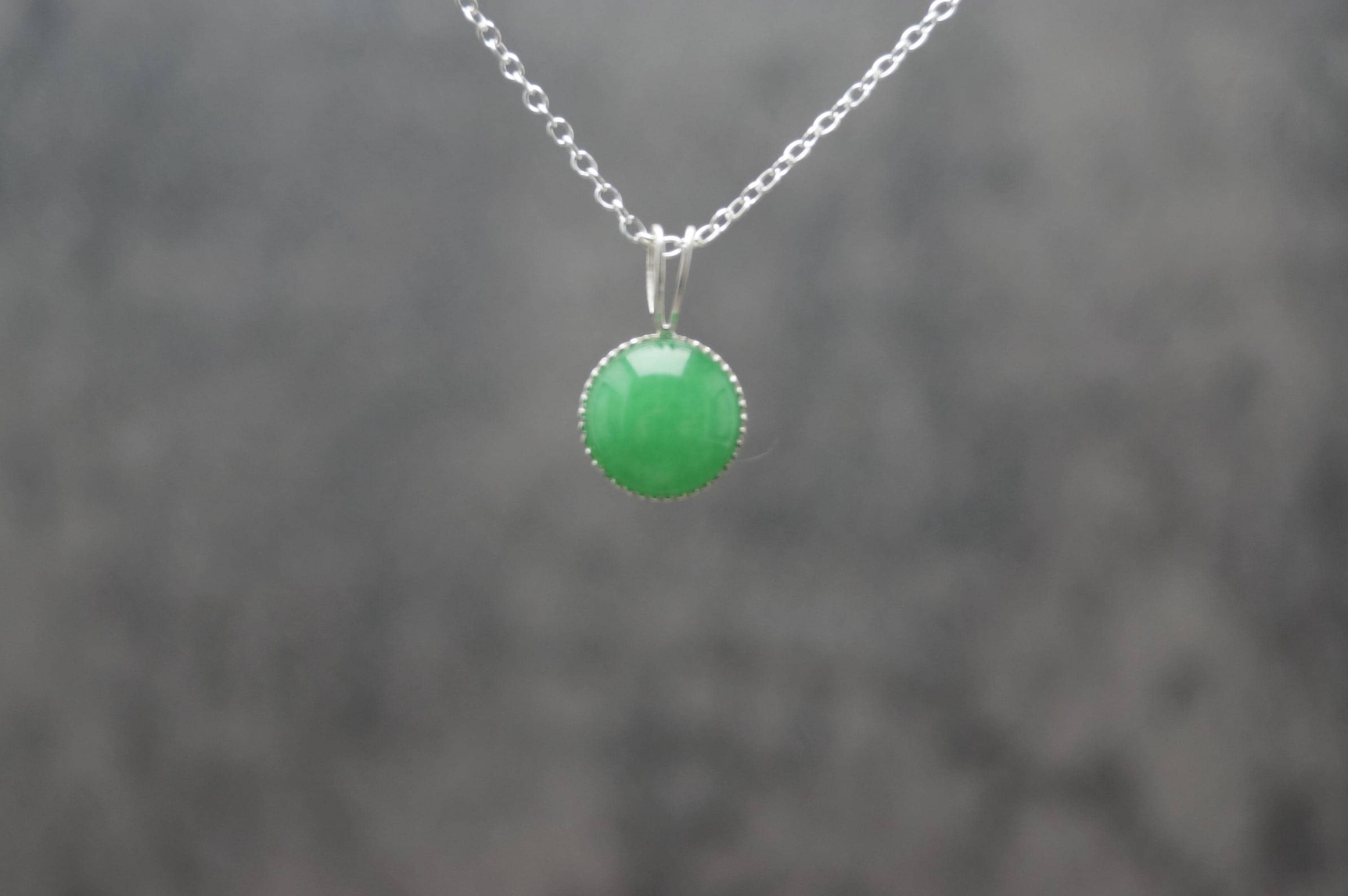 Sterling Silver Jade Round Cabochon Pendant & Hallmarked 18" Chain, features a natural green Jade gemstone.