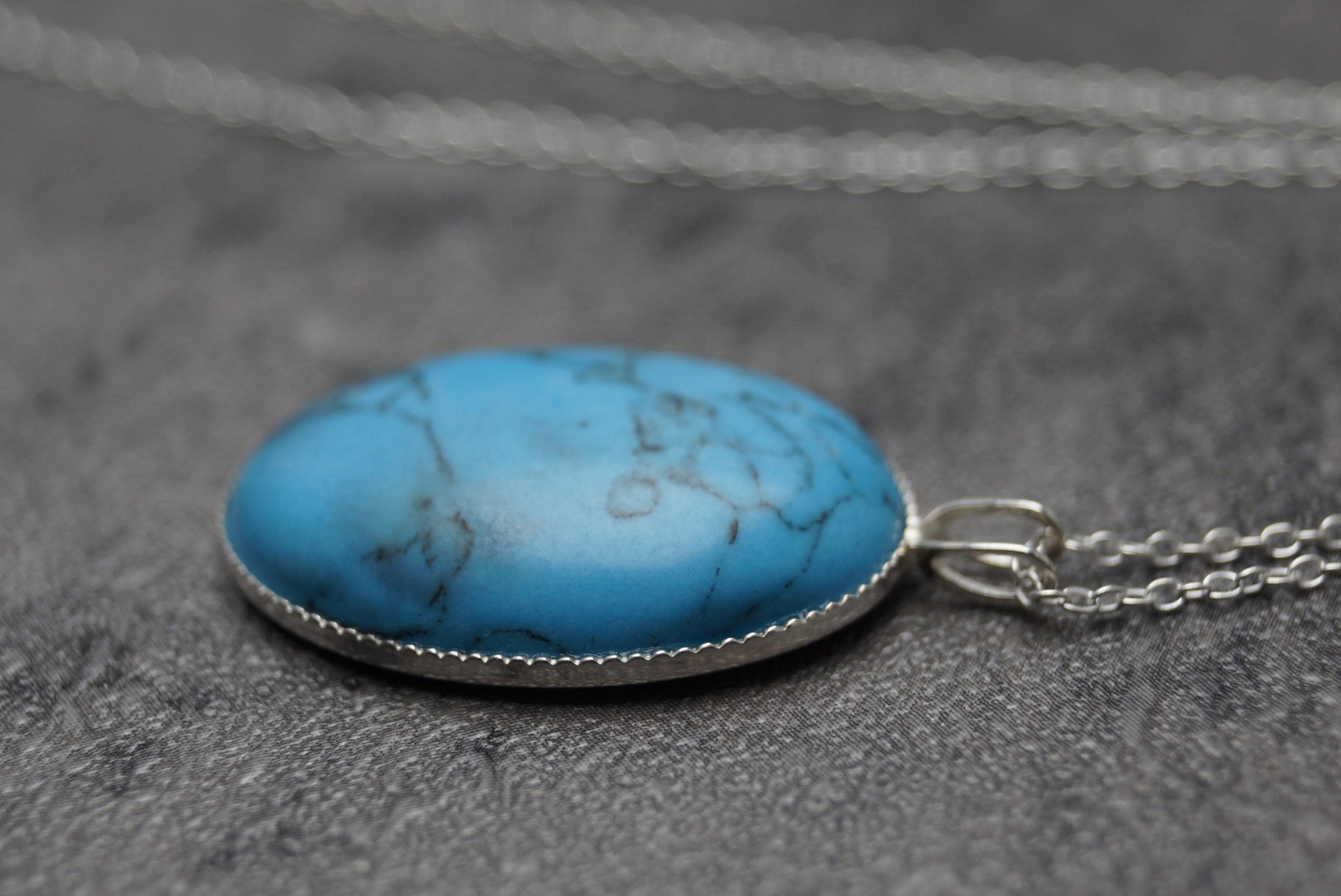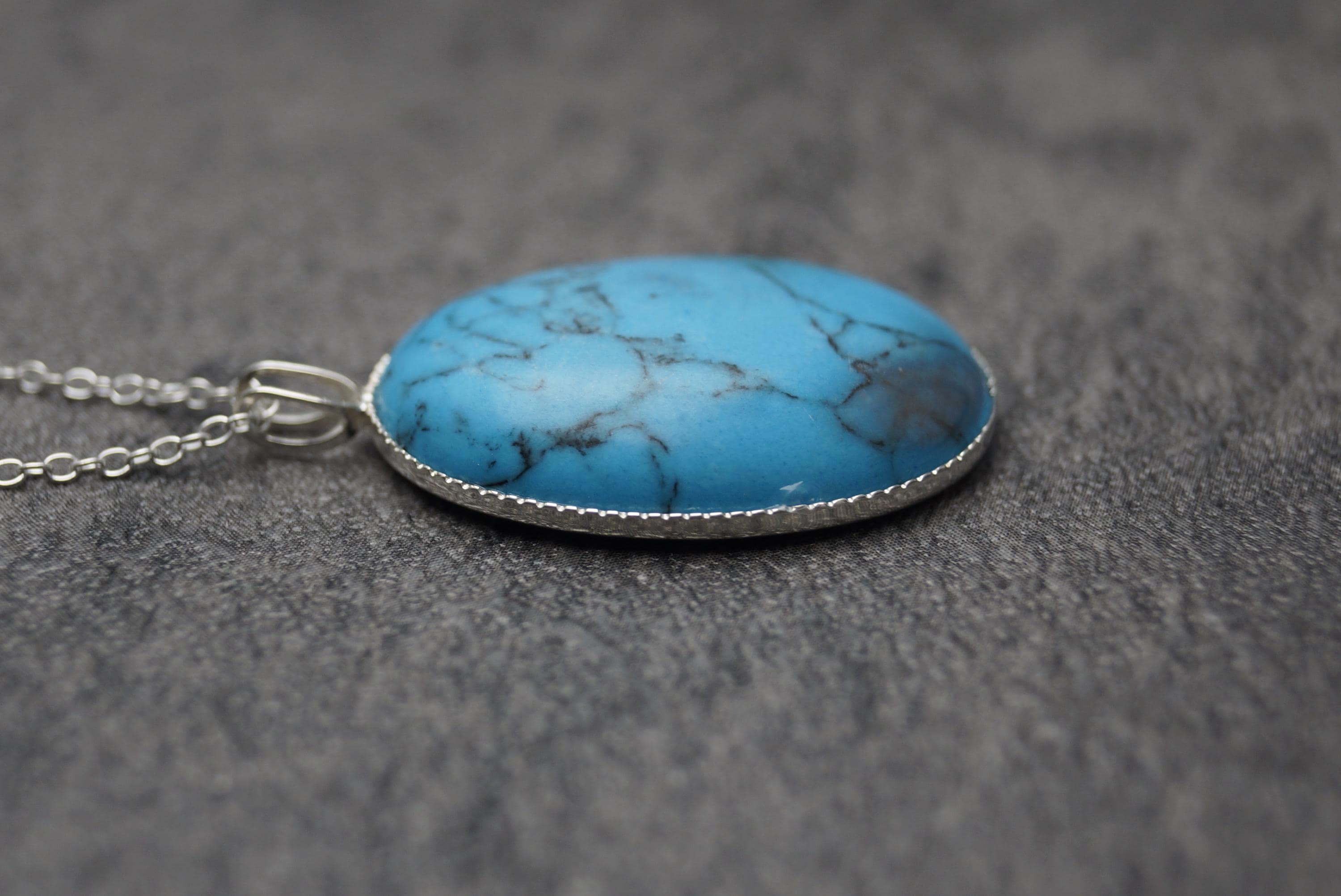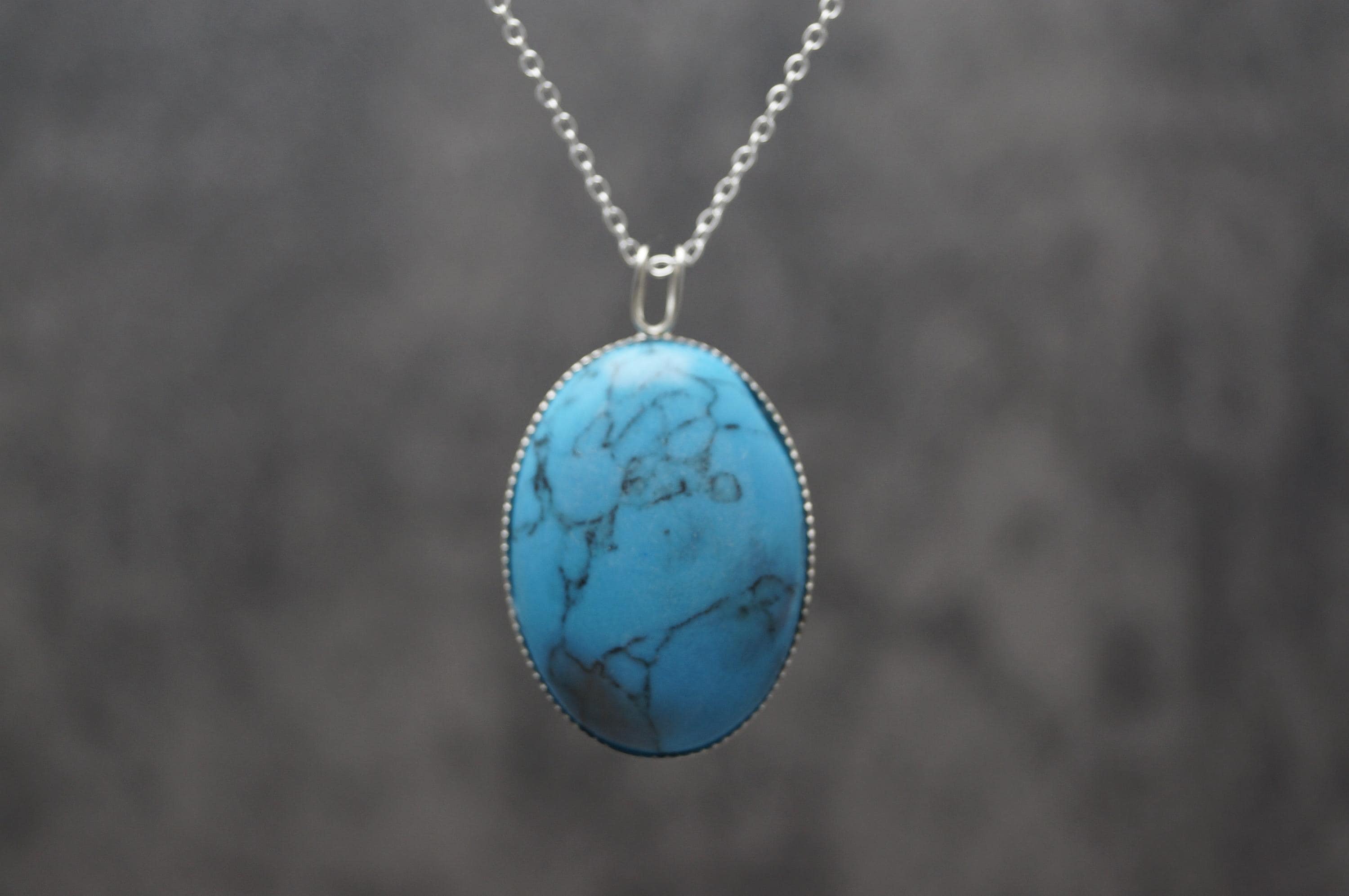 Highly polished Turquoise gemstone pendant is a great example of this popular stone, perfect for those looking for a sterling silver Turquoise pendant.